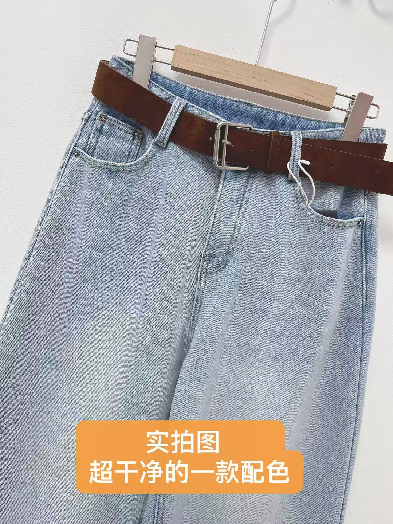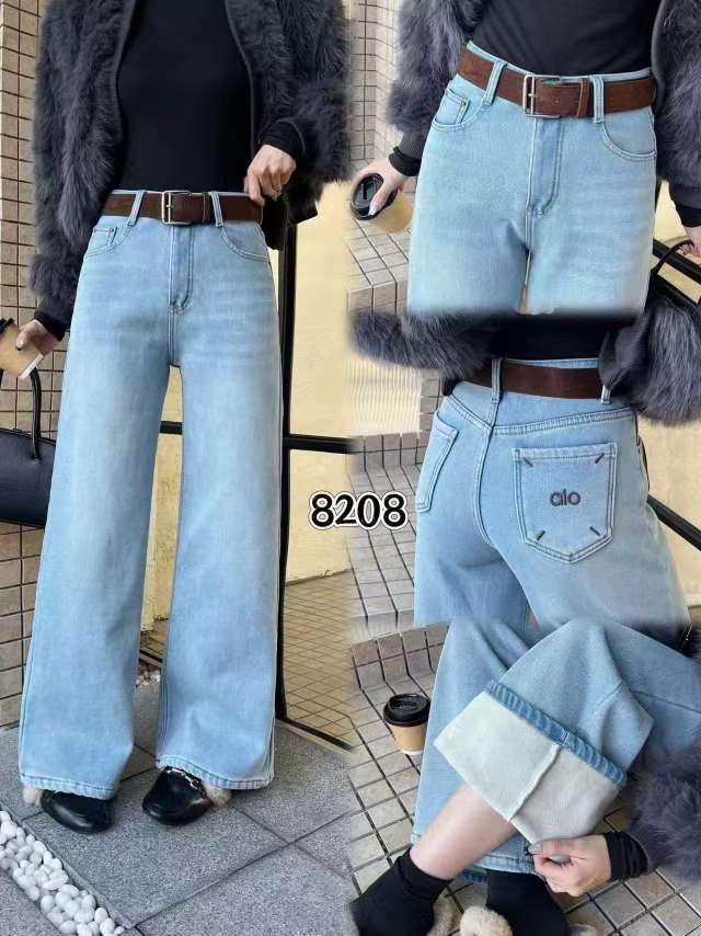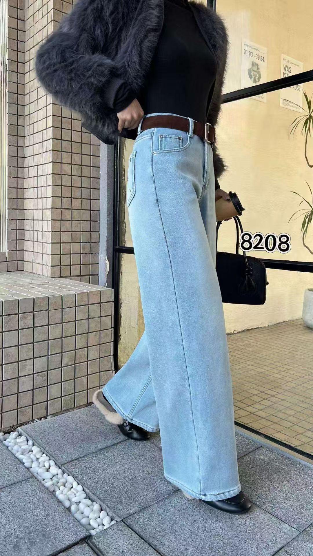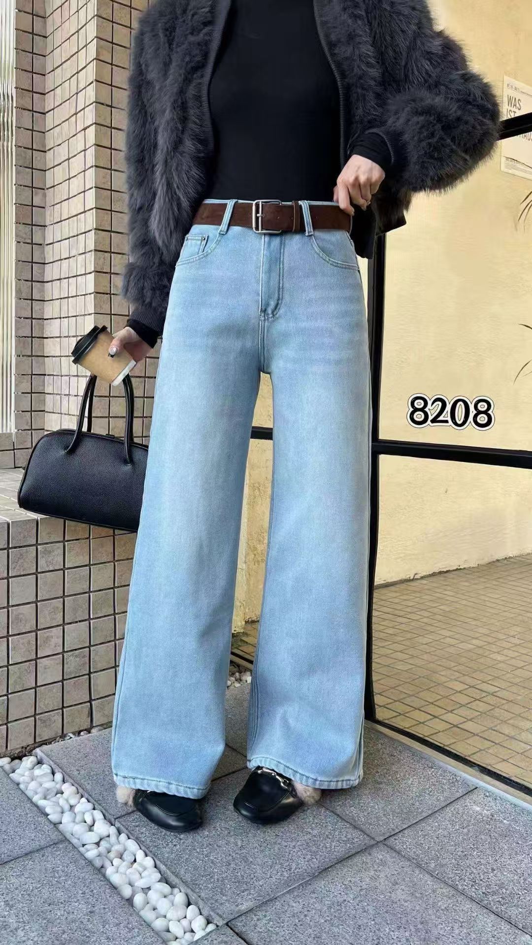🔥🔥🔥【爆款牛仔】加厚密密绒~超干净的配色!8208 口袋刺绣字母直筒牛仔裤-喜出