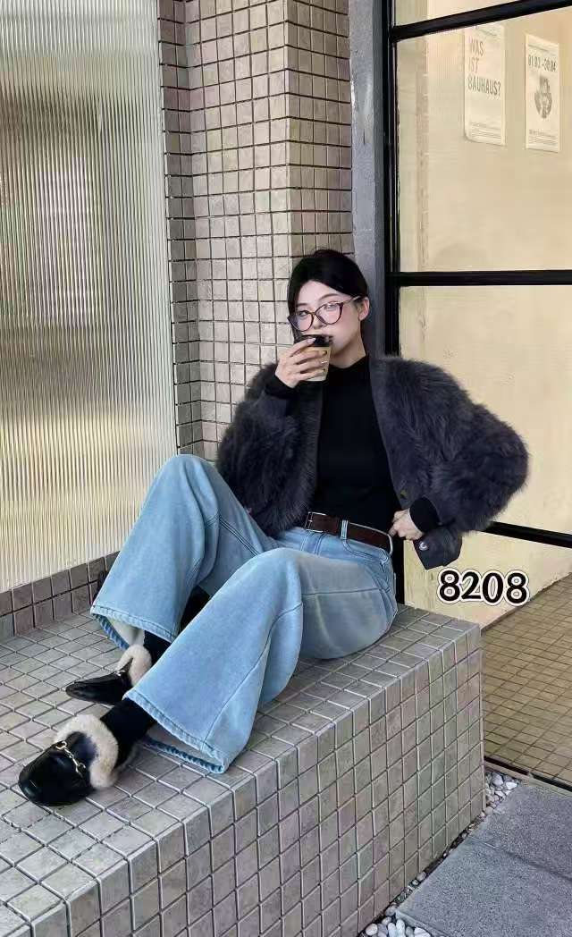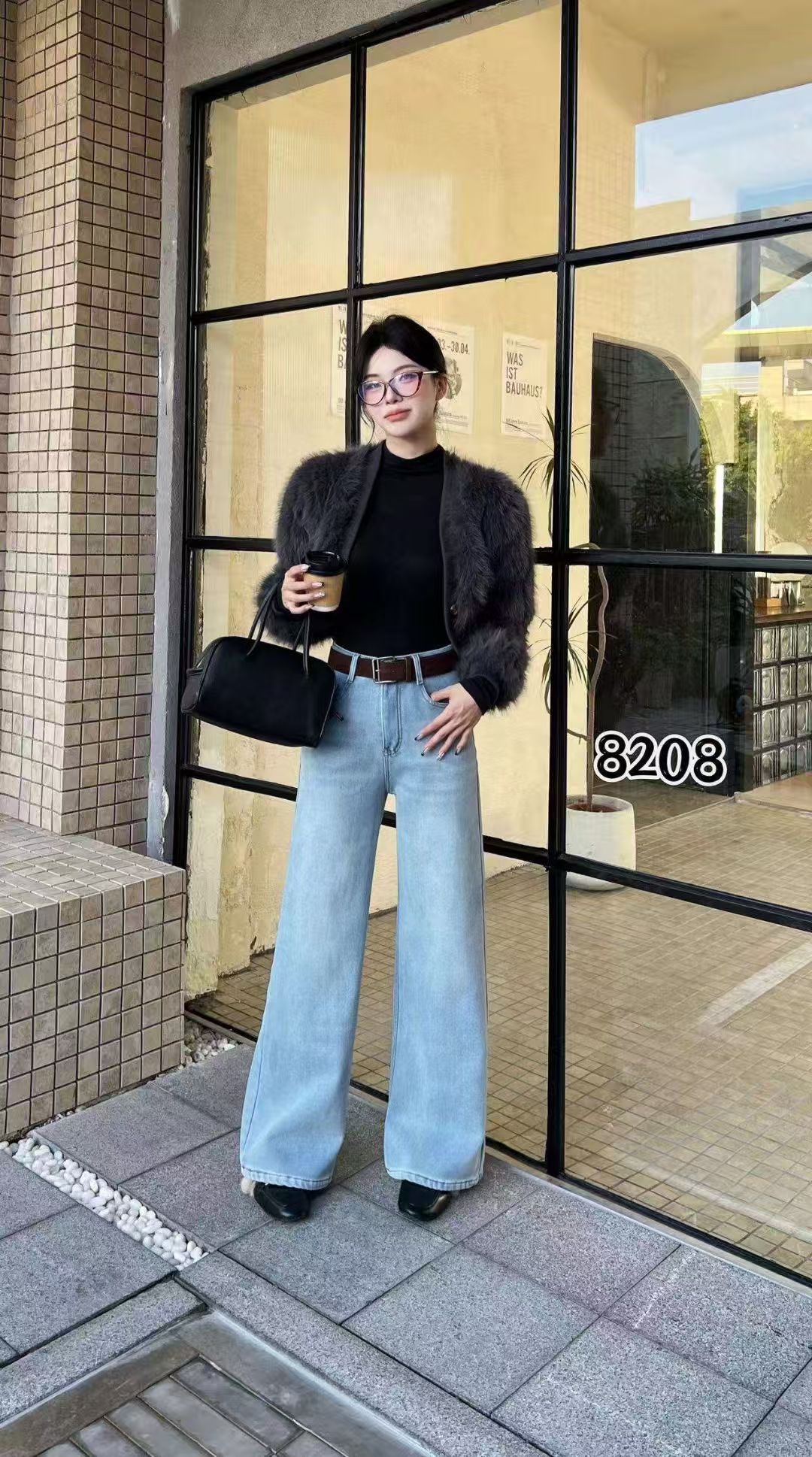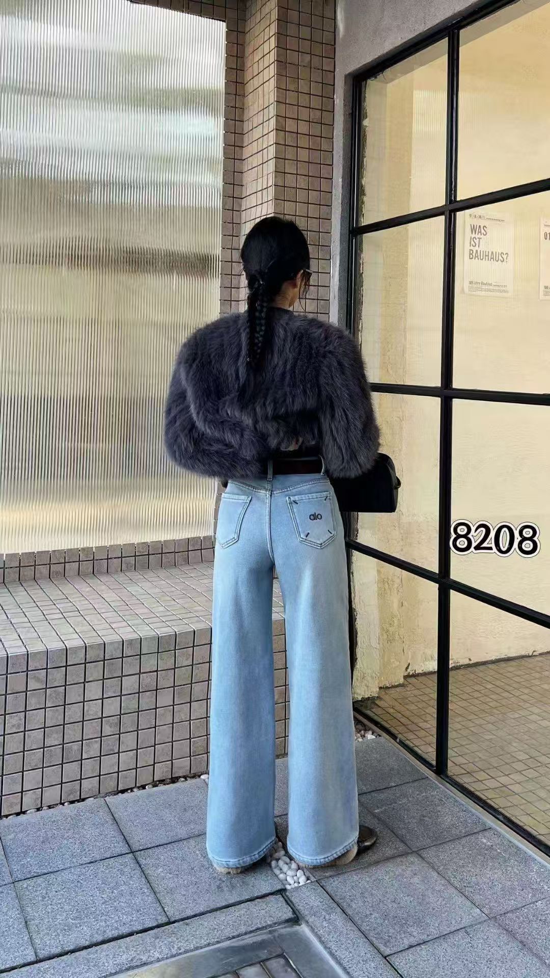 🔥🔥🔥【爆款牛仔】加厚密密绒~超干净的配色!8208 口袋刺绣字母直筒牛仔裤-喜出