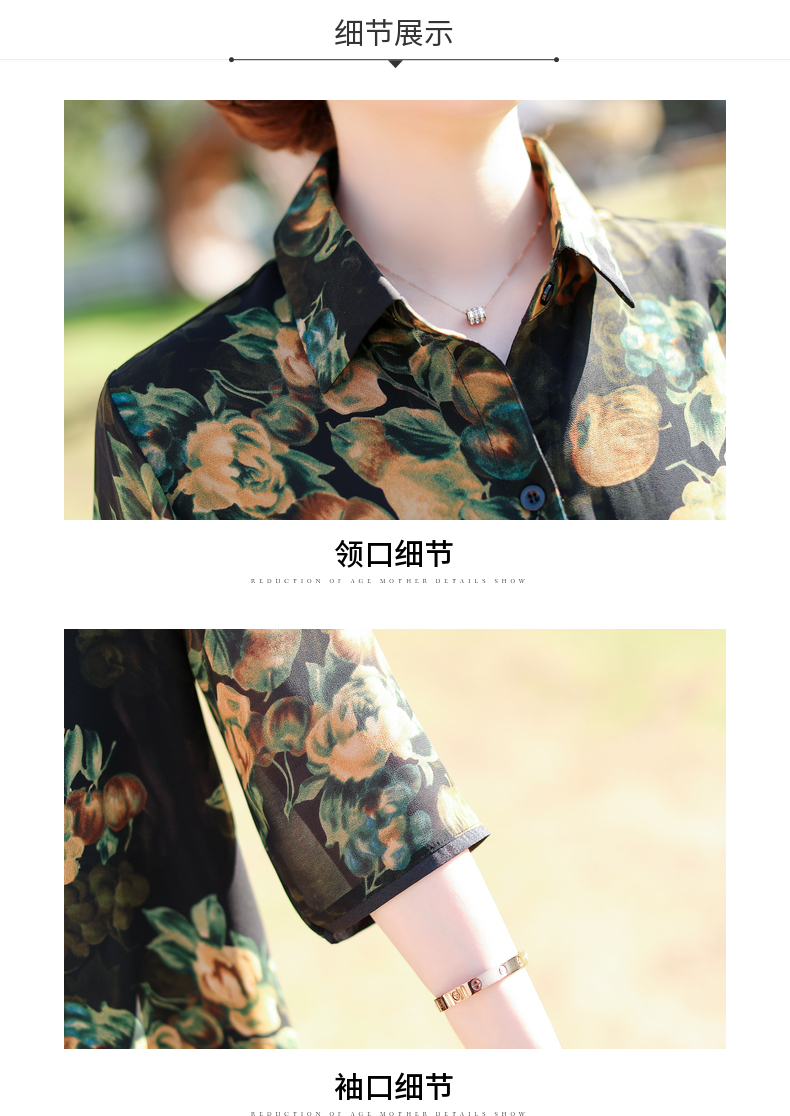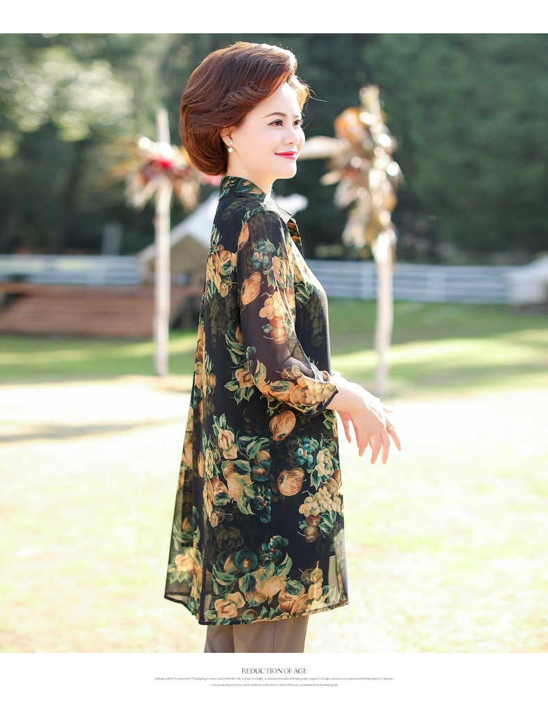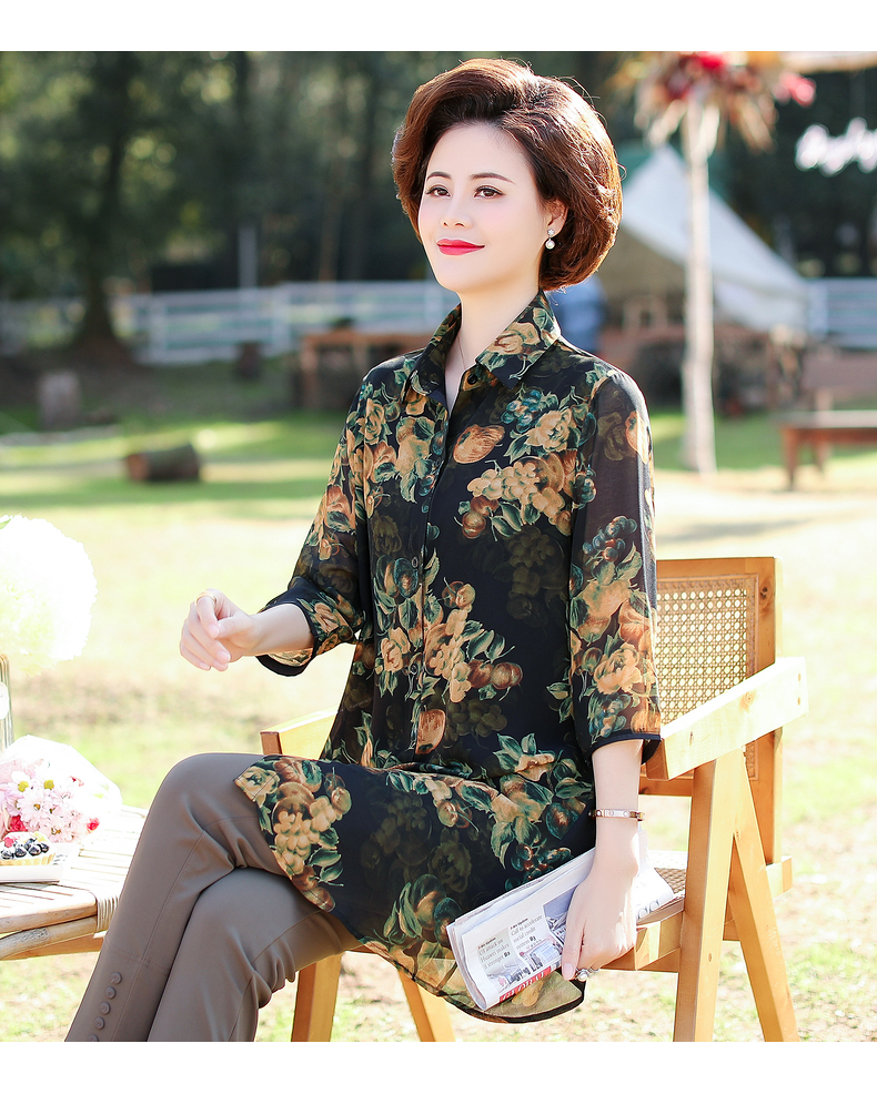 W-38517妈妈春装中长款洋气中老年雪纺衬衫