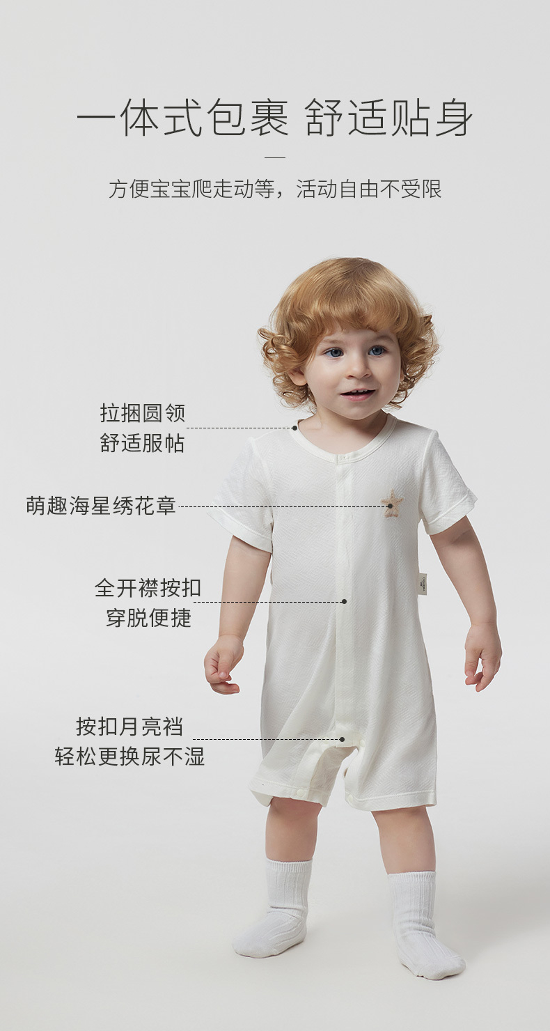 【商场同款】英氏新生儿连体衣夏季薄款透气男女宝宝哈衣爬服