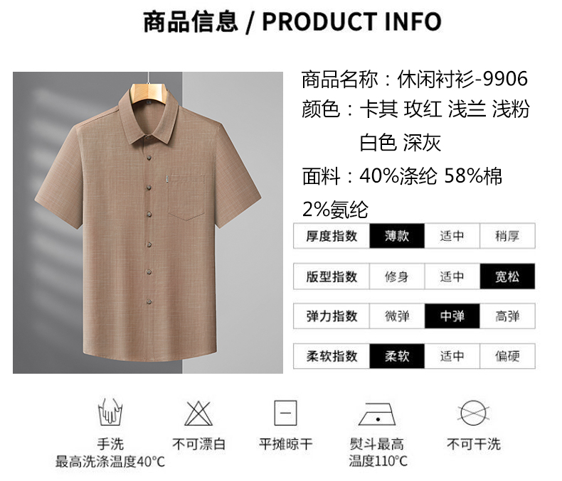 【DB】大依优型大码夏装多色短袖衬衫新款宽松免烫透气大码透气上衣半袖男士衬衣 商品图9