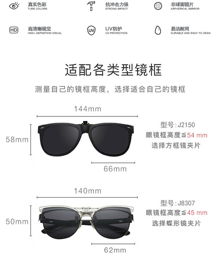 【夹片J2150/J8307/8347】姿森ZERSER超轻夹片墨镜 男太阳镜偏光眼镜防蓝光开车