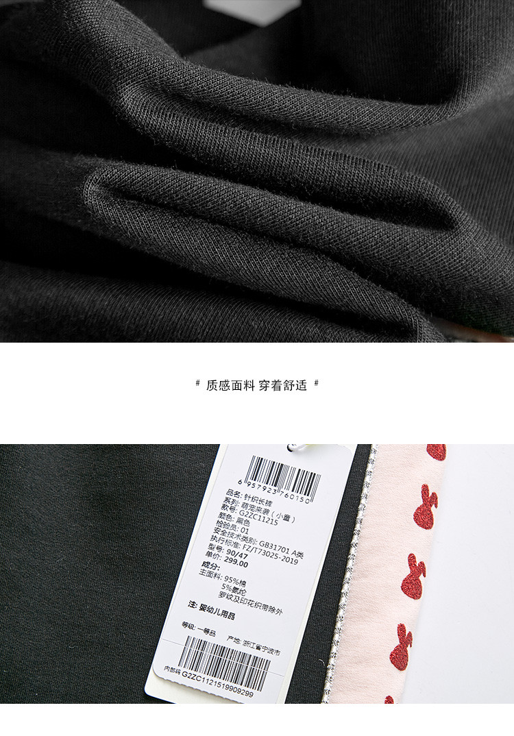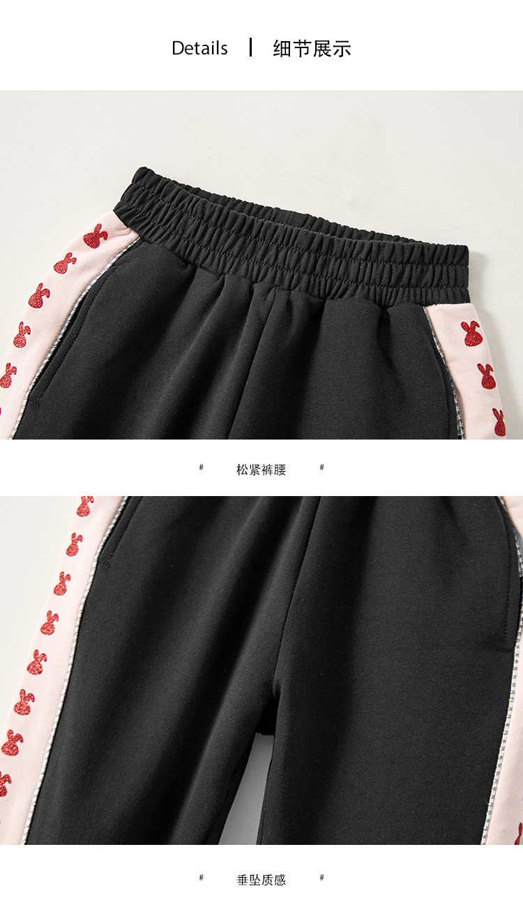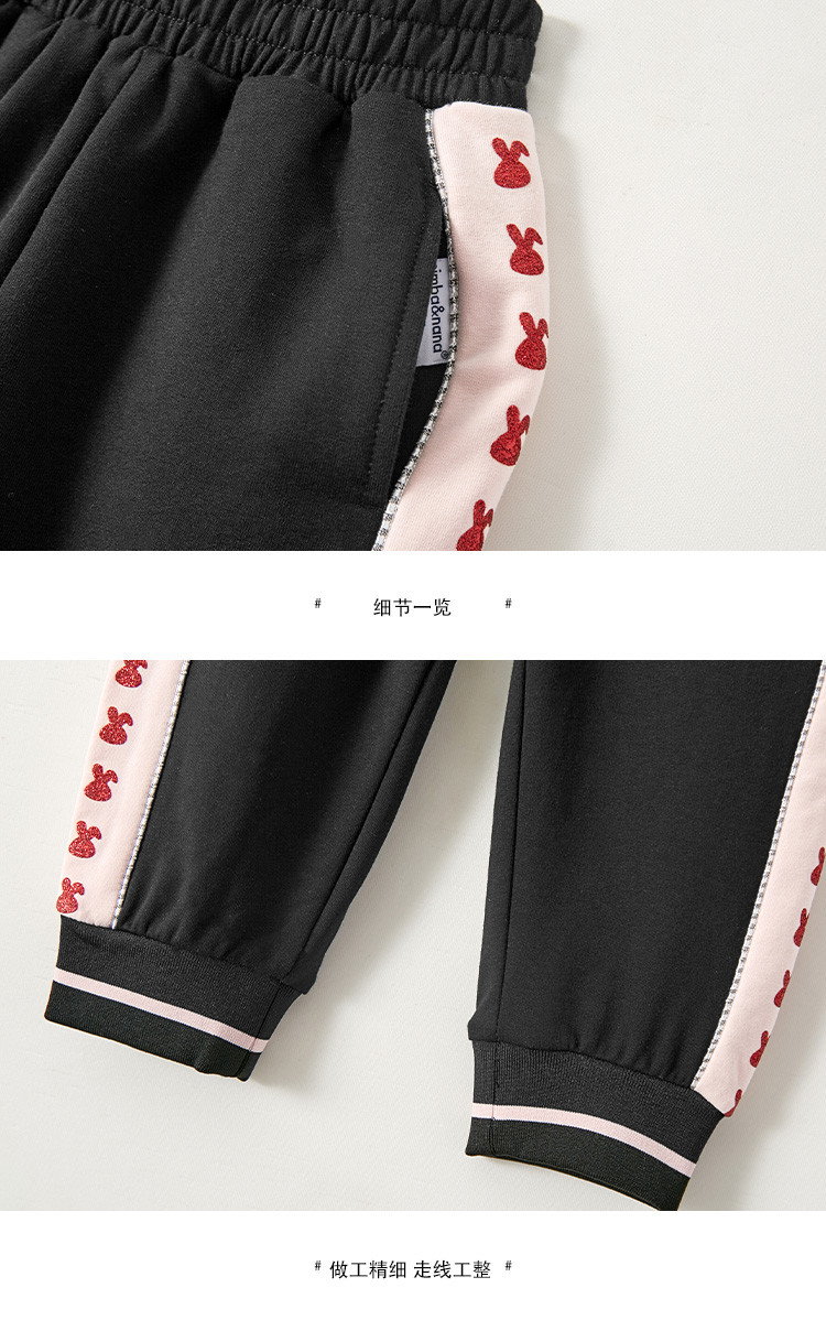 【辛巴娜娜】simbananasimbanan春秋款女童儿童下装长裤黑色拼接运动休闲裤子