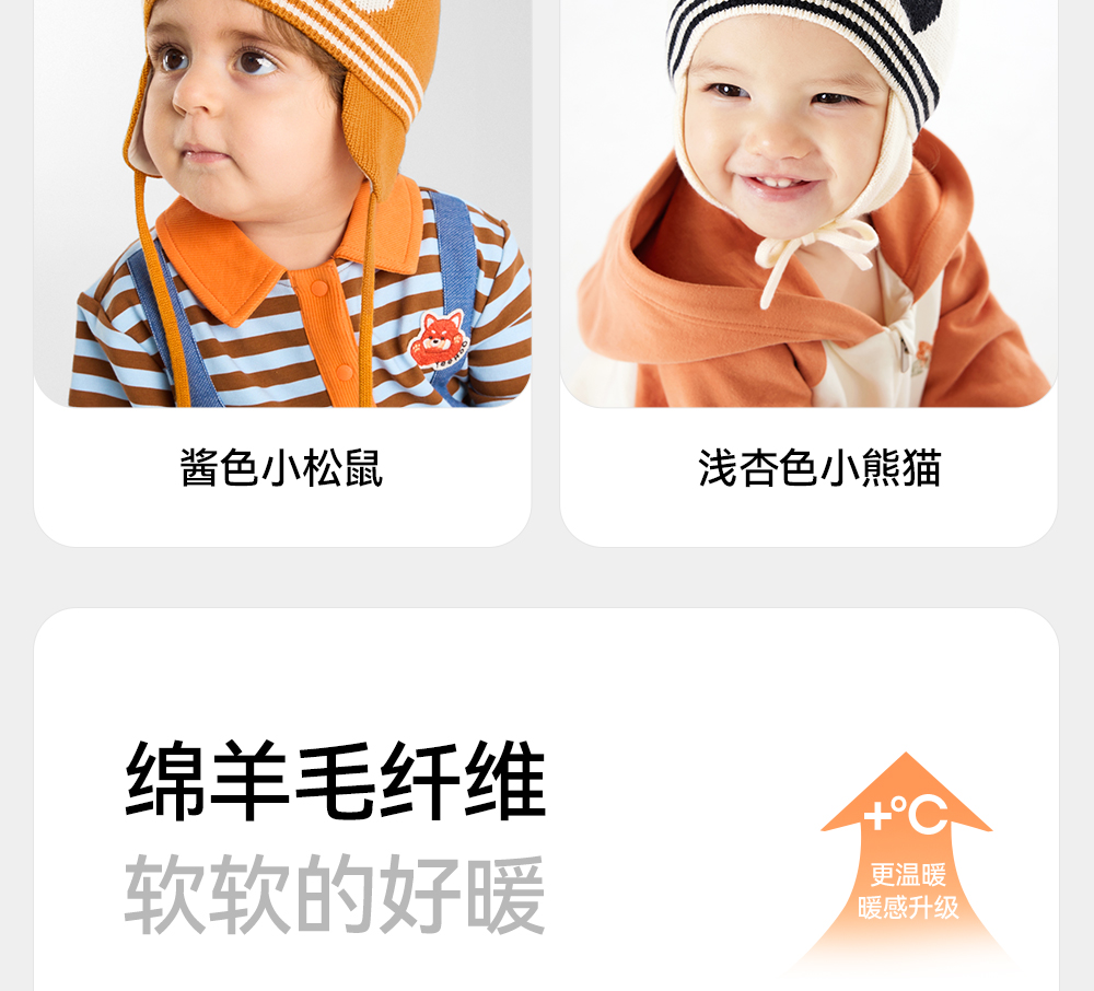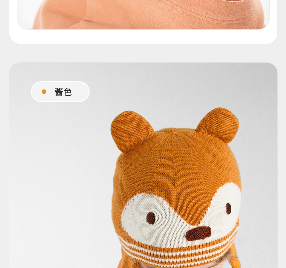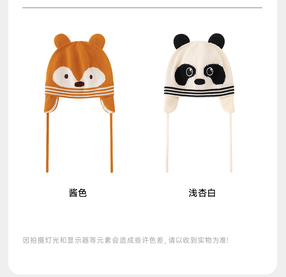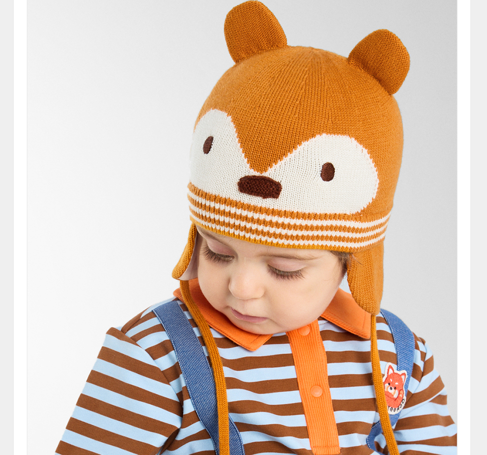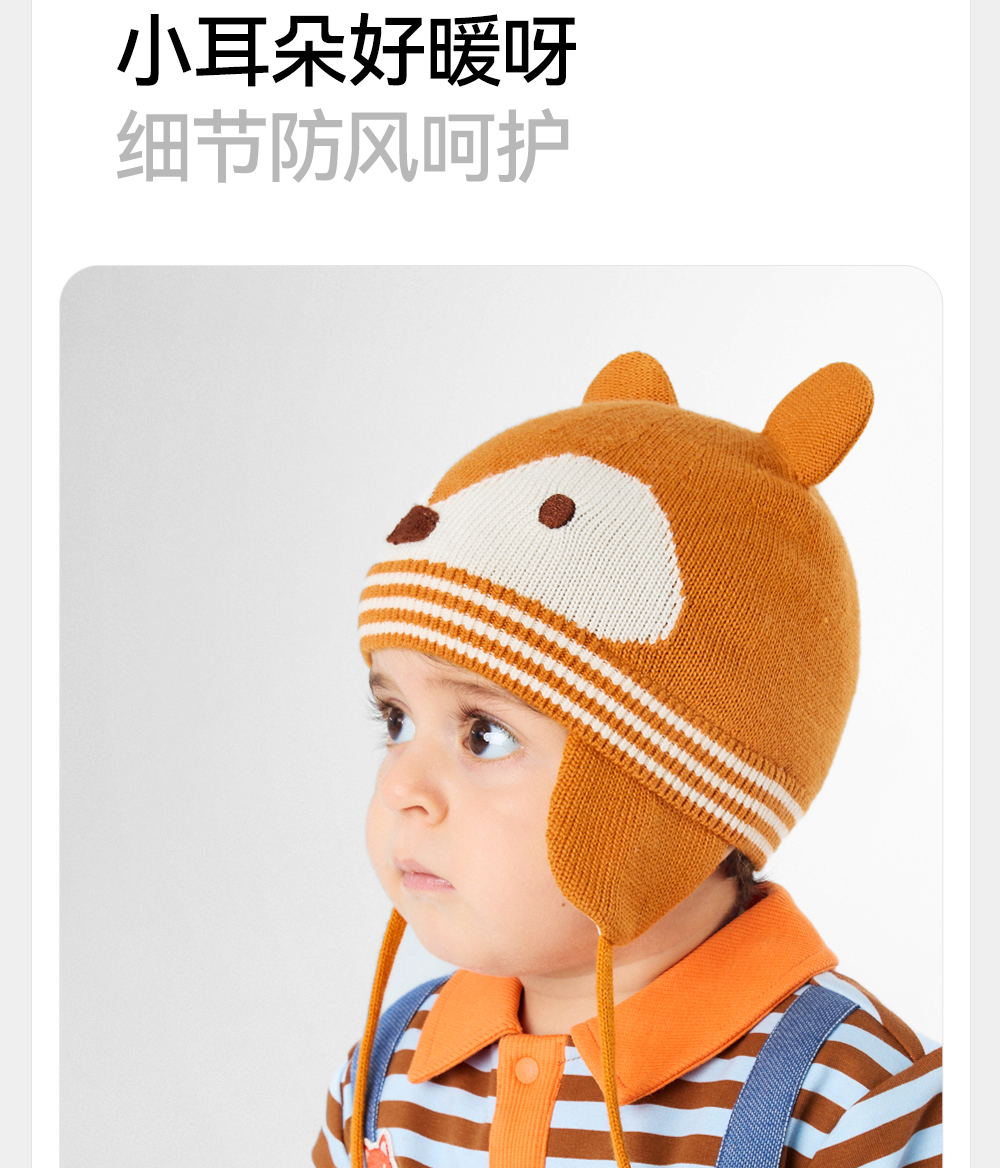 英氏【松鼠护耳帽】儿童帽子毛线护耳帽宝宝可爱针织帽保暖帽