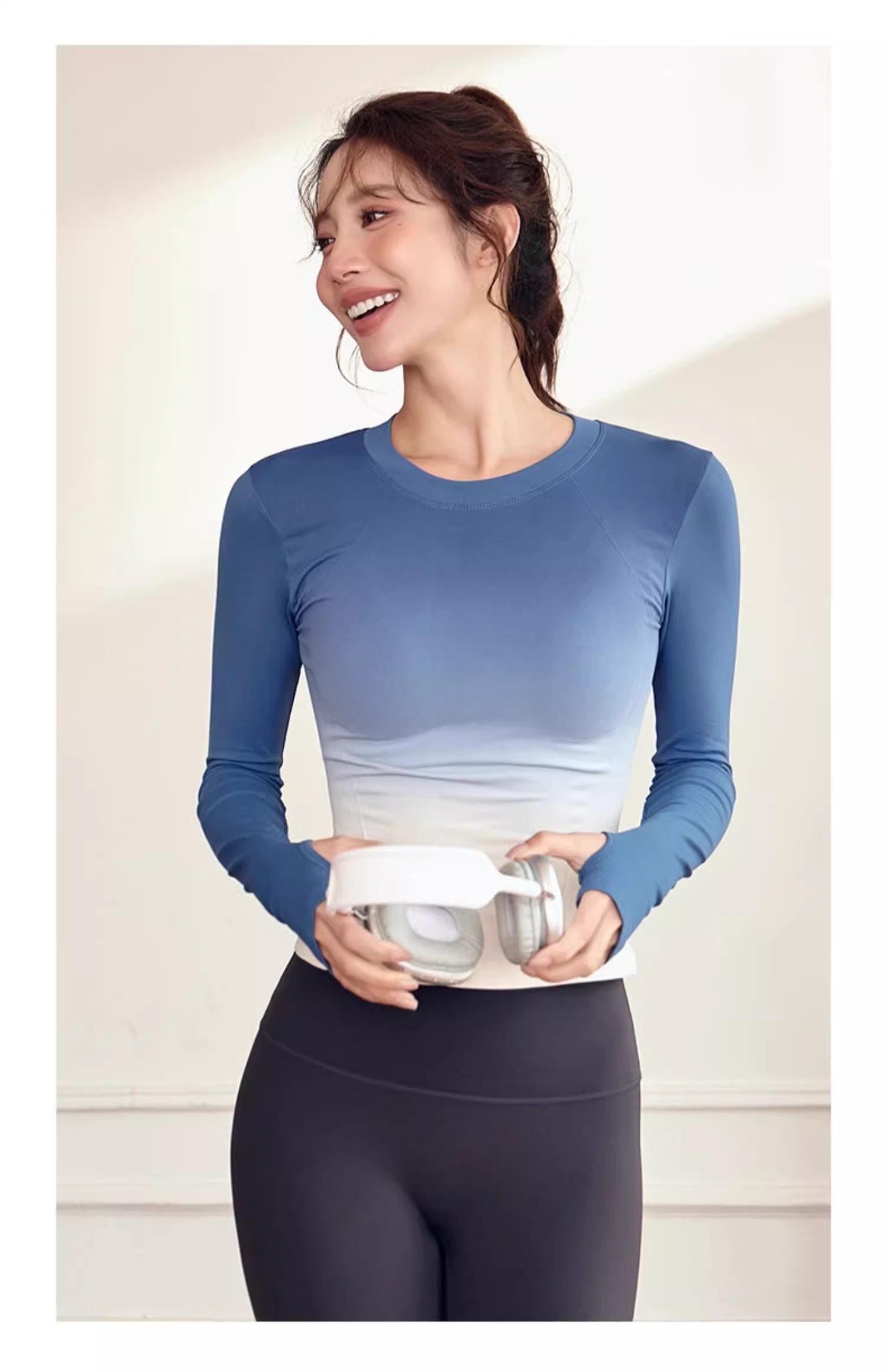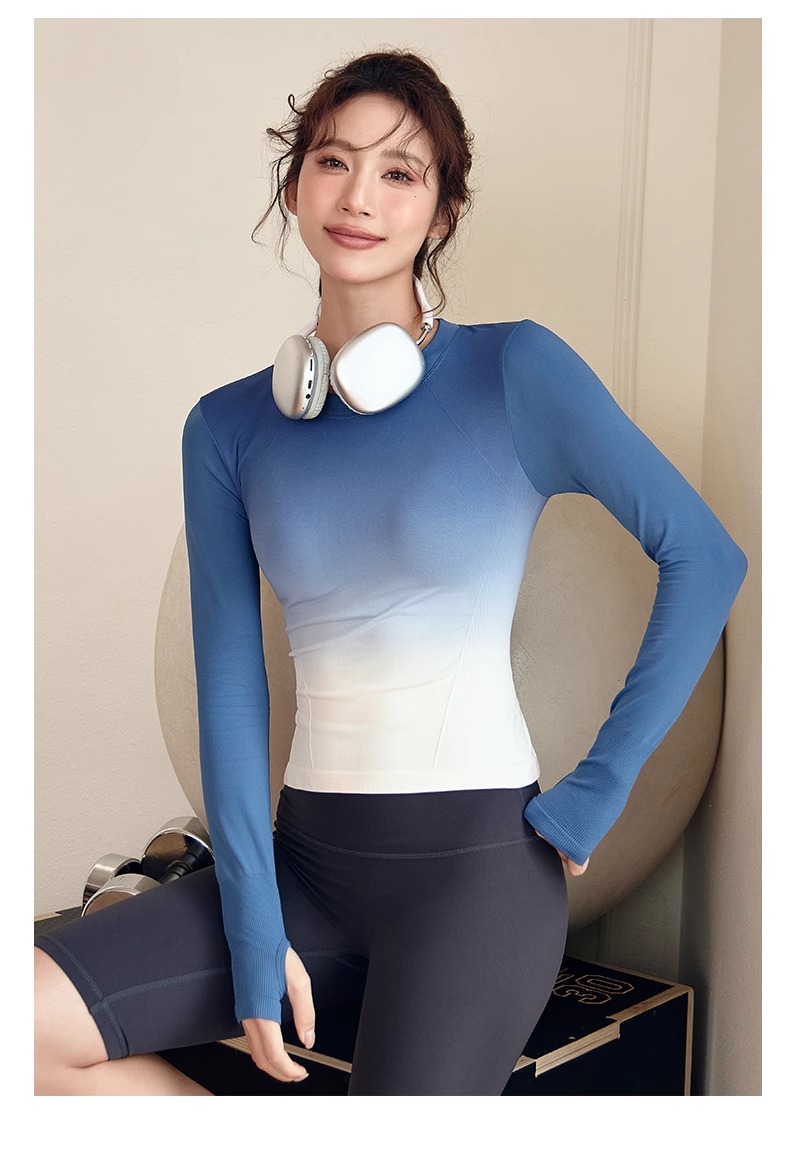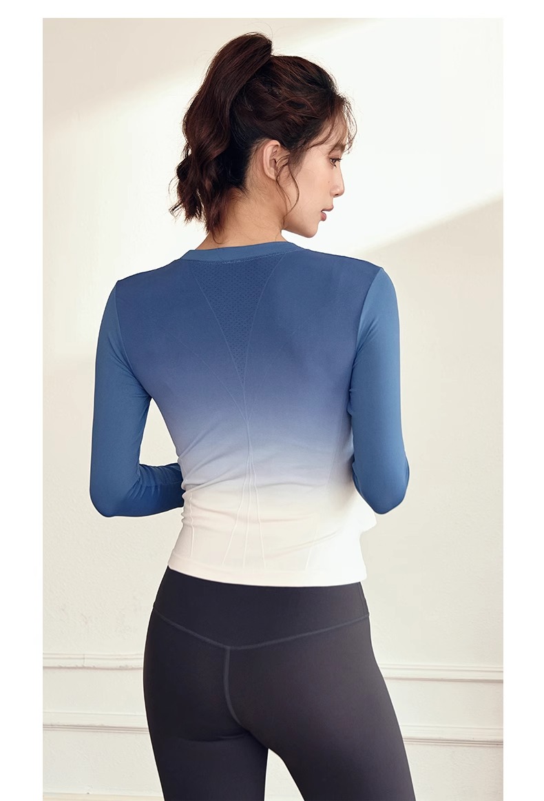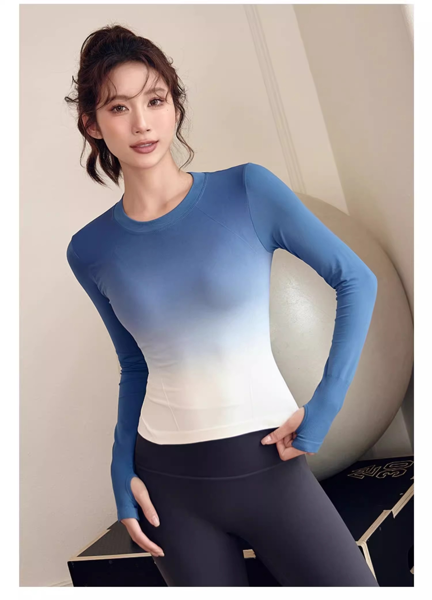 跃牌【美西西系列】高颜值瑜伽服T恤女渐变色紧身显瘦运动上衣专业跑步训练健身长袖CX-6207