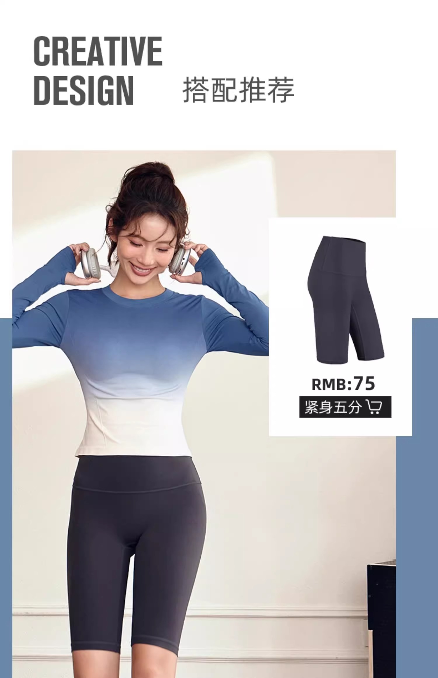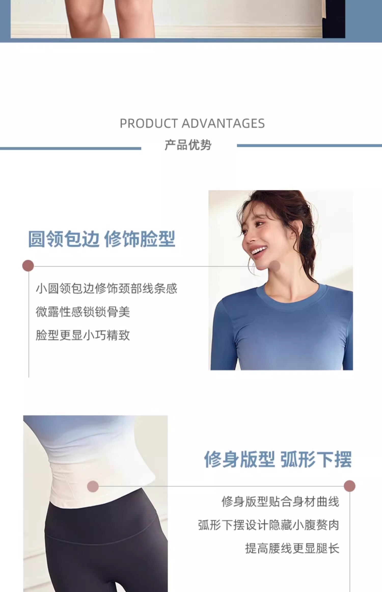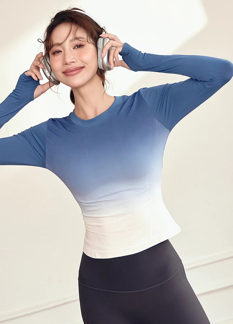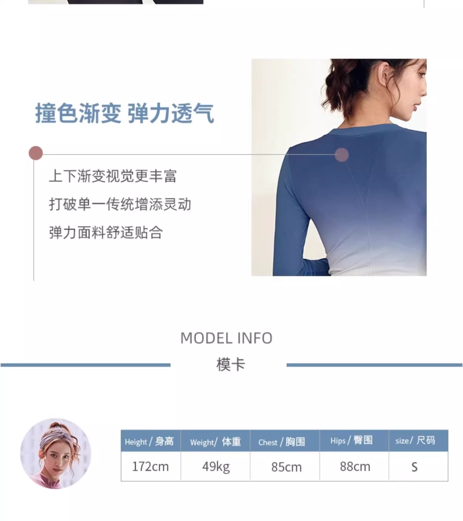 跃牌【美西西系列】高颜值瑜伽服T恤女渐变色紧身显瘦运动上衣专业跑步训练健身长袖CX-6207