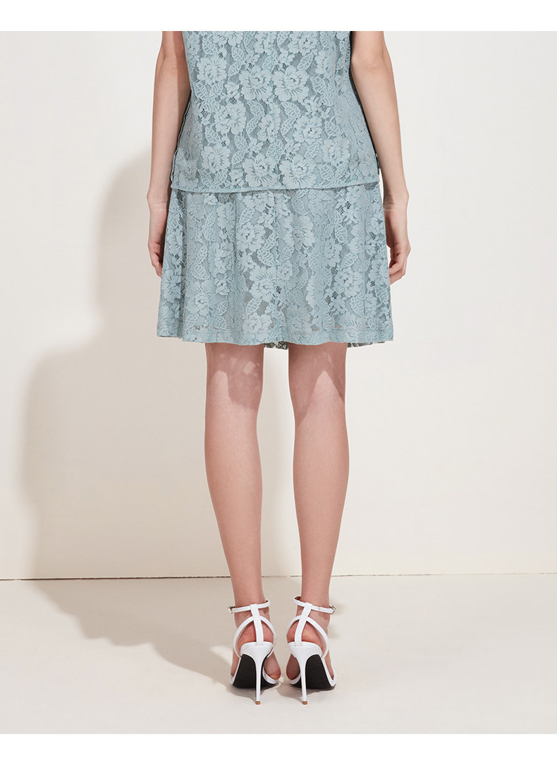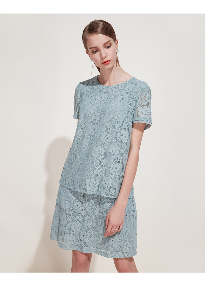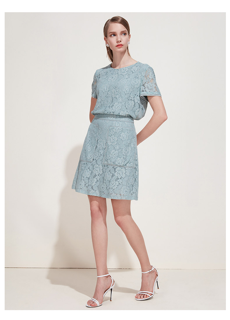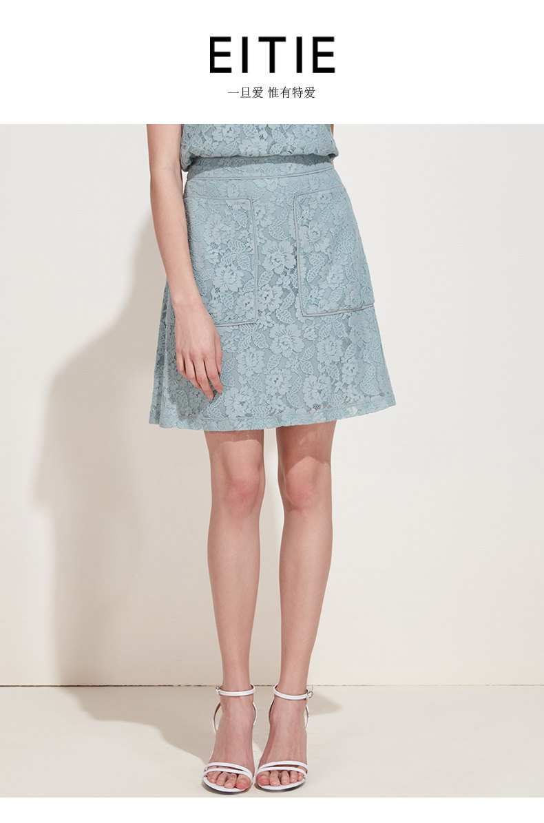 EITIE爱特爱夏季小清新简约百搭荷叶边裙摆蕾丝半身裙短B1906212