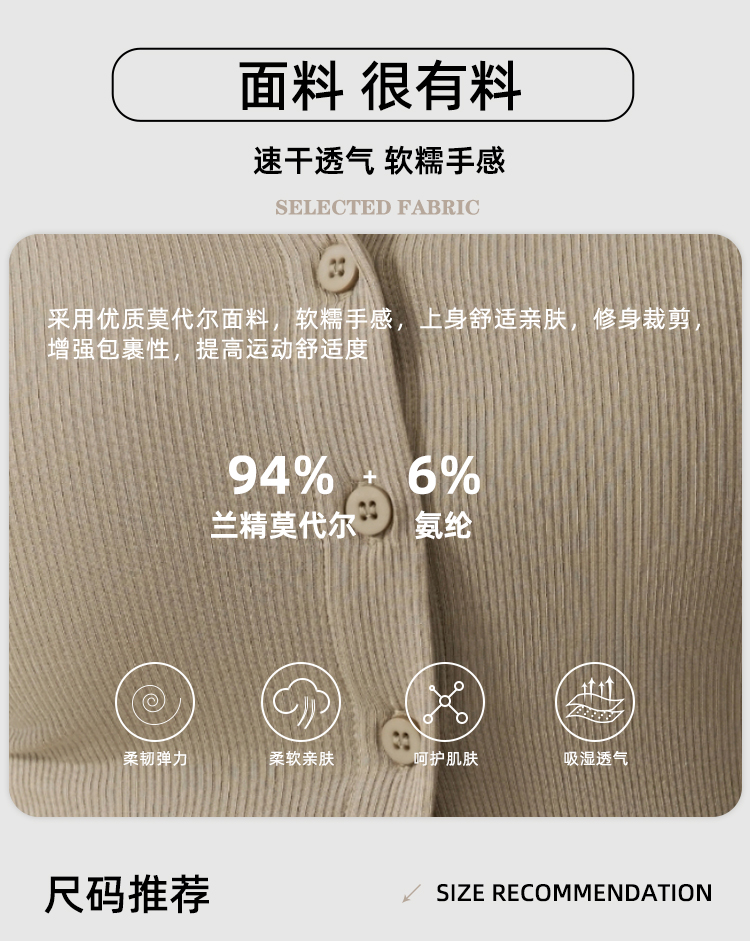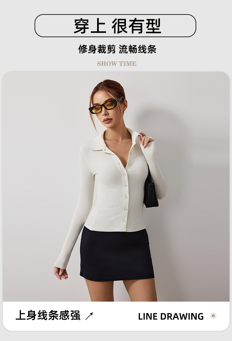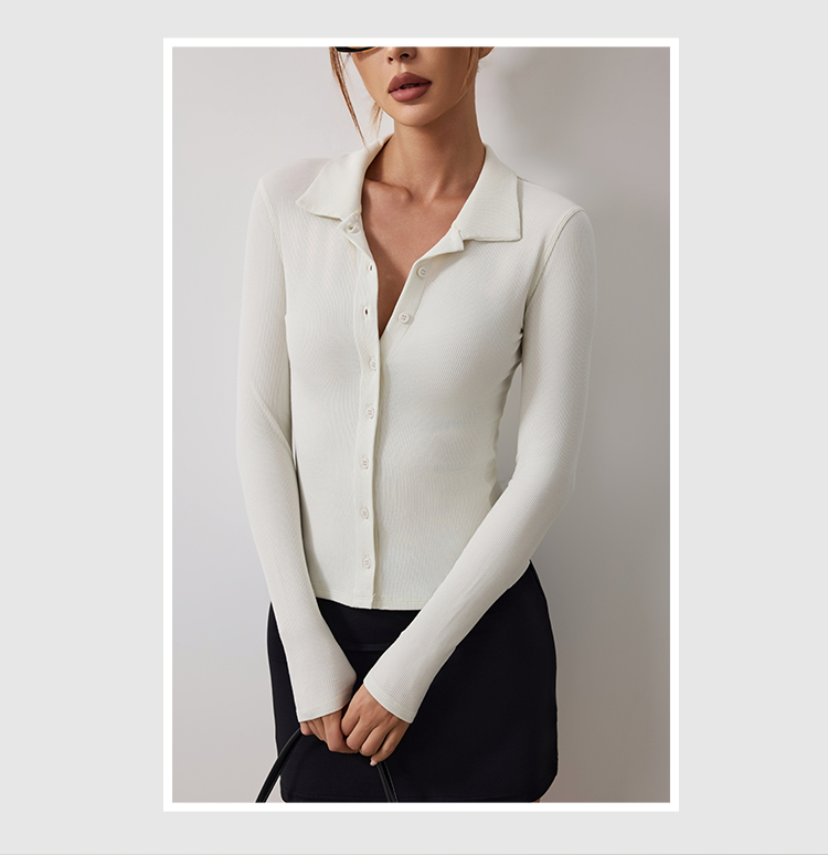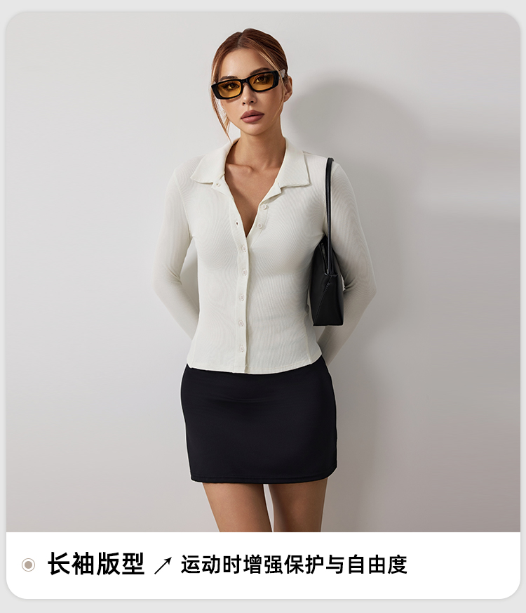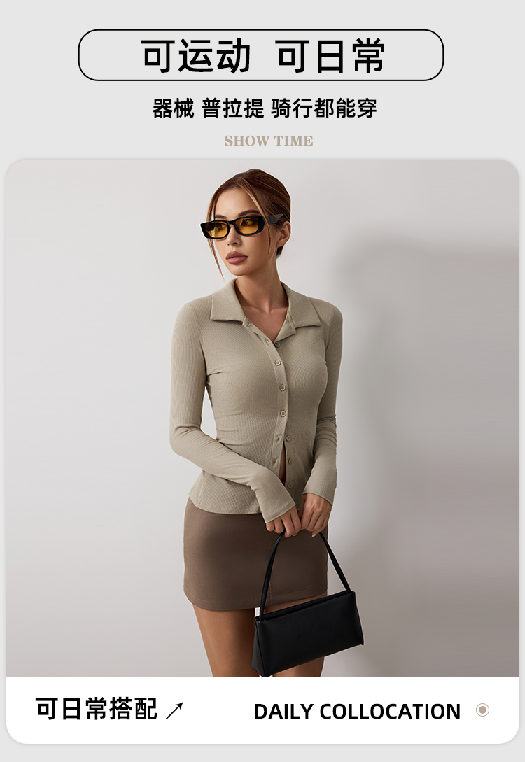 跃牌【倚窗听雨】Athena 翻领亨利衫女兰精莫代尔纽扣修身长袖瑜伽服T恤上衣CX137