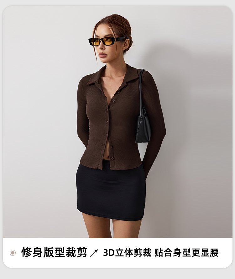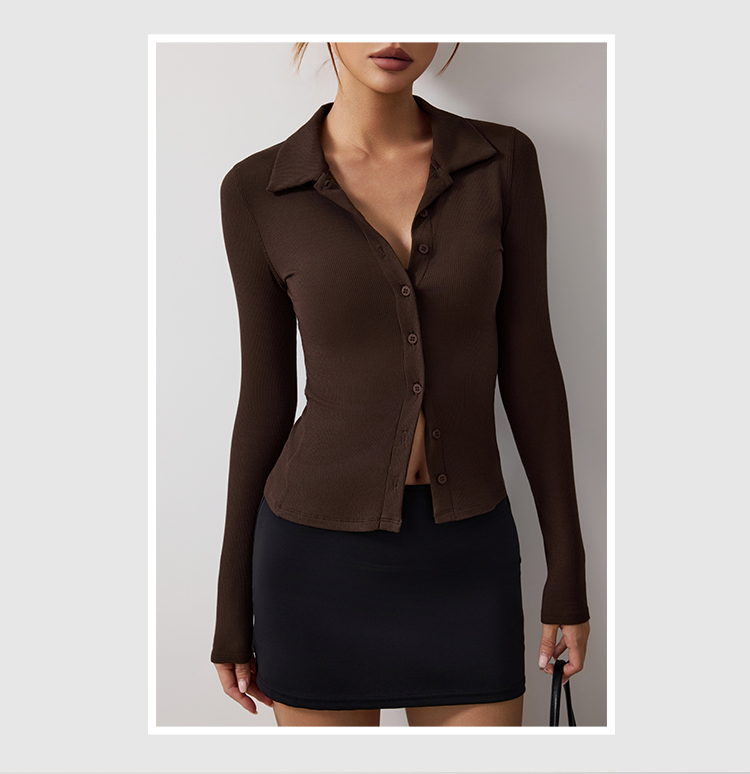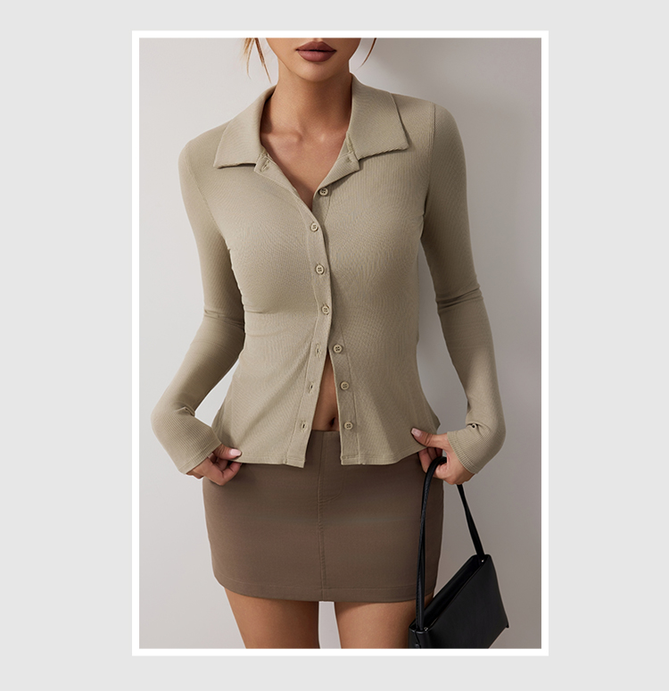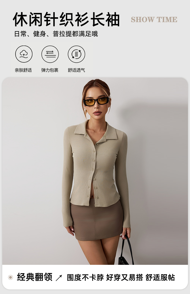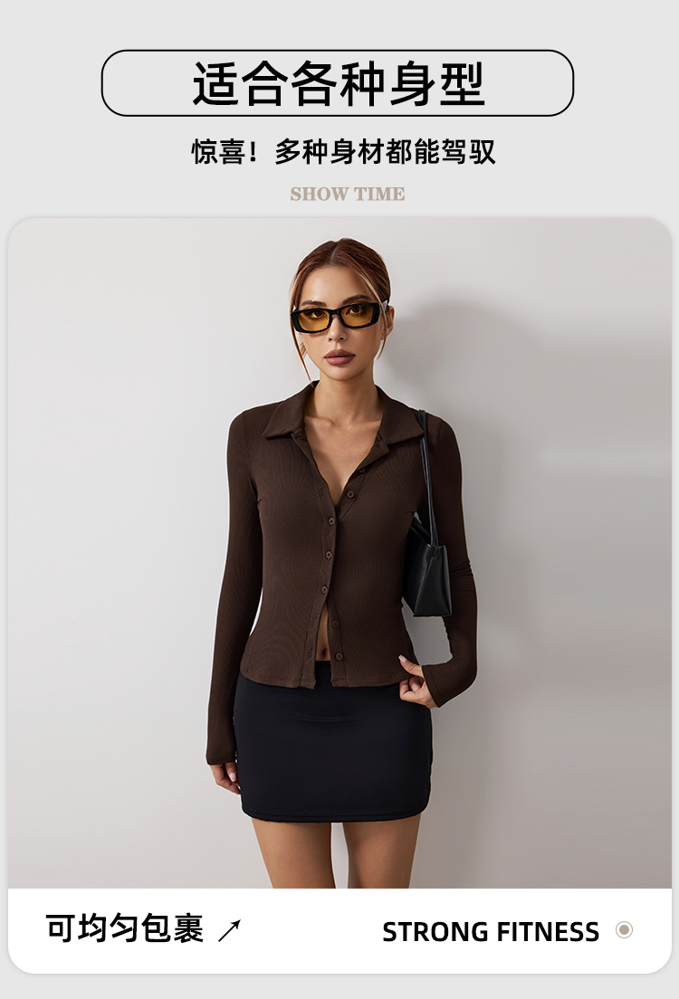 跃牌【倚窗听雨】Athena 翻领亨利衫女兰精莫代尔纽扣修身长袖瑜伽服T恤上衣CX137