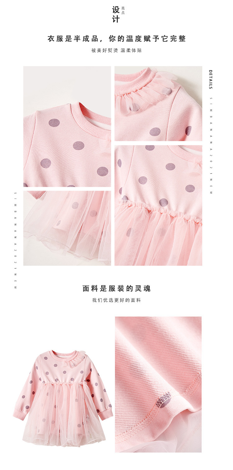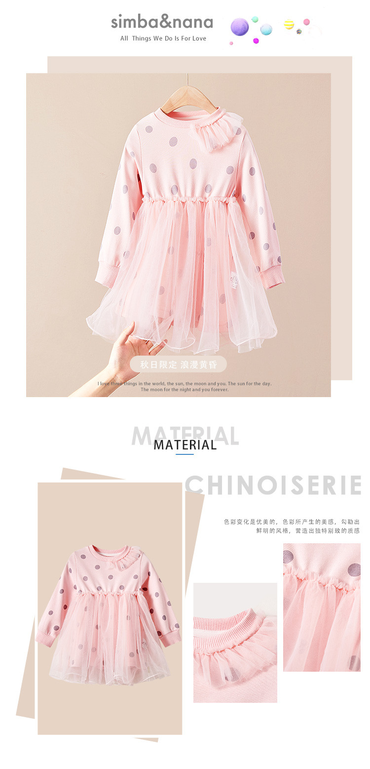 【辛巴娜娜】simbanana女童连衣裙新款儿童洋气公主裙子宝宝长袖波点网纱蓬蓬裙