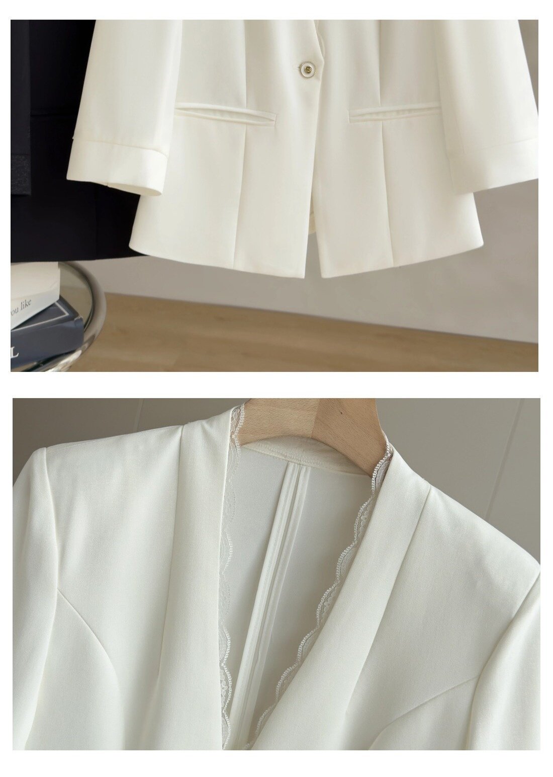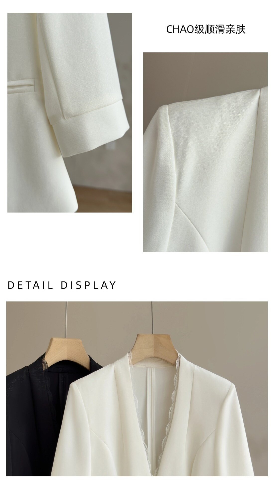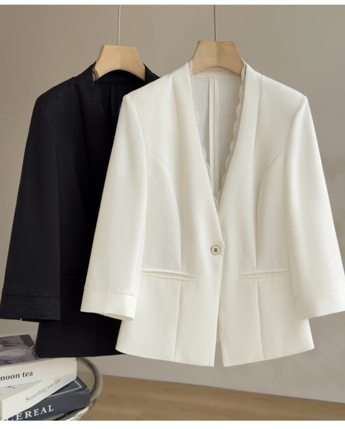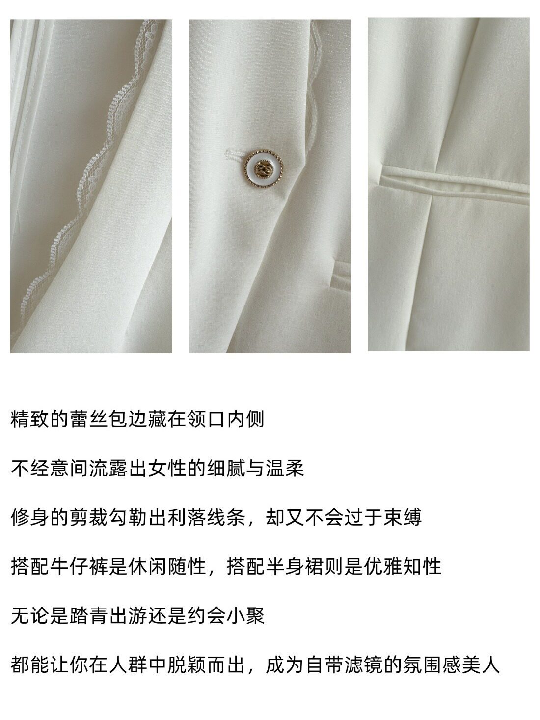 「自」全新升级【铂金会员468/天猫629/差价161】(14217)洛诗琳气质蕾丝花边V领西装2026年春季高级感七分袖外套女