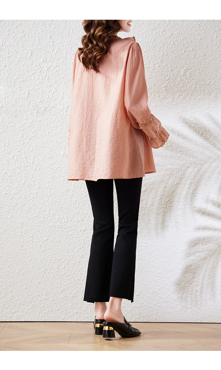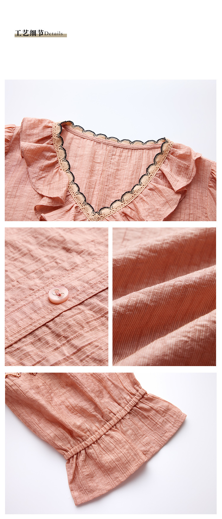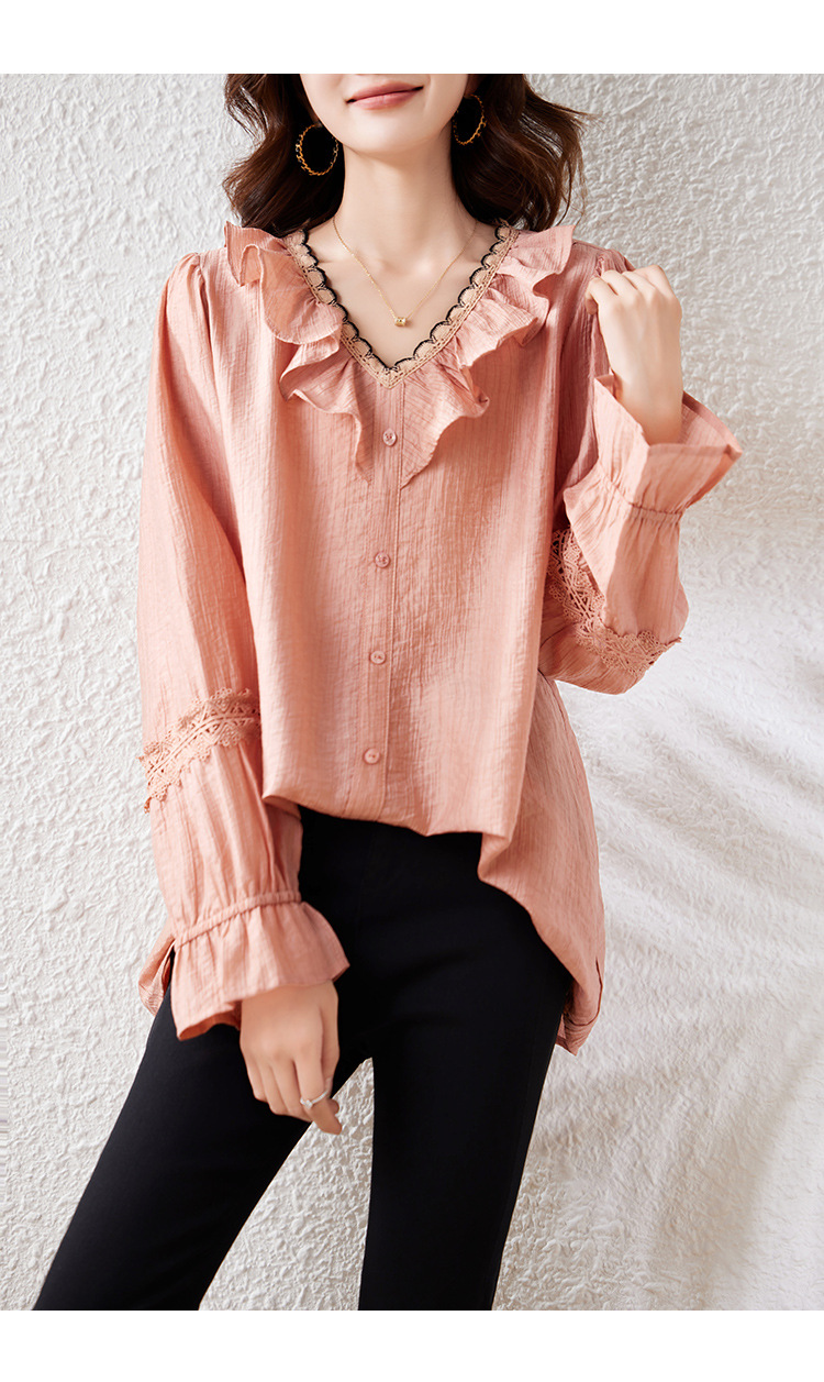 设计感小众V领荷叶边喇叭袖衬衫文艺休闲遮肉显瘦气质大码上衣女