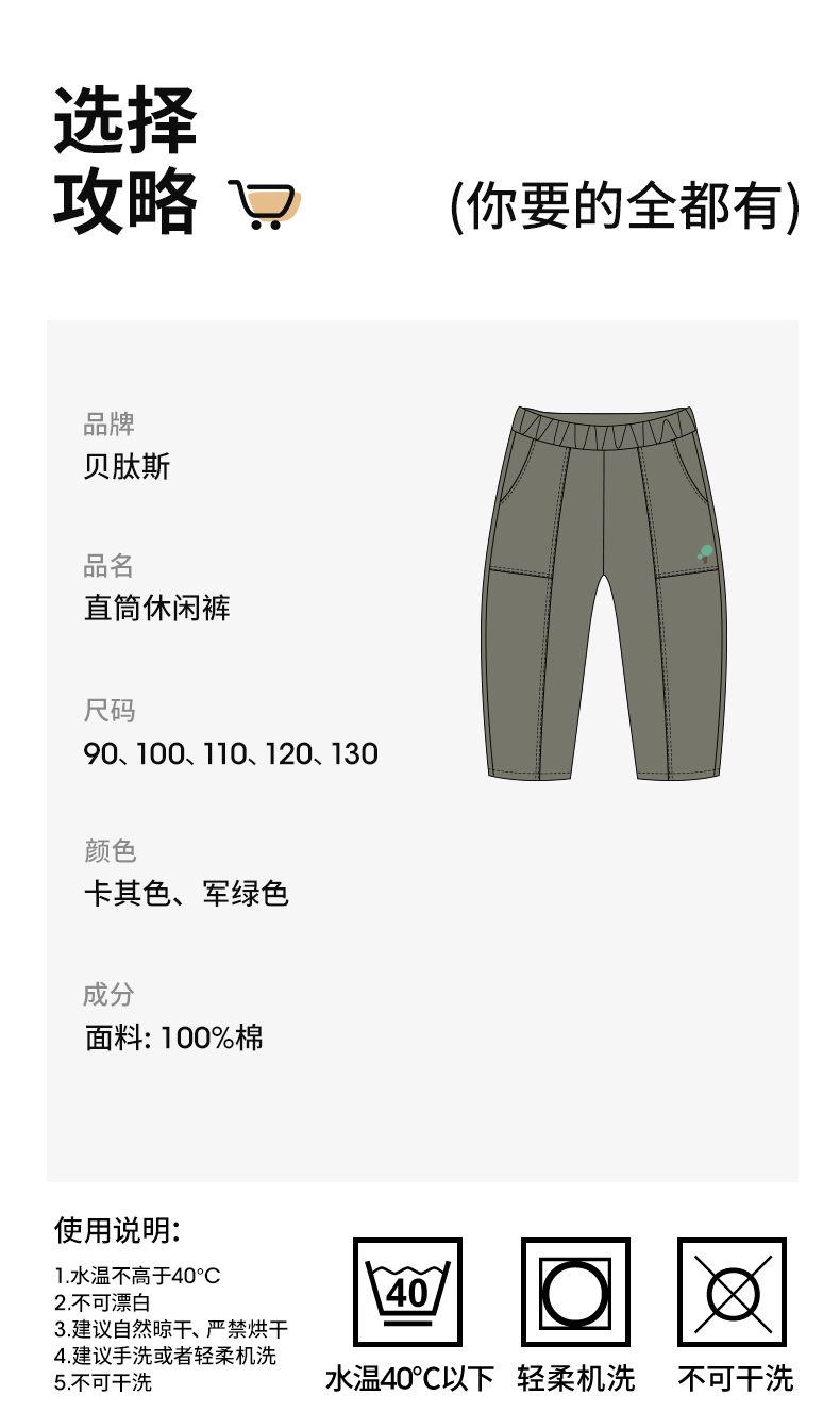 【孕味秒杀专属】贝肽斯儿童裤子2025秋季新纯棉透气宽松男女宝宝秋装休闲运动长裤