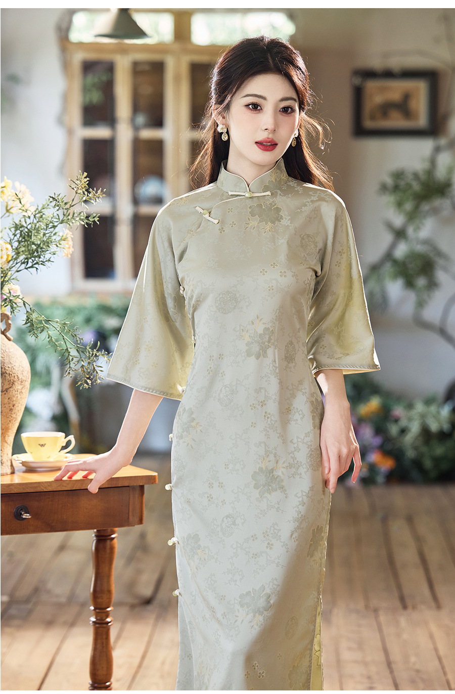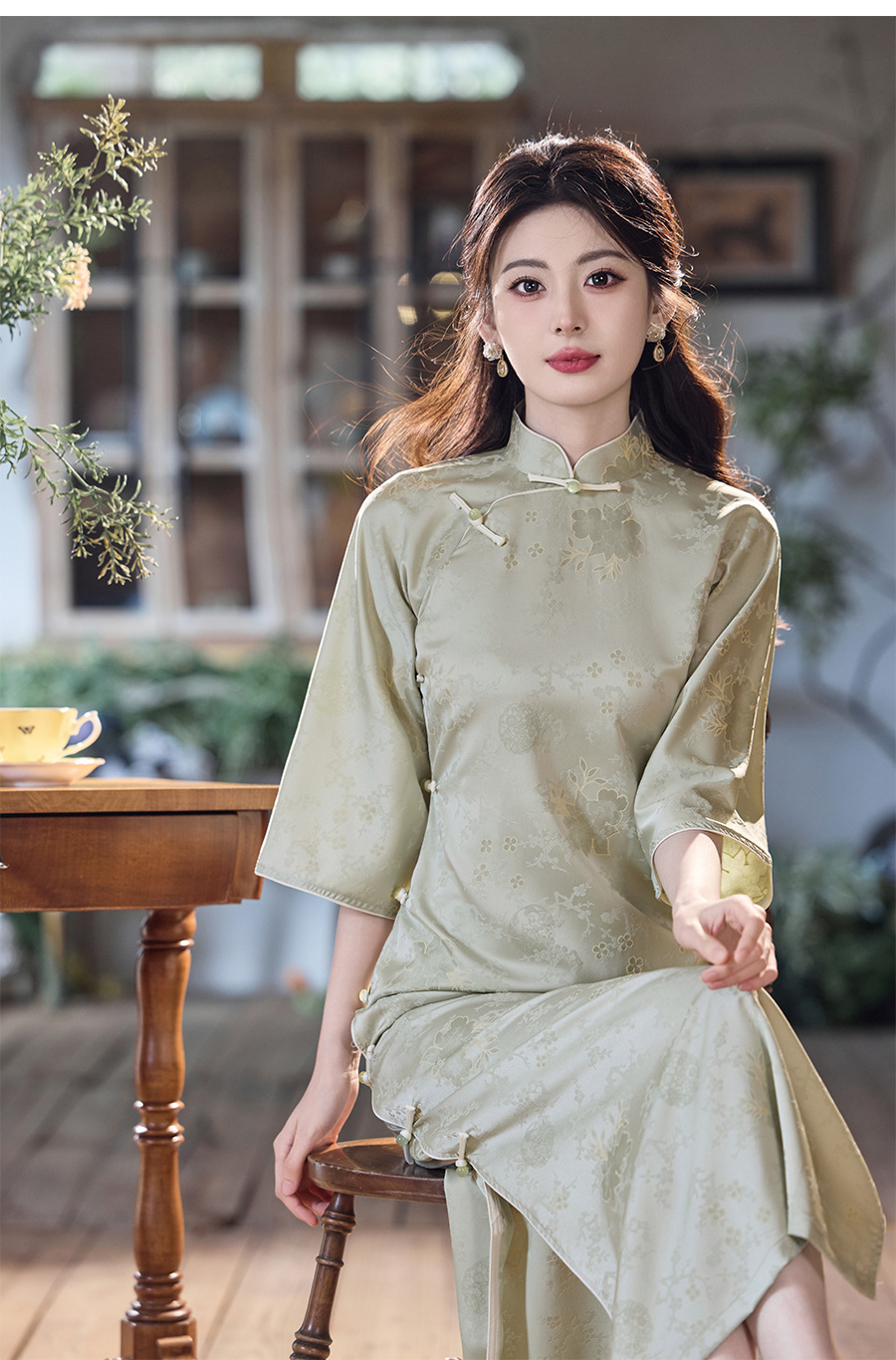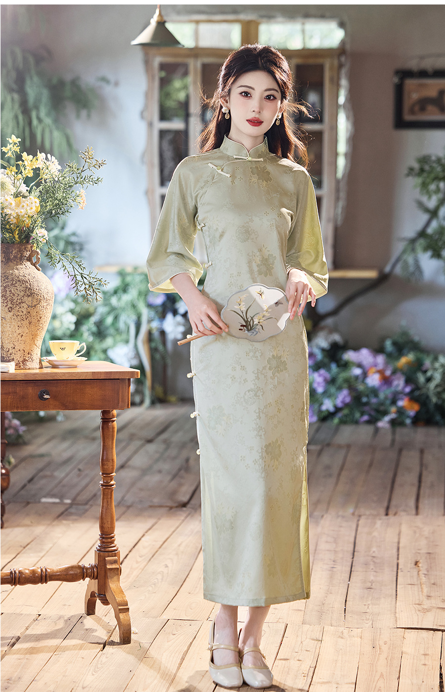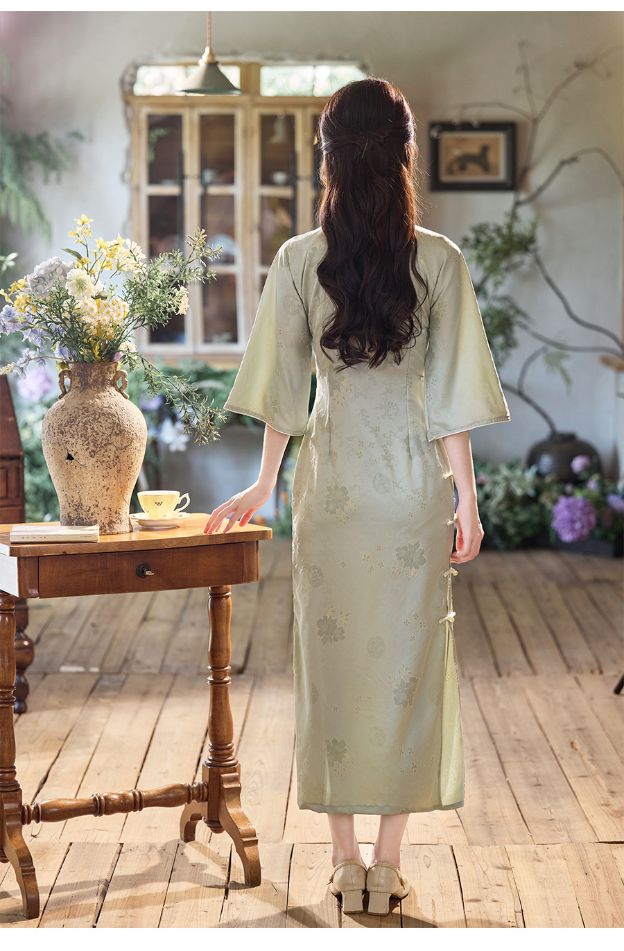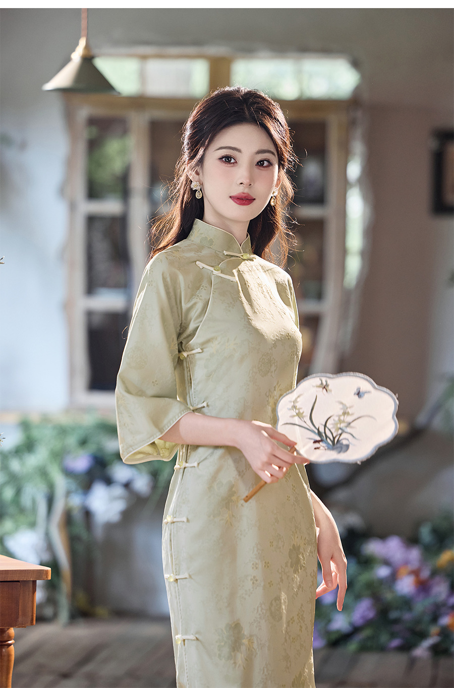 全开襟古法旗袍2025新款秋季绿色复古倒大袖日常可穿少女素雅气质