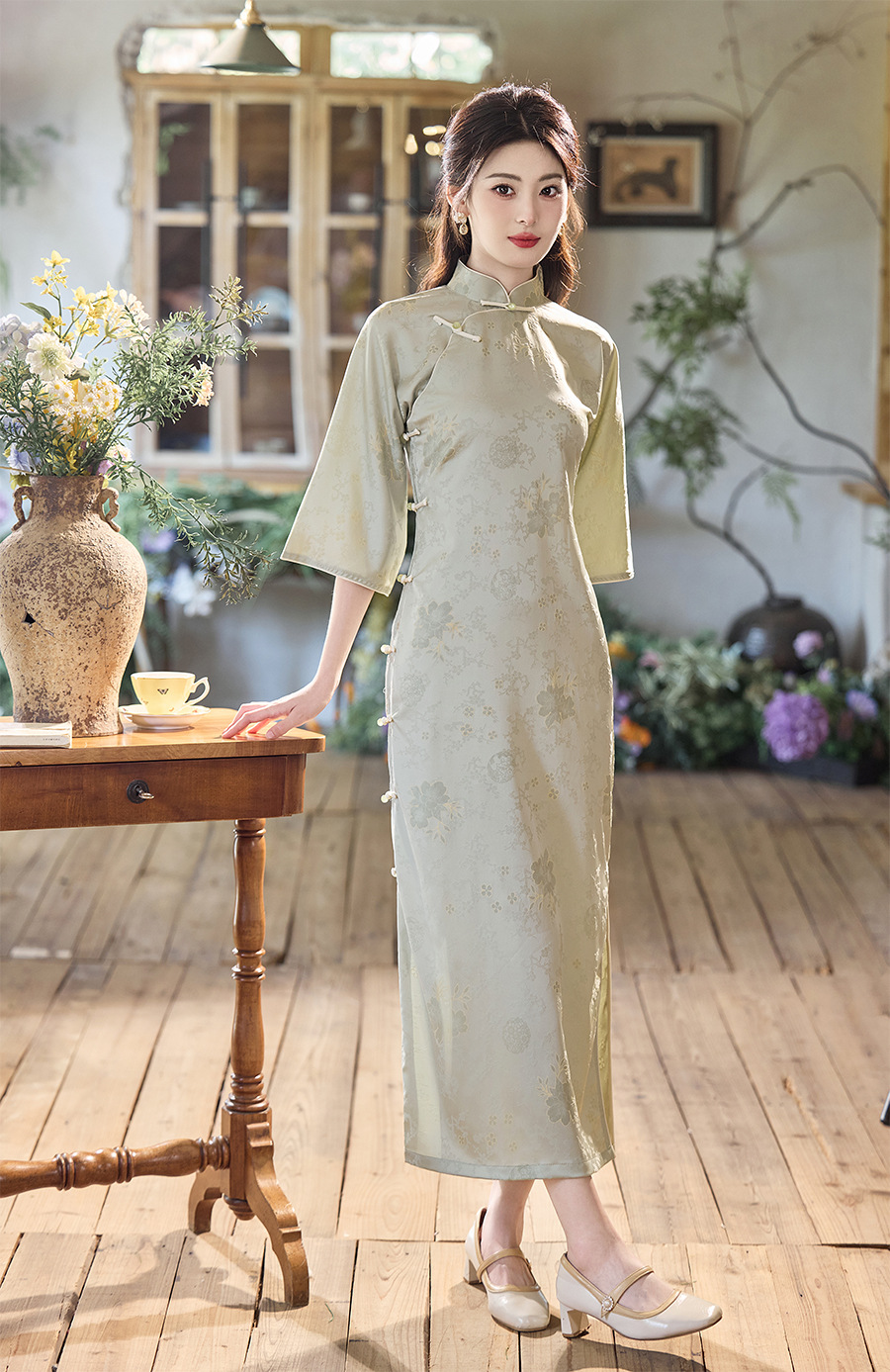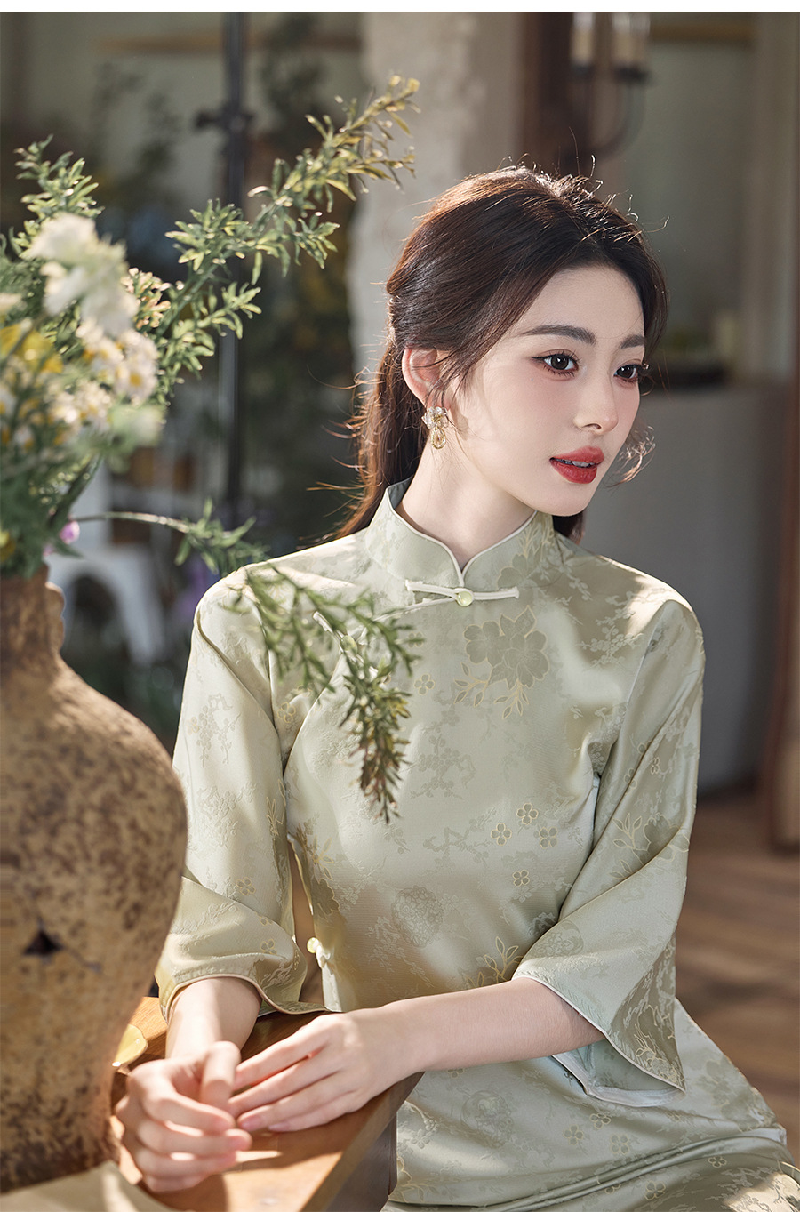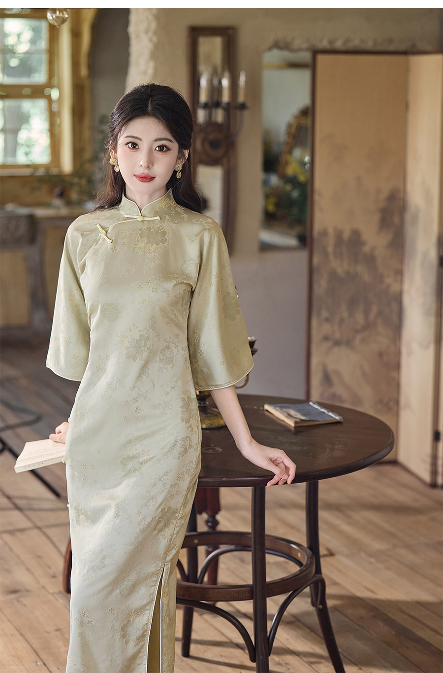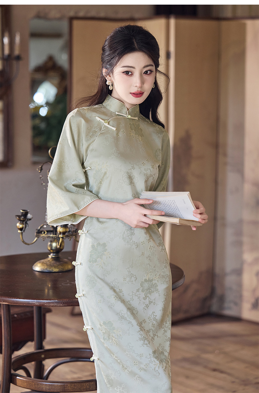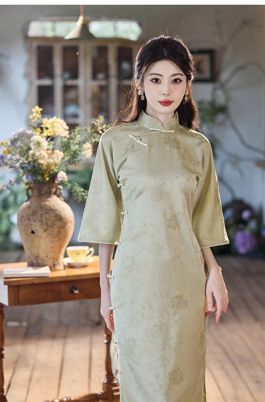 全开襟古法旗袍2025新款秋季绿色复古倒大袖日常可穿少女素雅气质