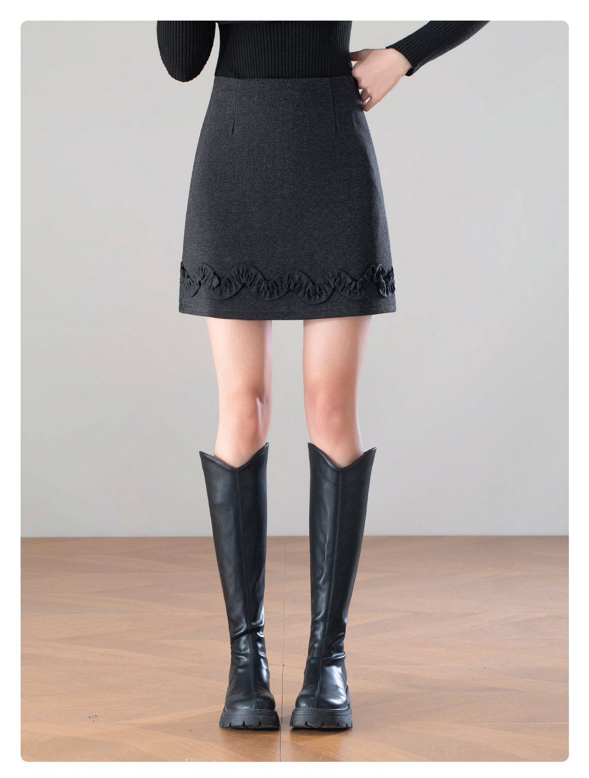 「自」全新升级【铂金会员137/天猫179/差价42】(13928)洛诗琳气质花边呢子包臀半身裙2025冬季新款高腰显瘦A字裙