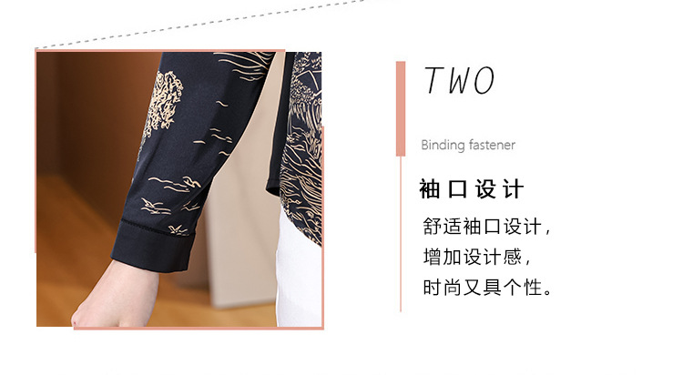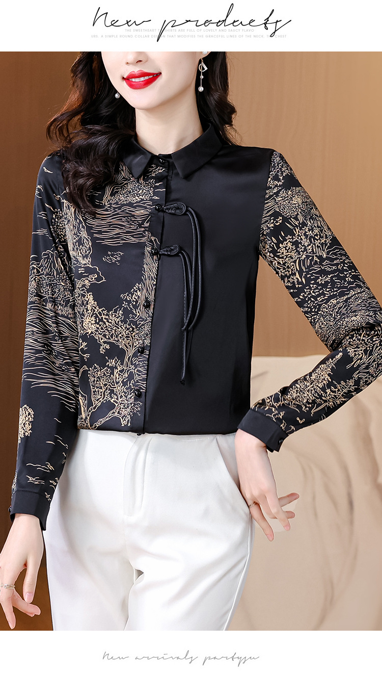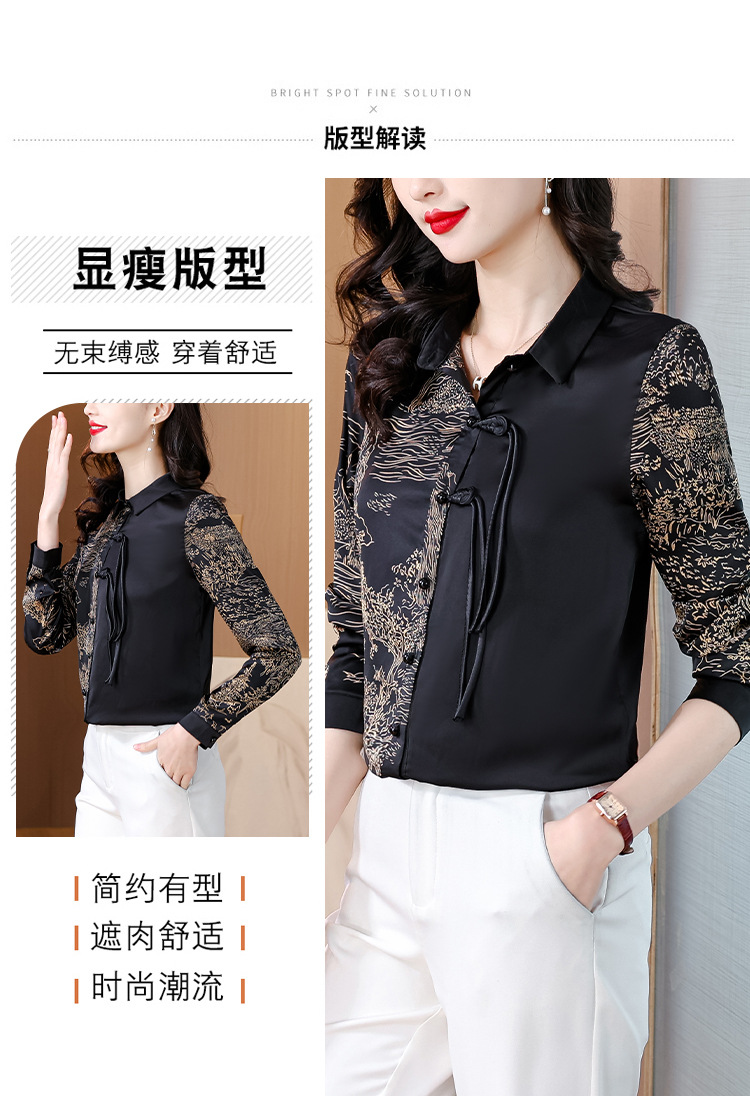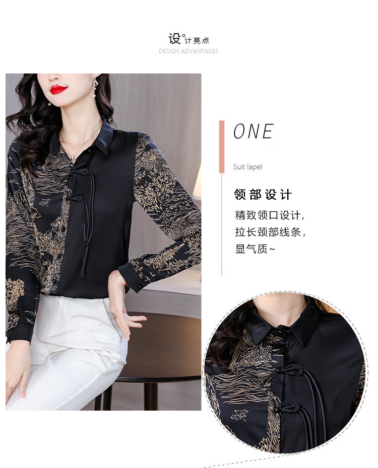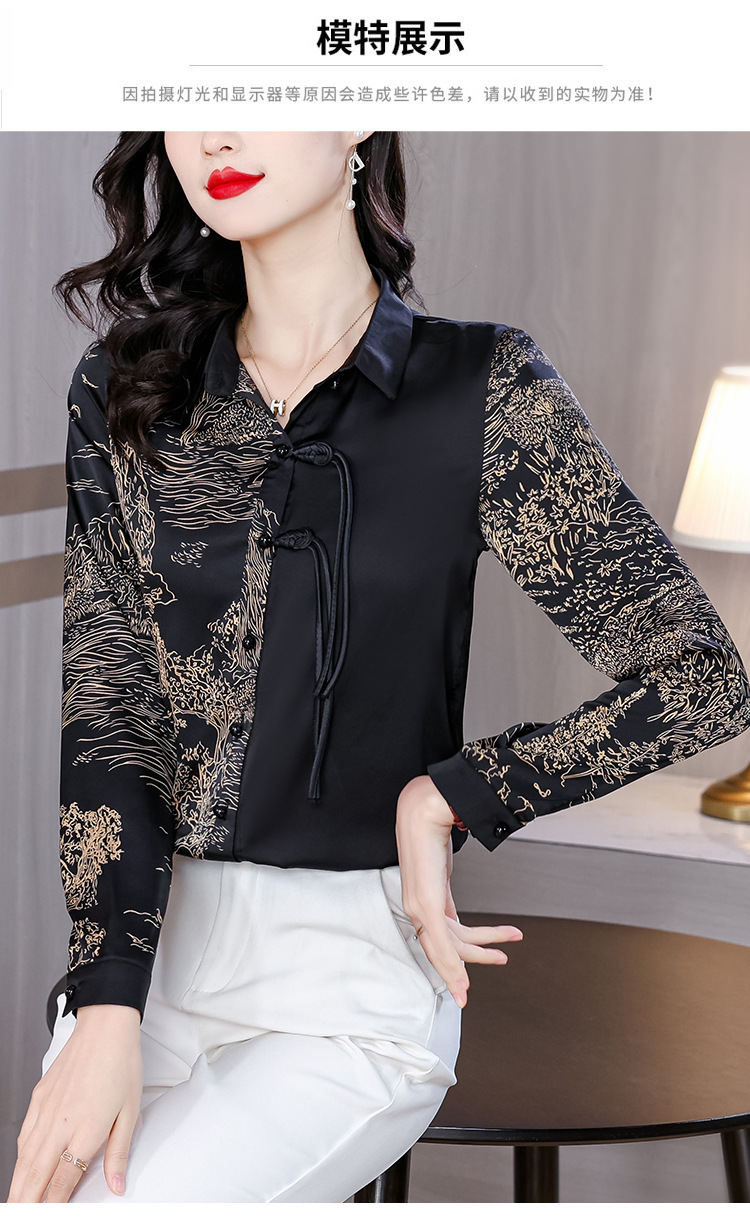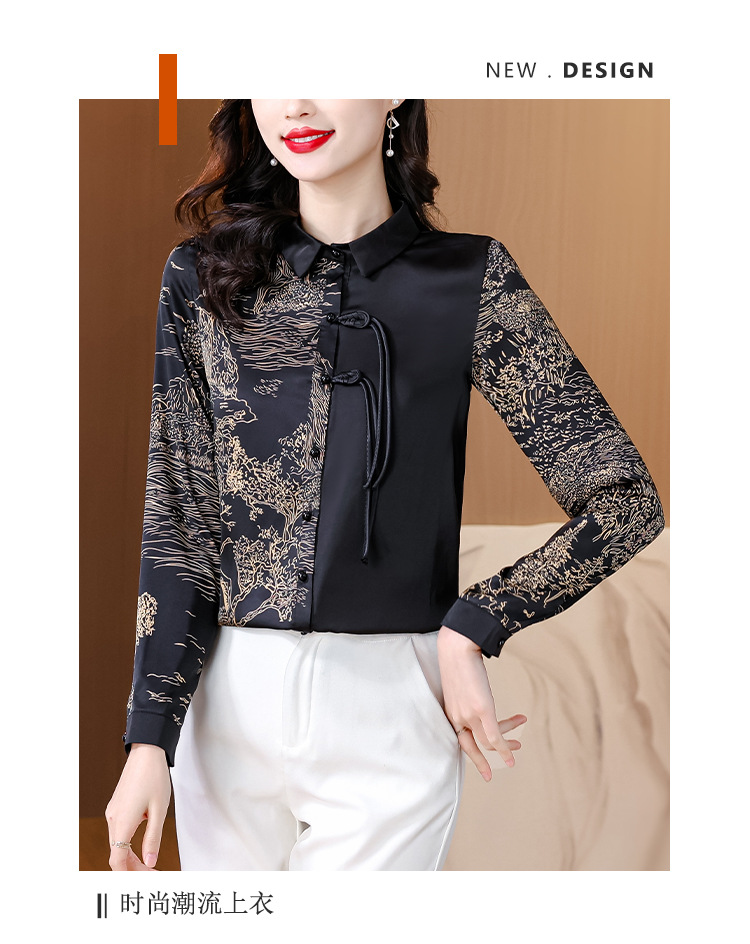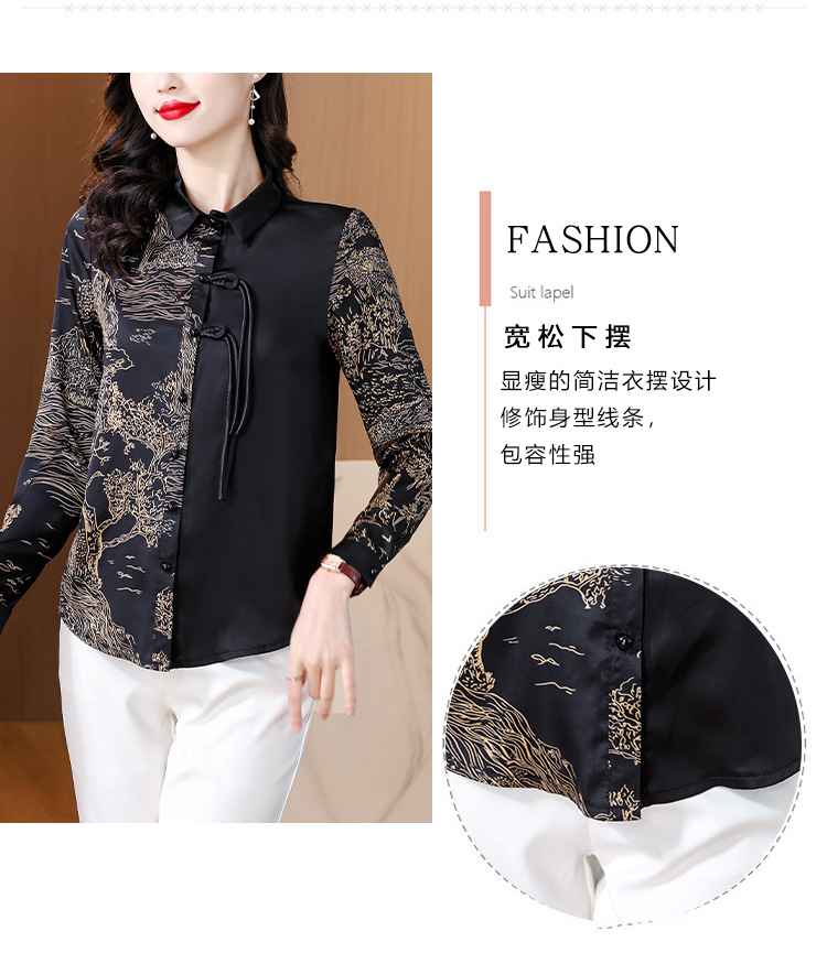 KQL E333M3缎面衬衣印花拼接中式复古盘扣妈妈上衣