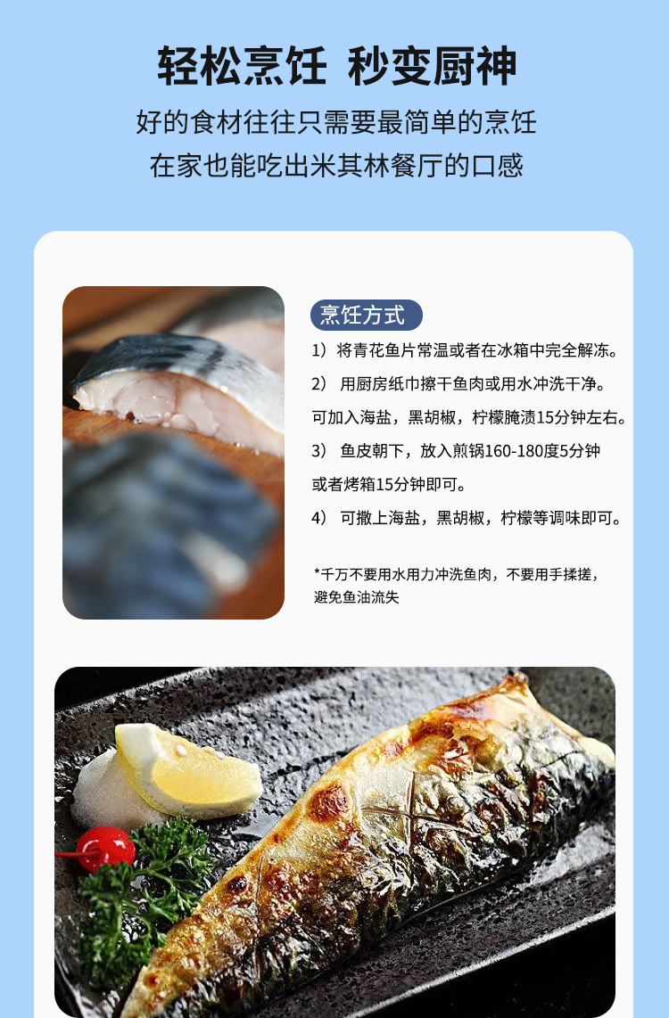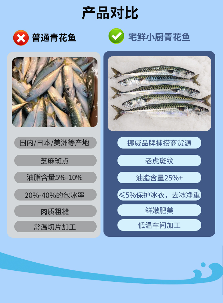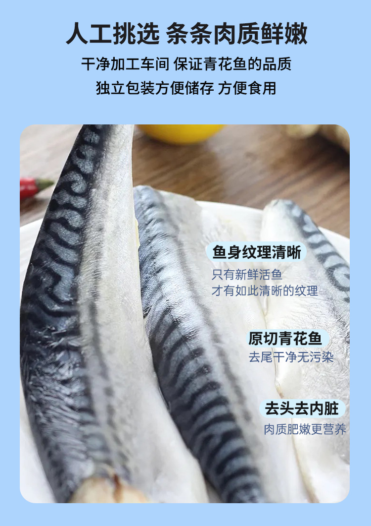 *青花鱼的肉质呈暗红色,部分肉质纹理有散开状。这是由于青花鱼的肉质和肌肉纤维的特性所形成的,不是由于变质所引起的。请对此介意的客户慎拍!