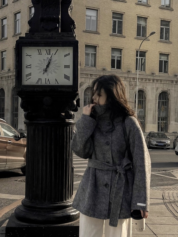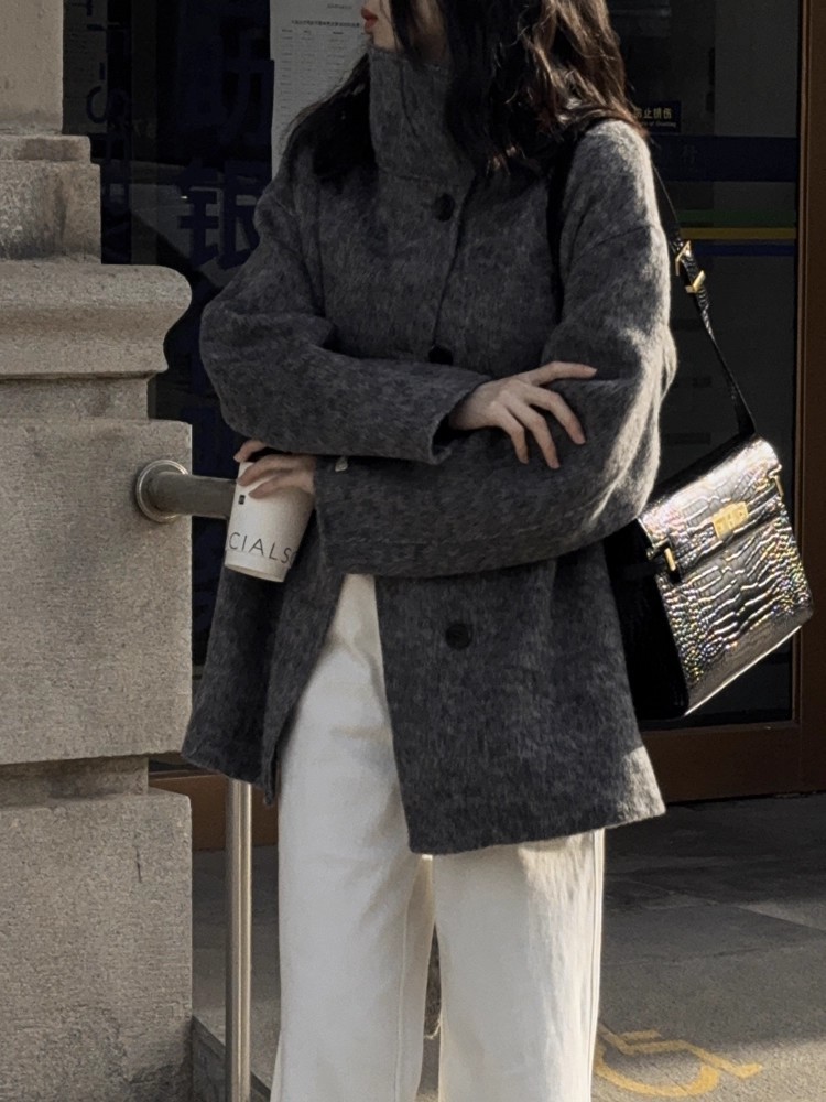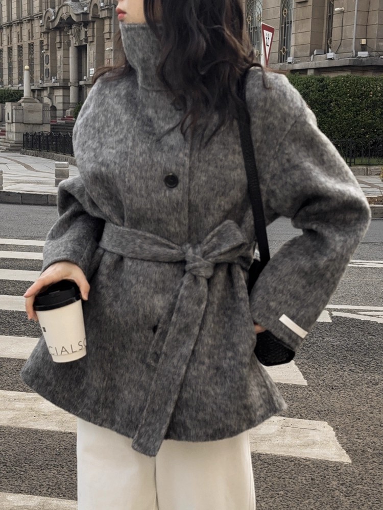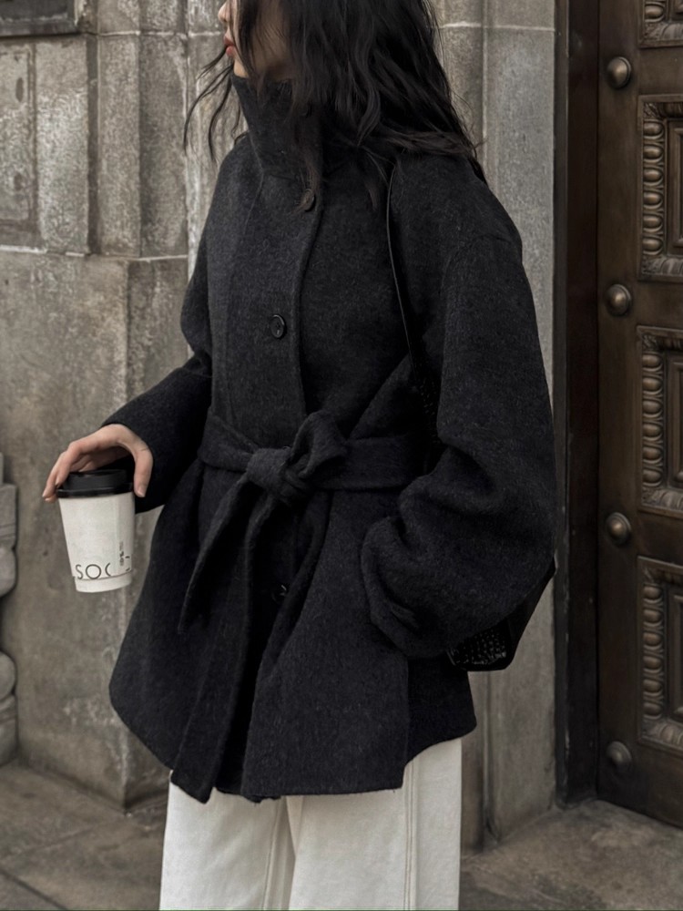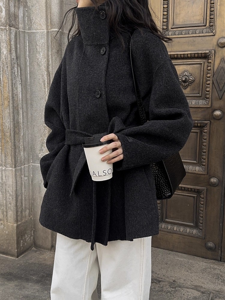丁摩【伦敦晨雾】秋冬新款立领双面羊绒大衣韩版显瘦毛呢外套女ALWSG0204
