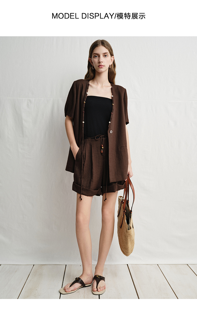 VIMAGE纬漫纪高腰松弛舒适休闲简约直筒宽松短裤2025夏季新款V2305907
