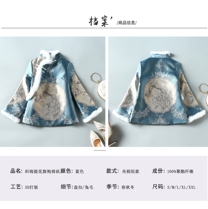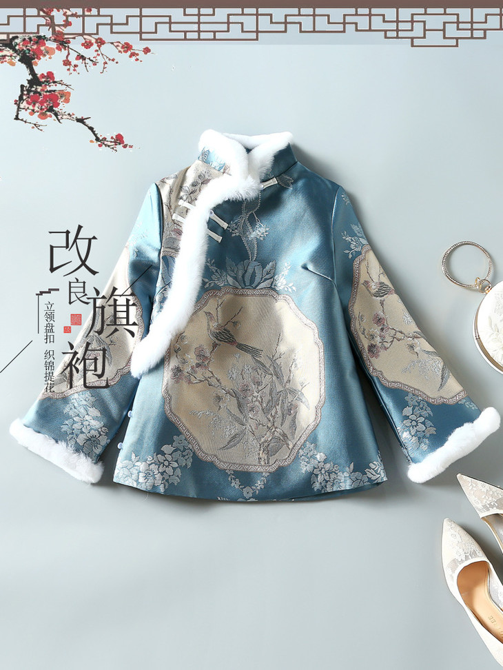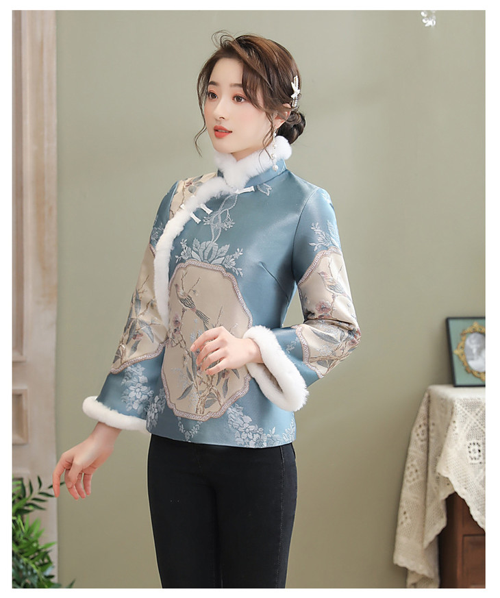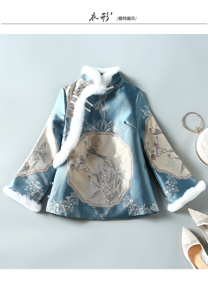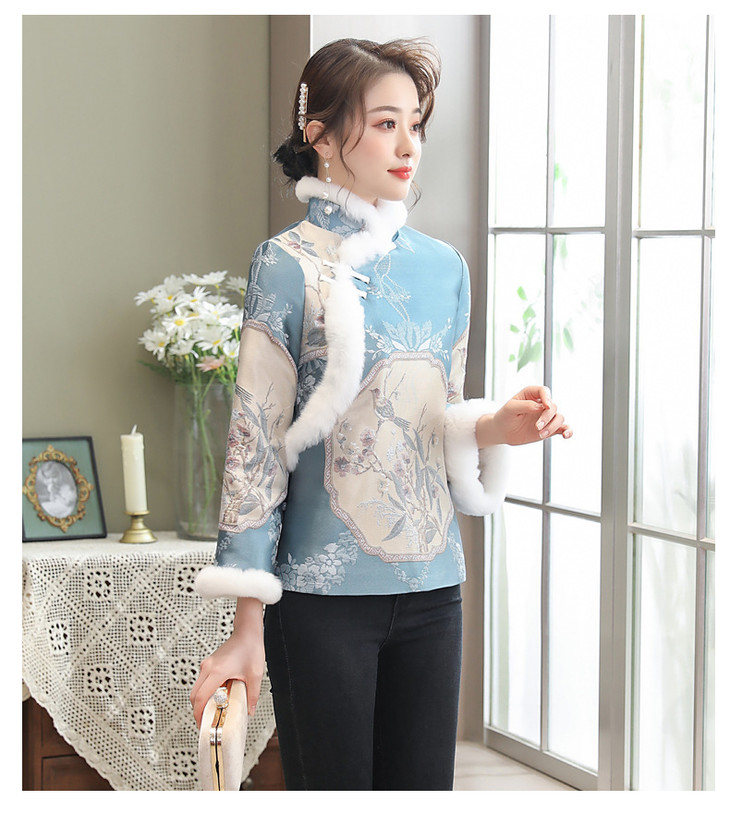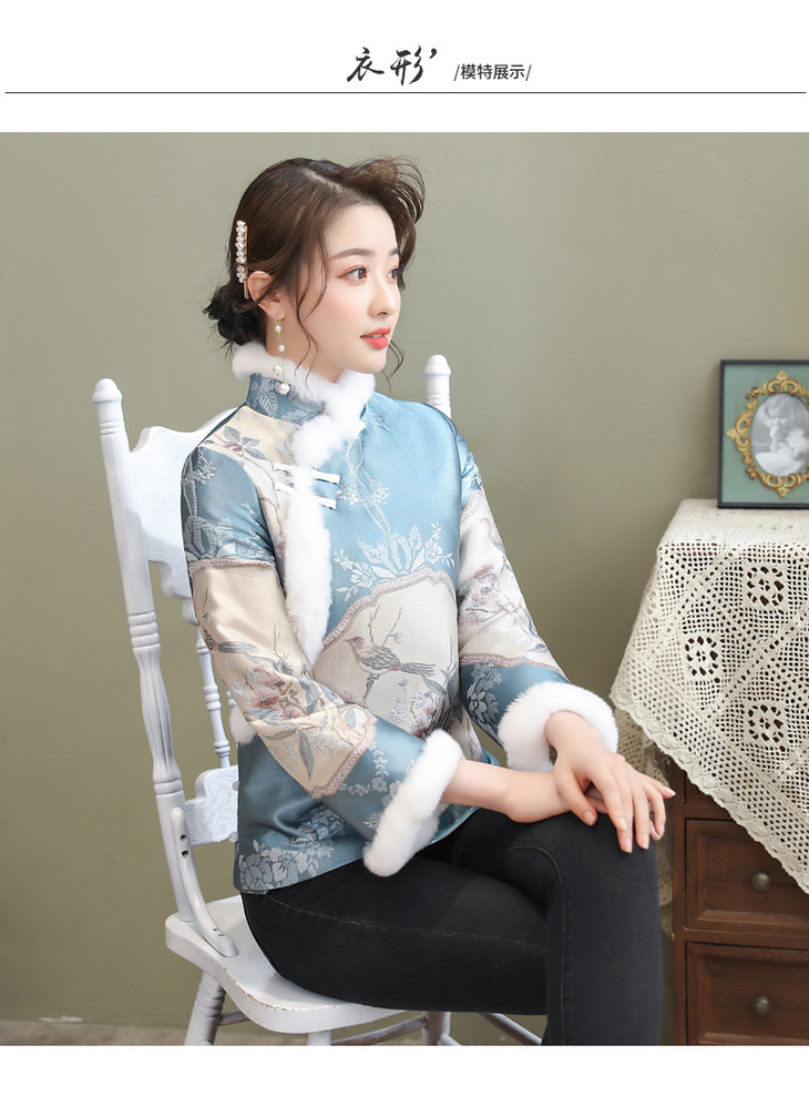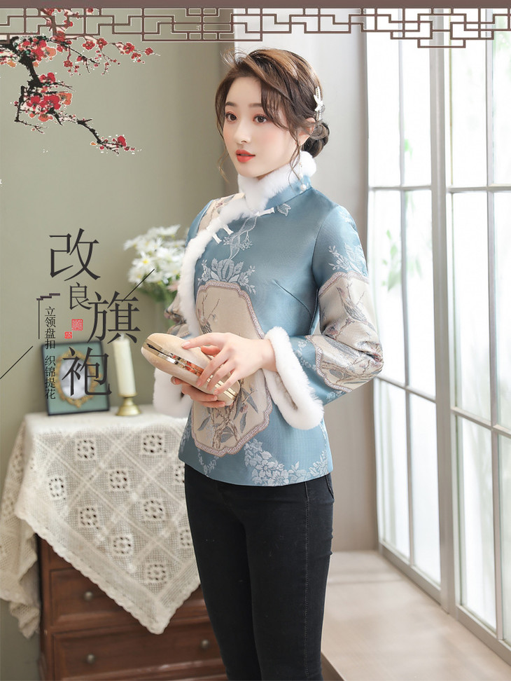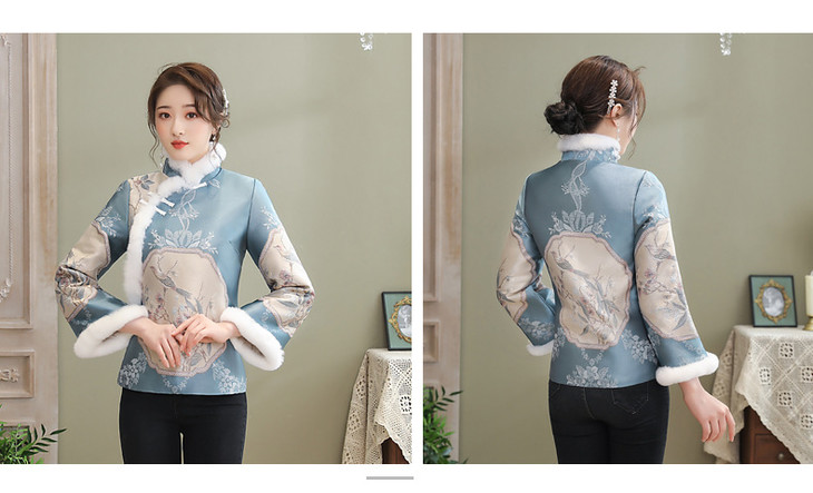 民族风兔毛,修身气质夹棉旗袍上衣ZSM-201109