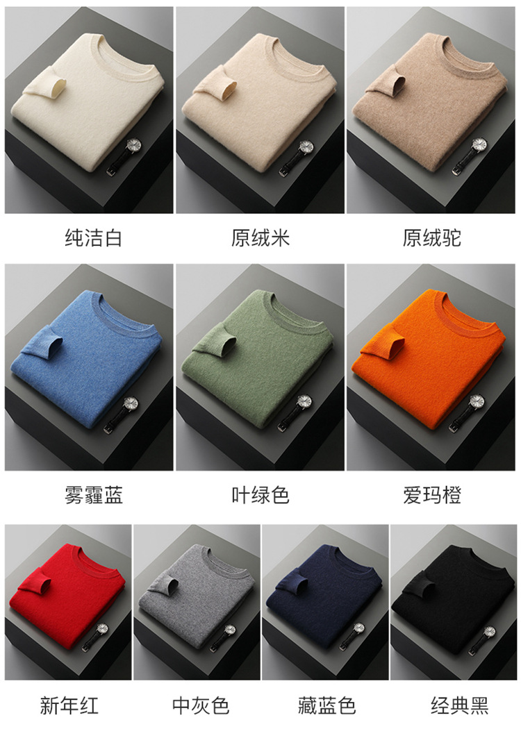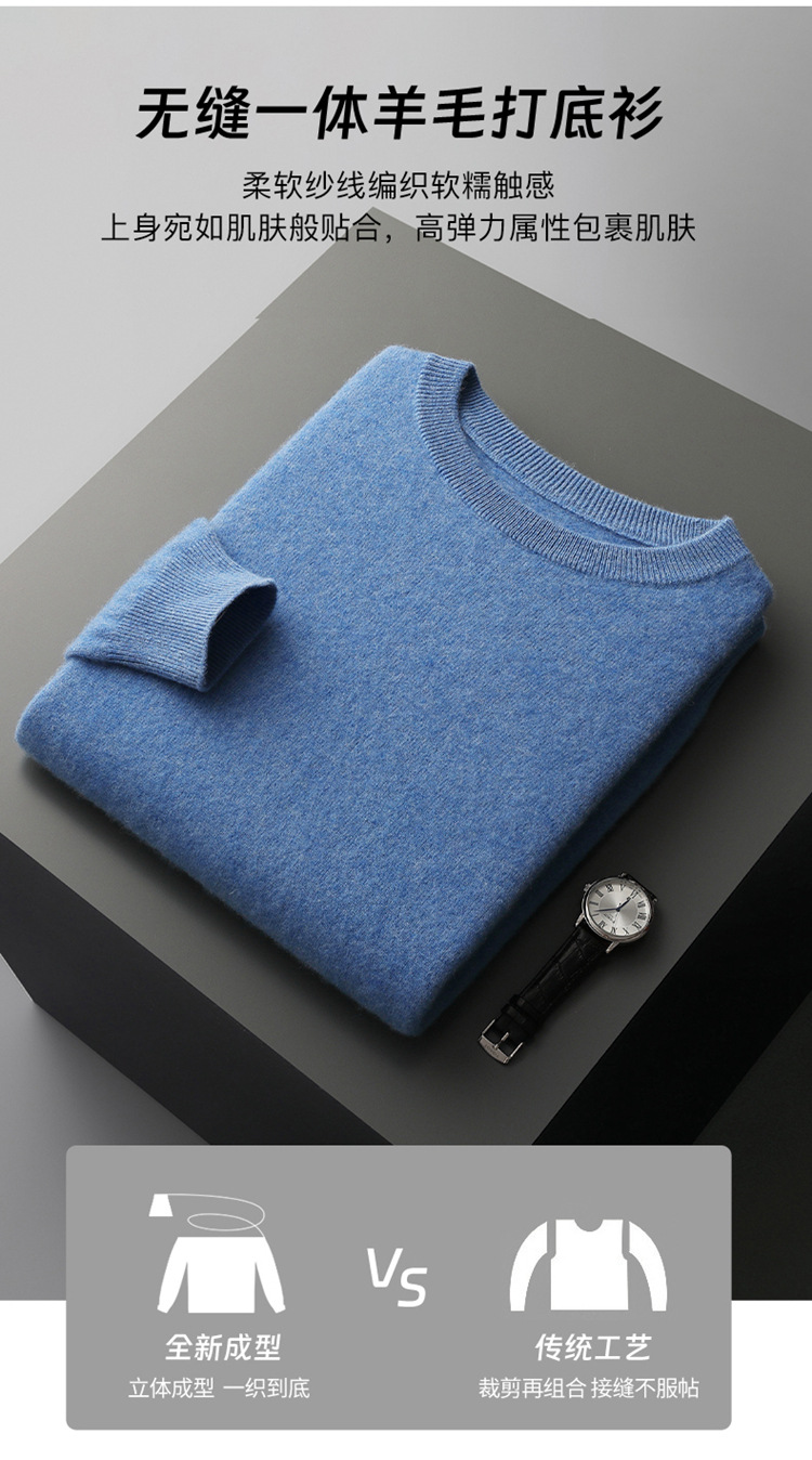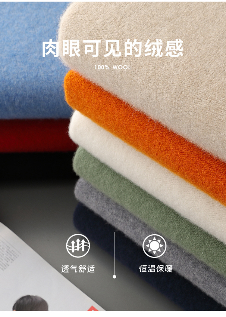 红览~圆领毛衣男时尚休闲纯羊毛针织衫秋冬季男士长袖内外穿搭打底衫NS56-817