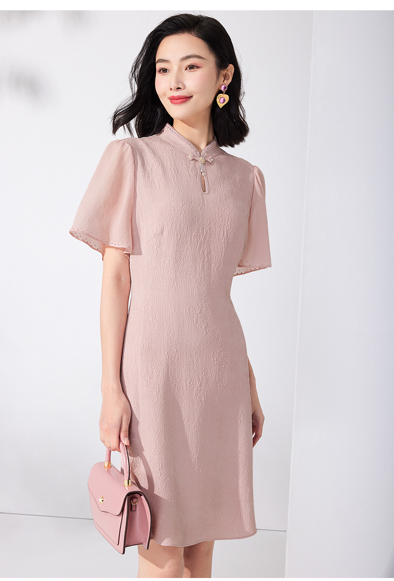 乔万尼真丝桑蚕丝连衣裙新中式旗袍设计小飞袖ET2E323