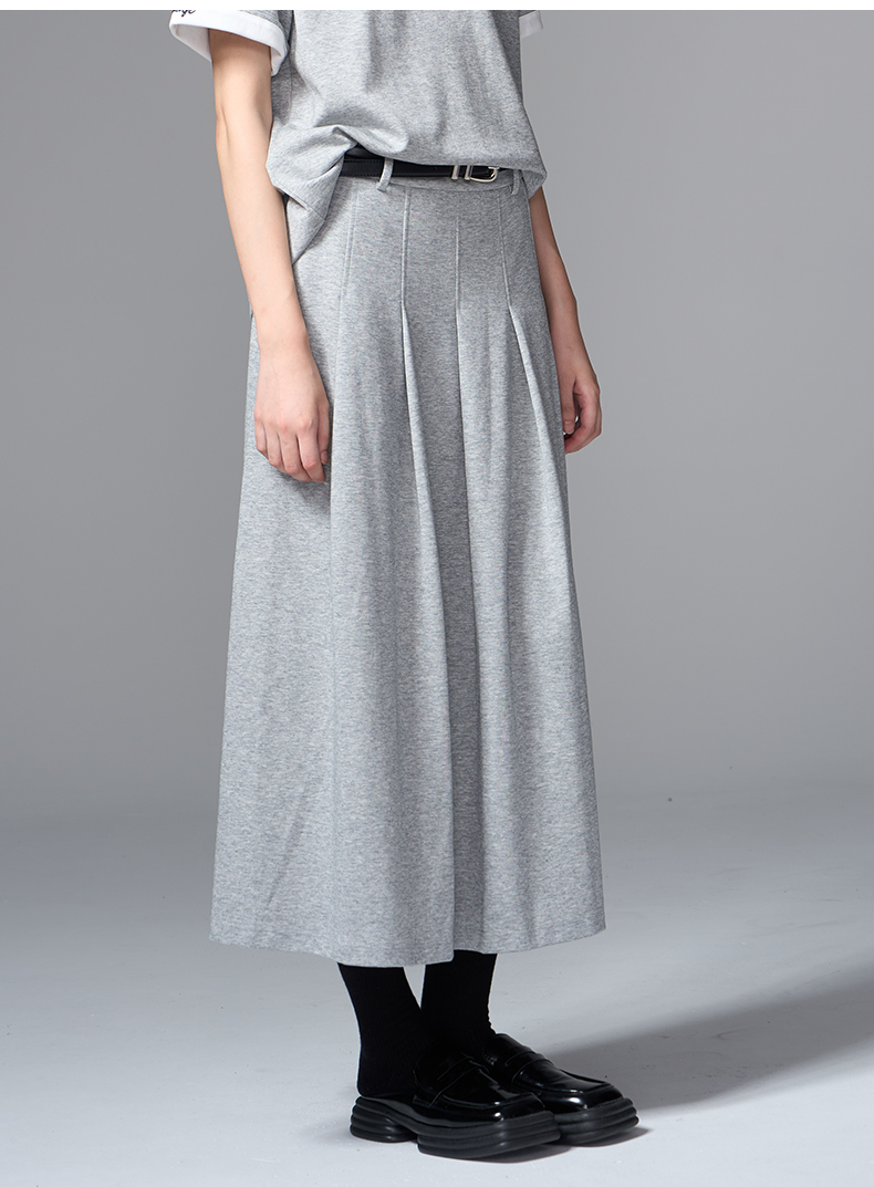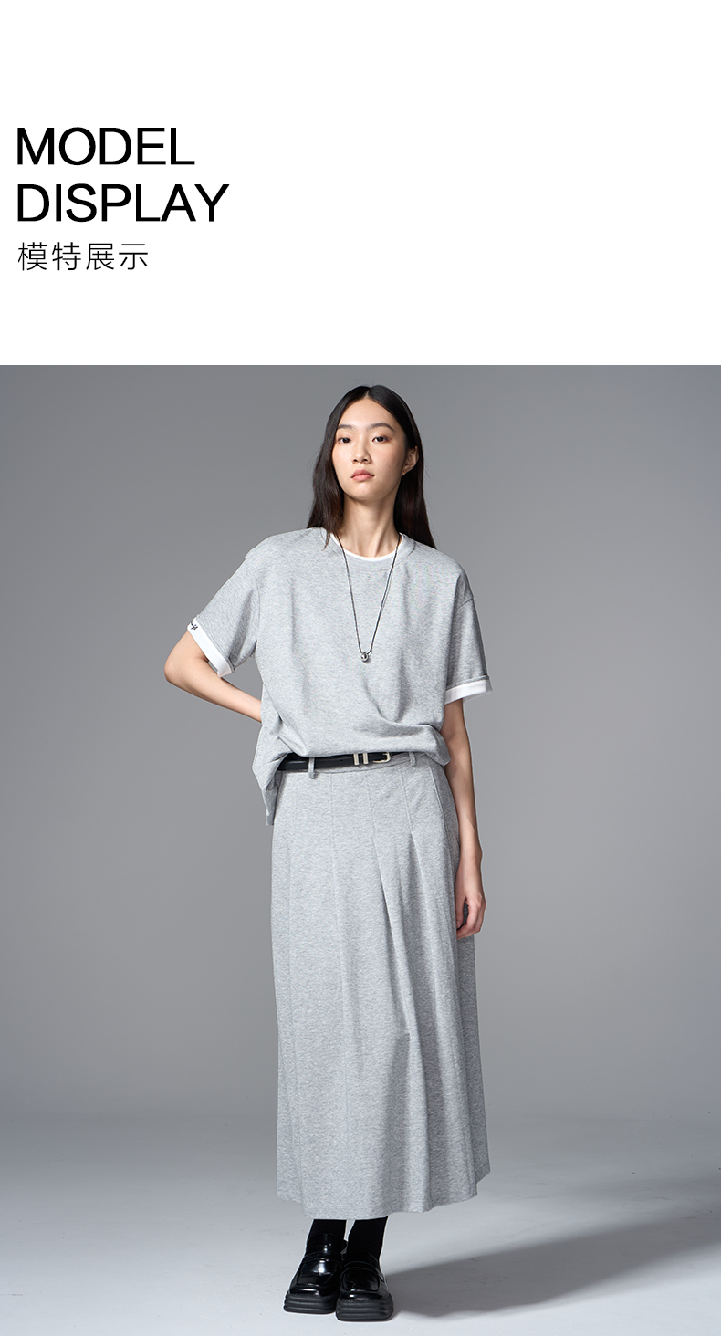 VIMAGE纬漫纪时髦灰色压褶设计时尚半身裙V2406104