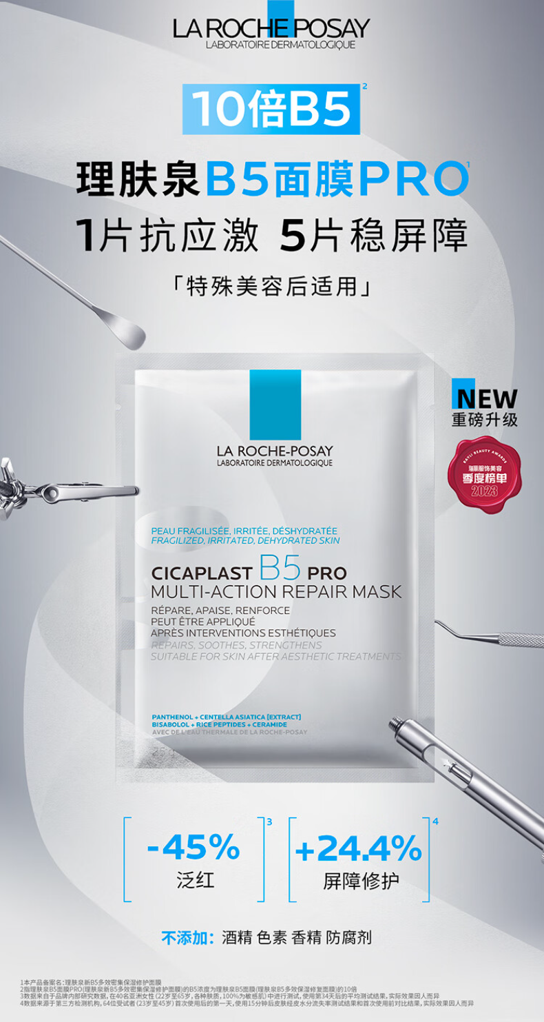 理肤泉新B5多效密集保湿修护面膜PRO补水保湿紧急修护舒缓敏感肌
