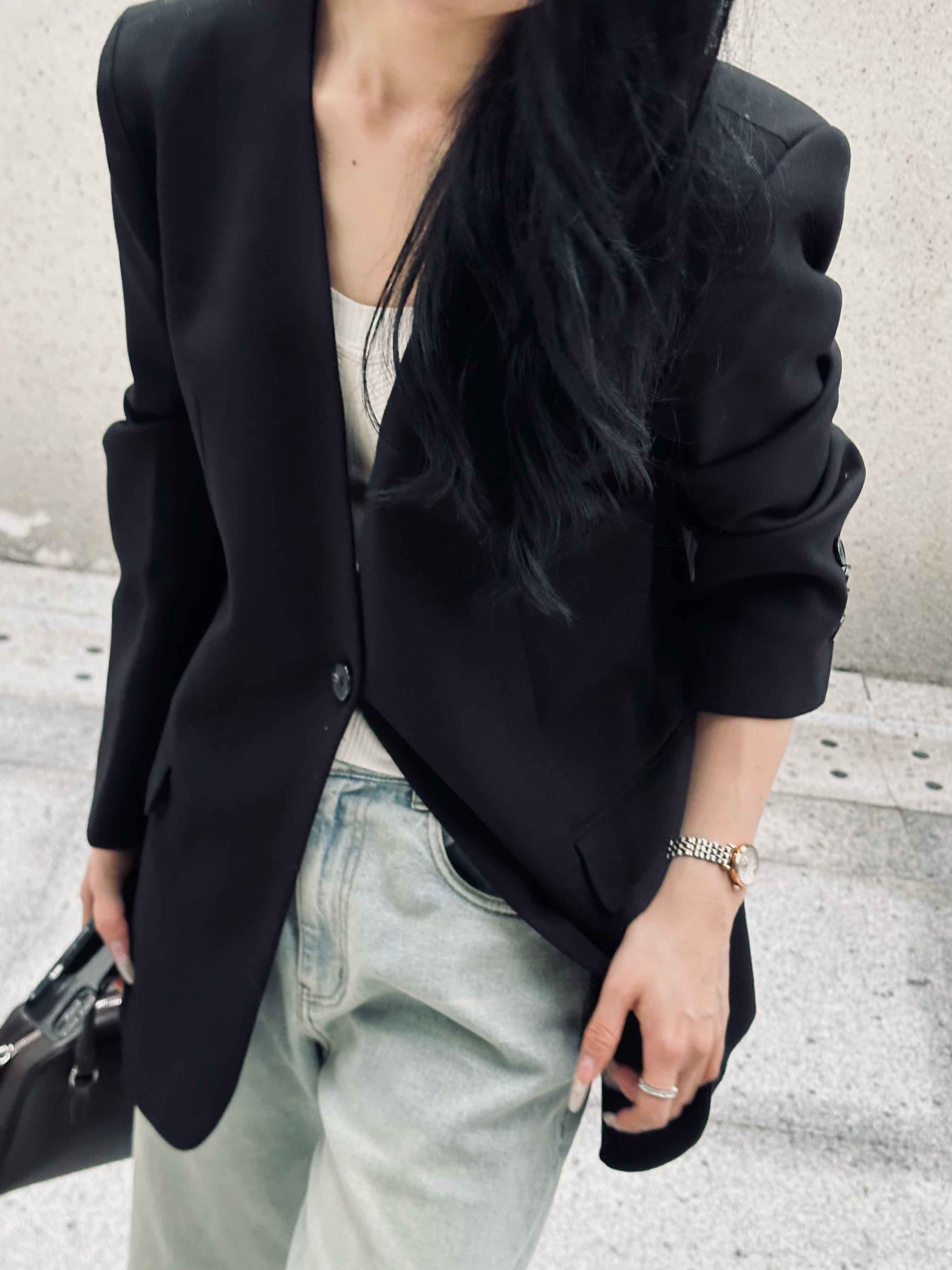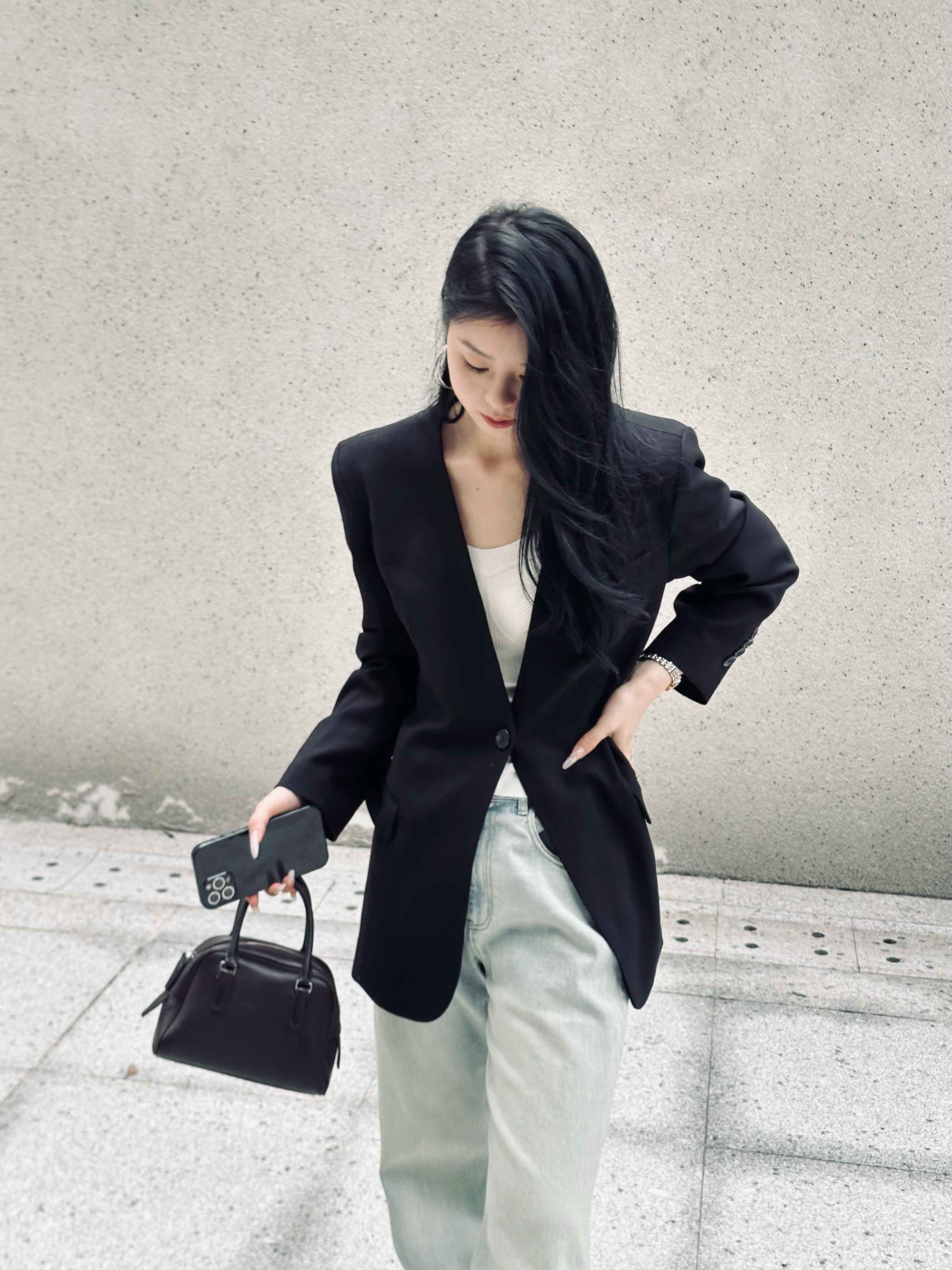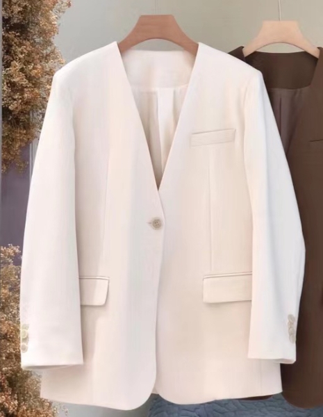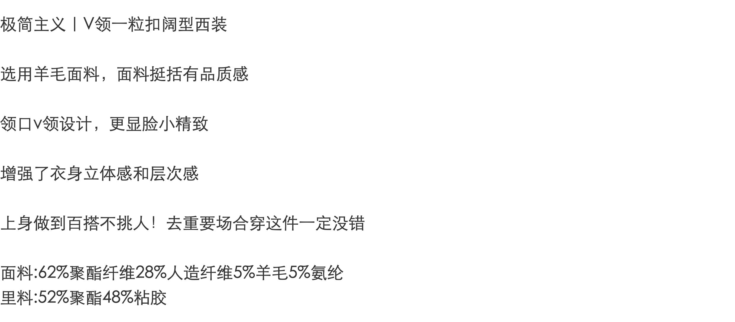 顺丰包邮04552洛诗琳春季新款极简设计感V领一粒扣西装外套60461