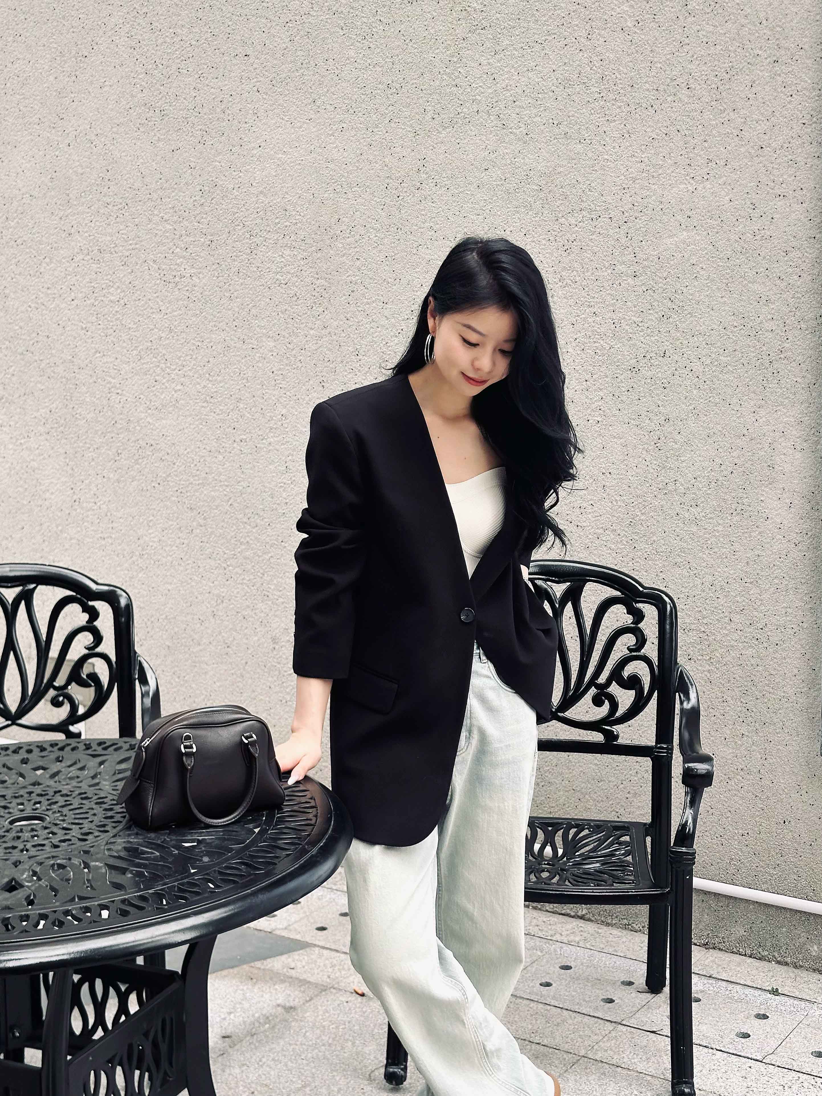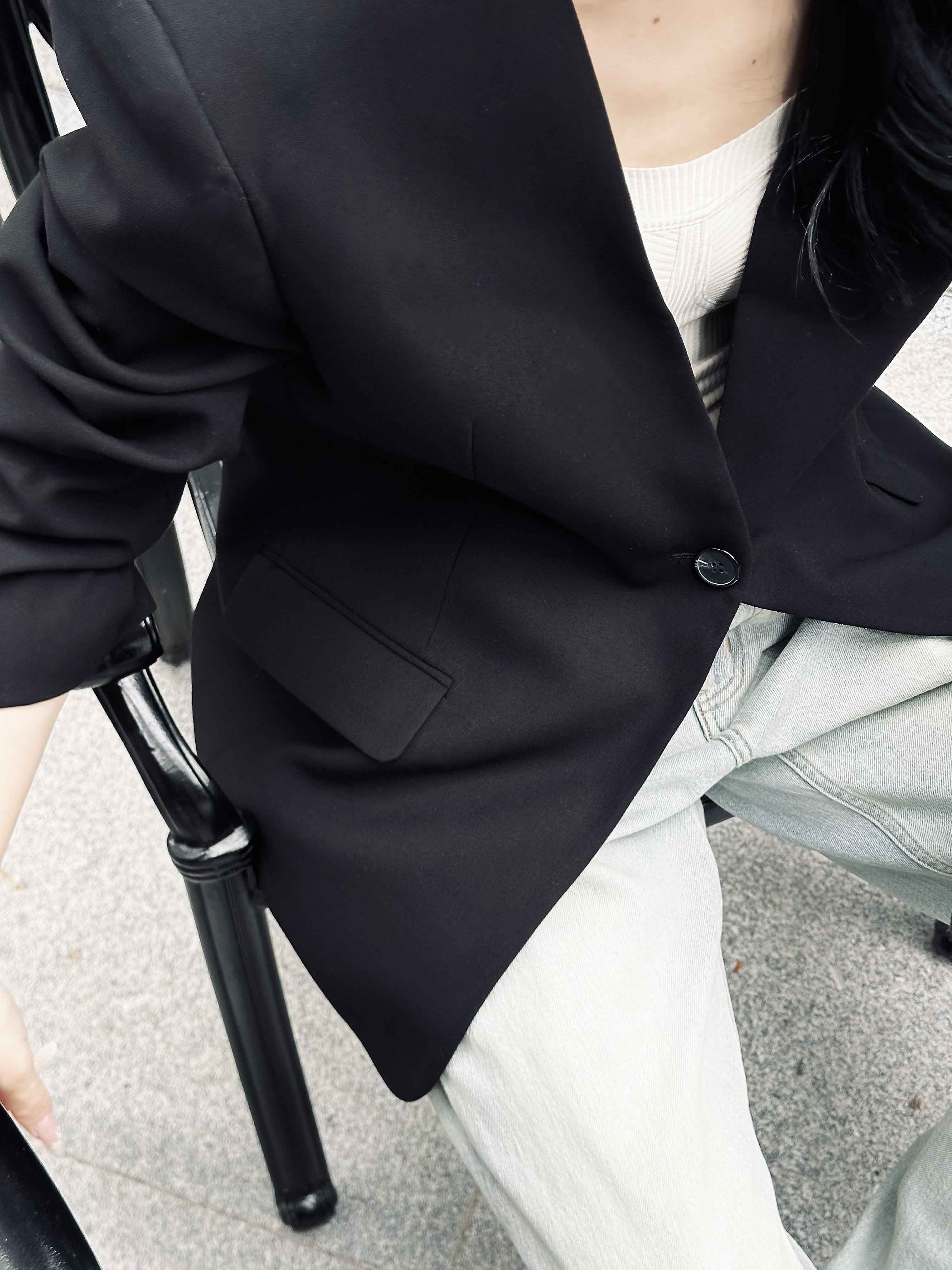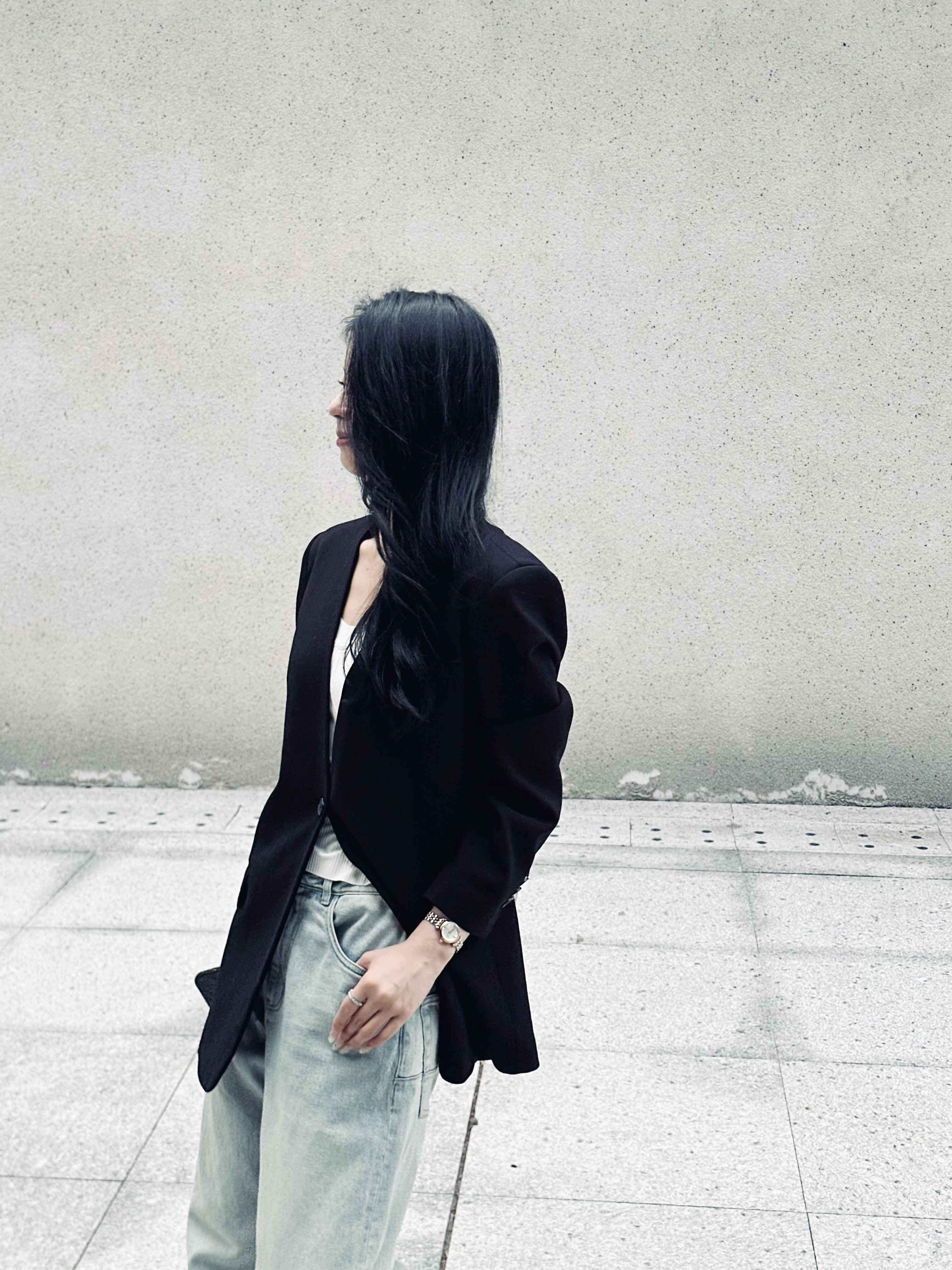顺丰包邮04552洛诗琳春季新款极简设计感V领一粒扣西装外套60461