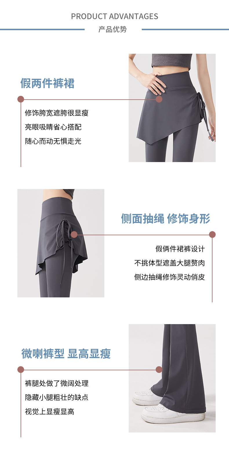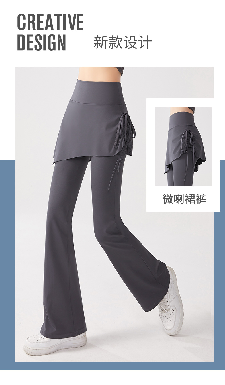 【修跨遮跨❗柔软舒服】瑜伽裤假两件裤裙高腰提臀紧身防走光喇叭裤普拉提运动健身裤。xa