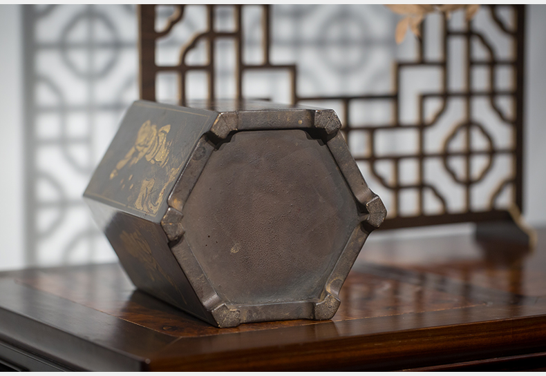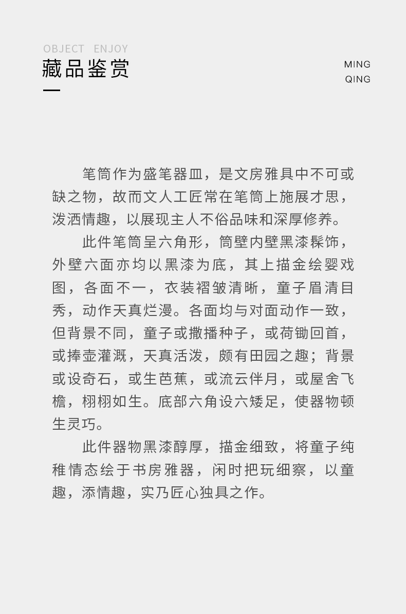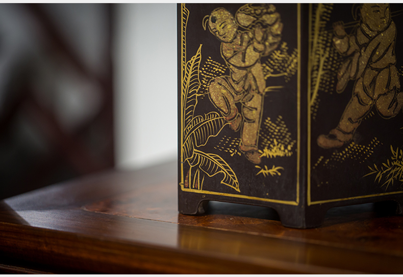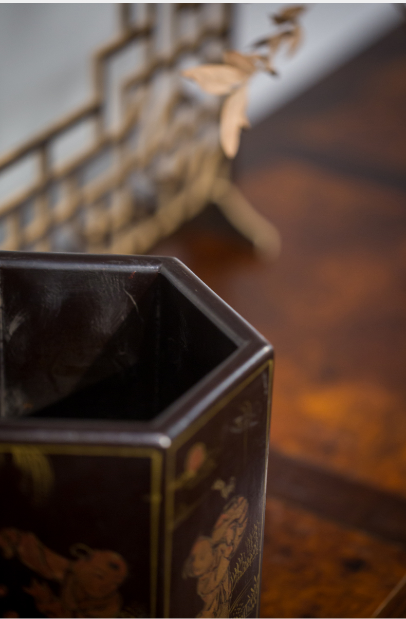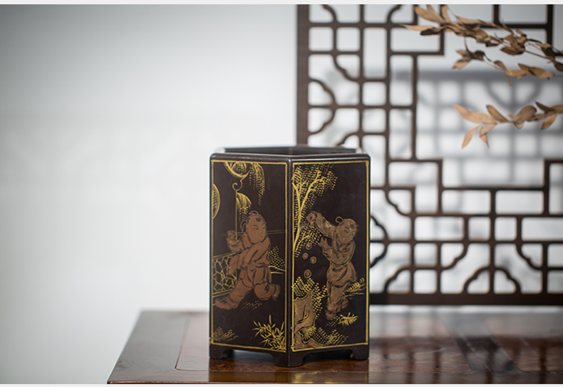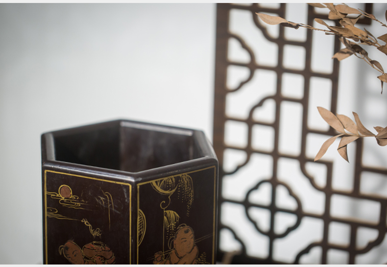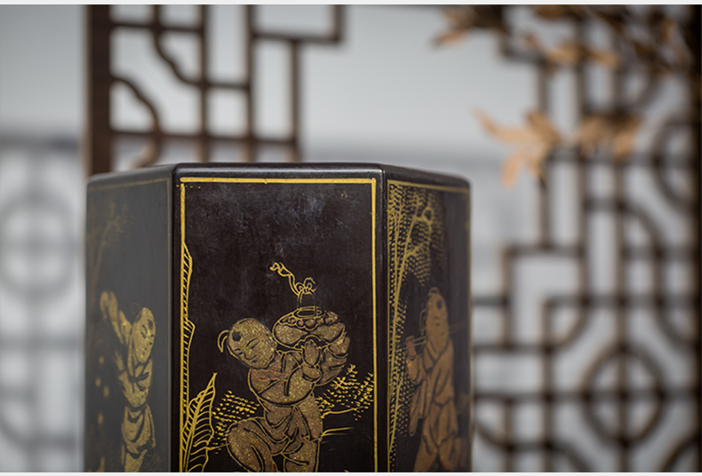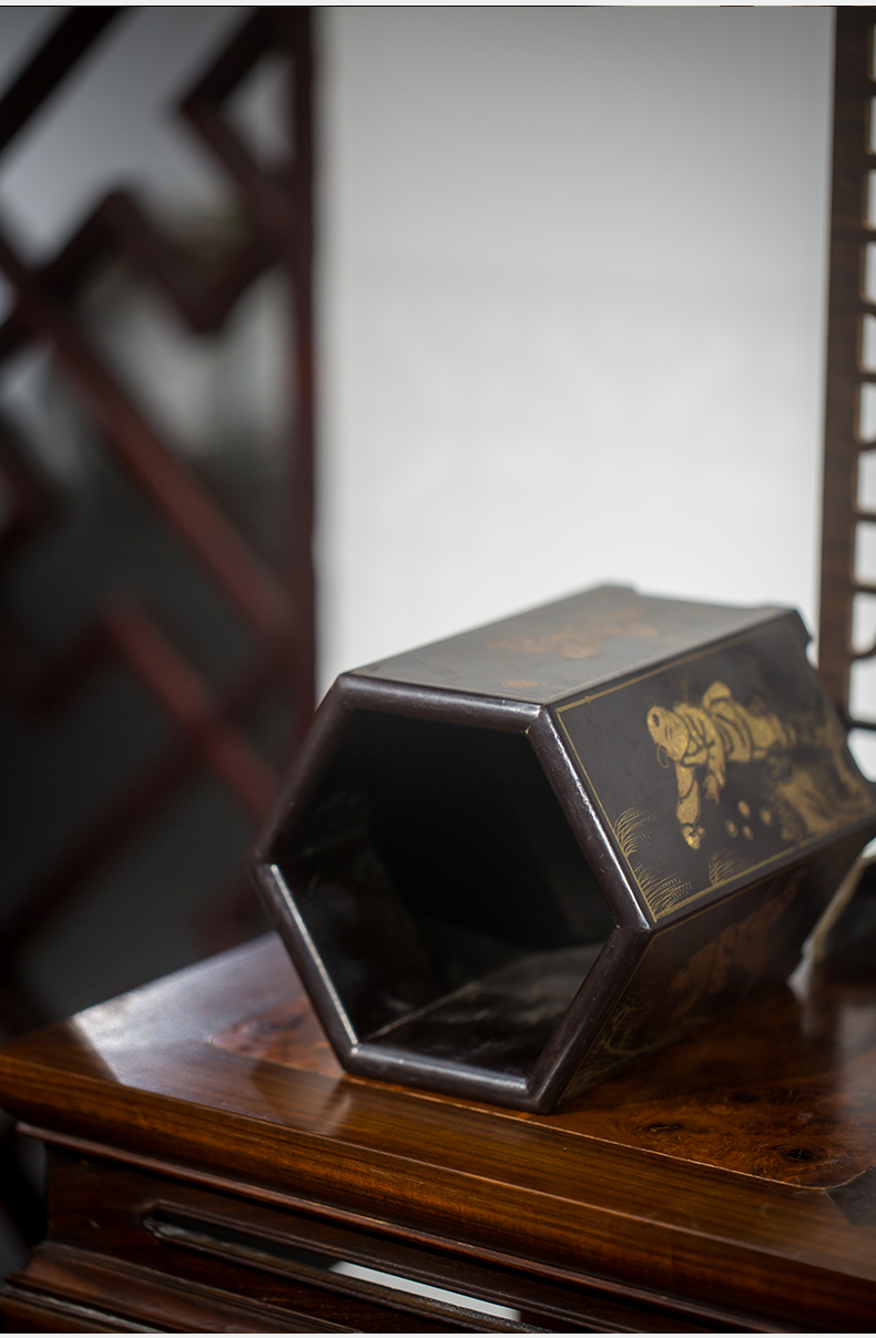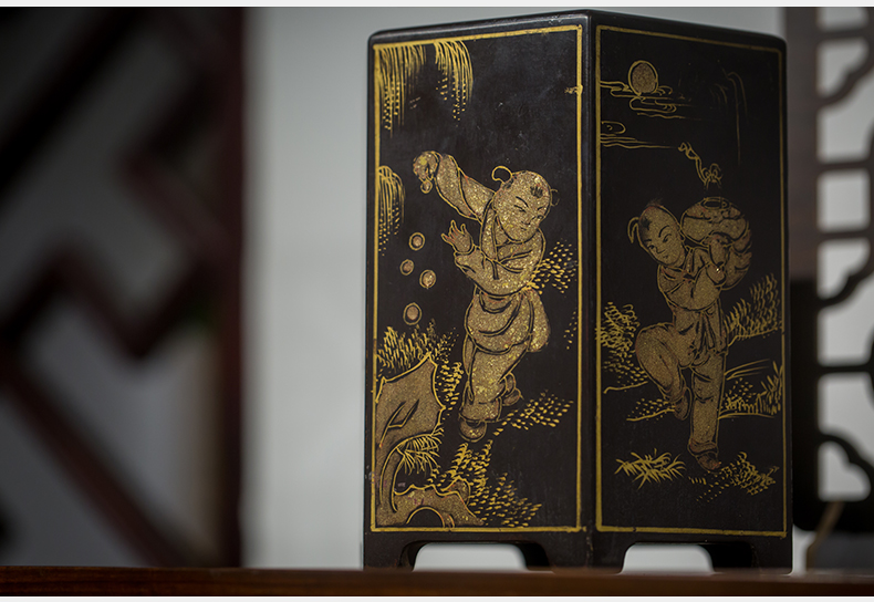 清代 黑漆描金婴戏图六角笔筒