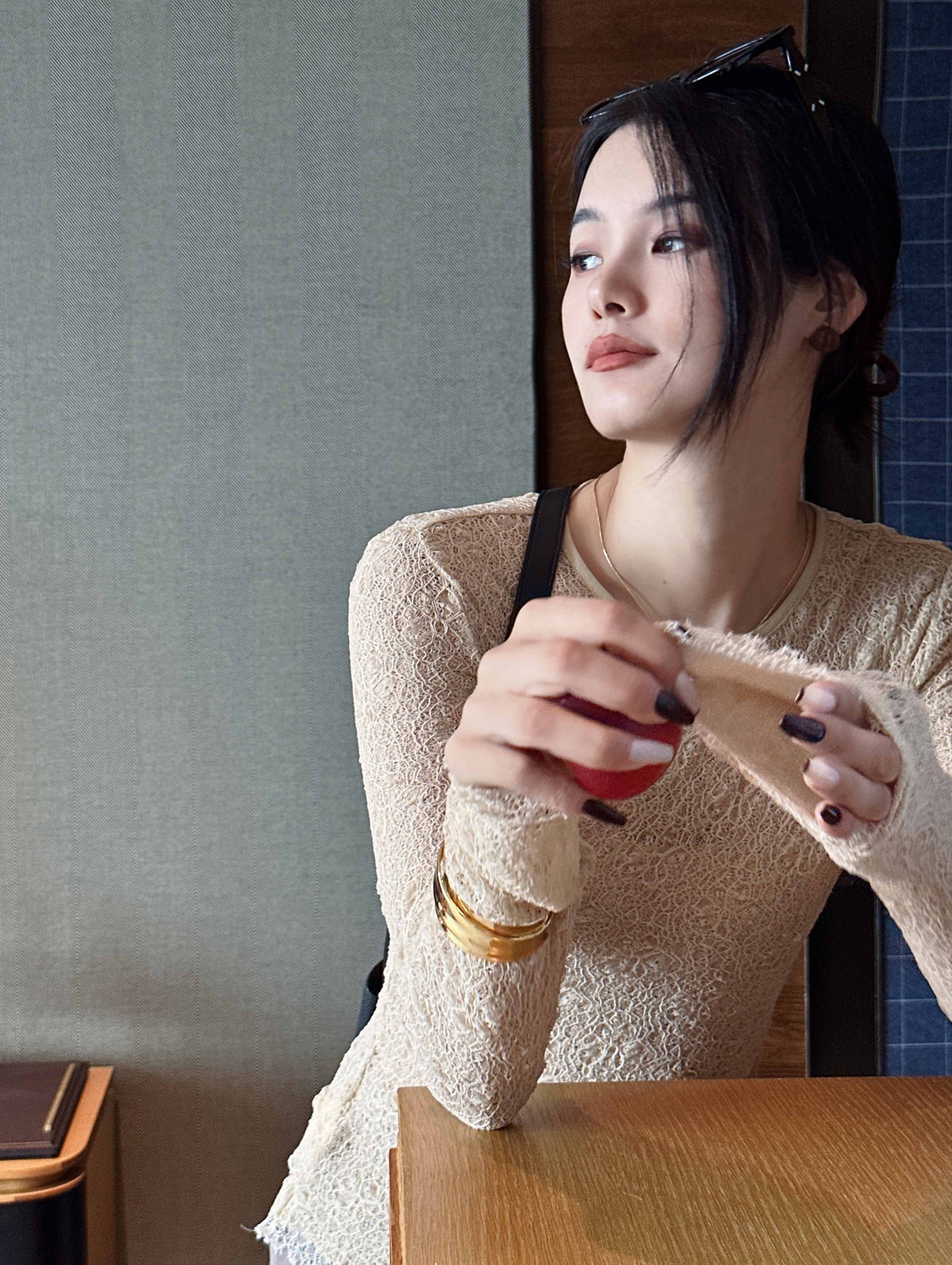出场即惊艳,女神单品「内外拼色双层内搭镂空蕾丝小衫」