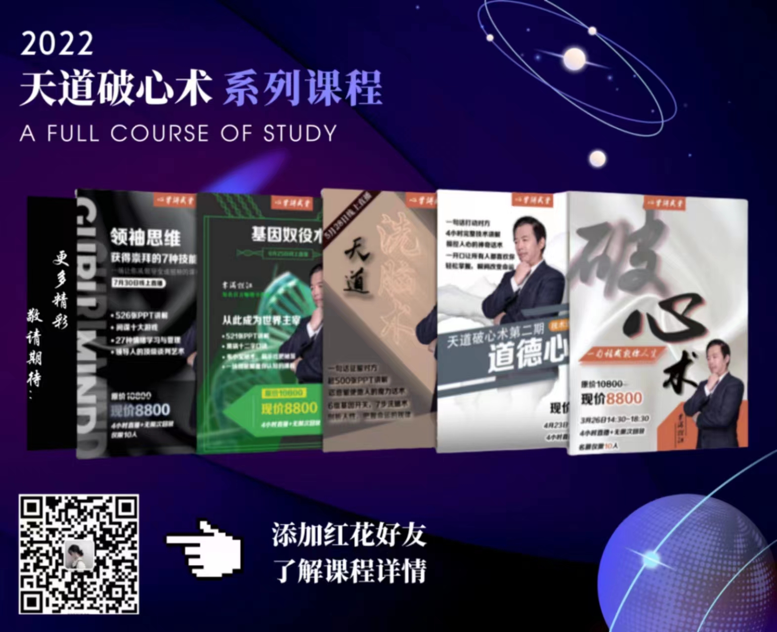 如果您有兴趣购买本套天道破心术系列课程,详情请咨询老雾助手-红花,添加微信: