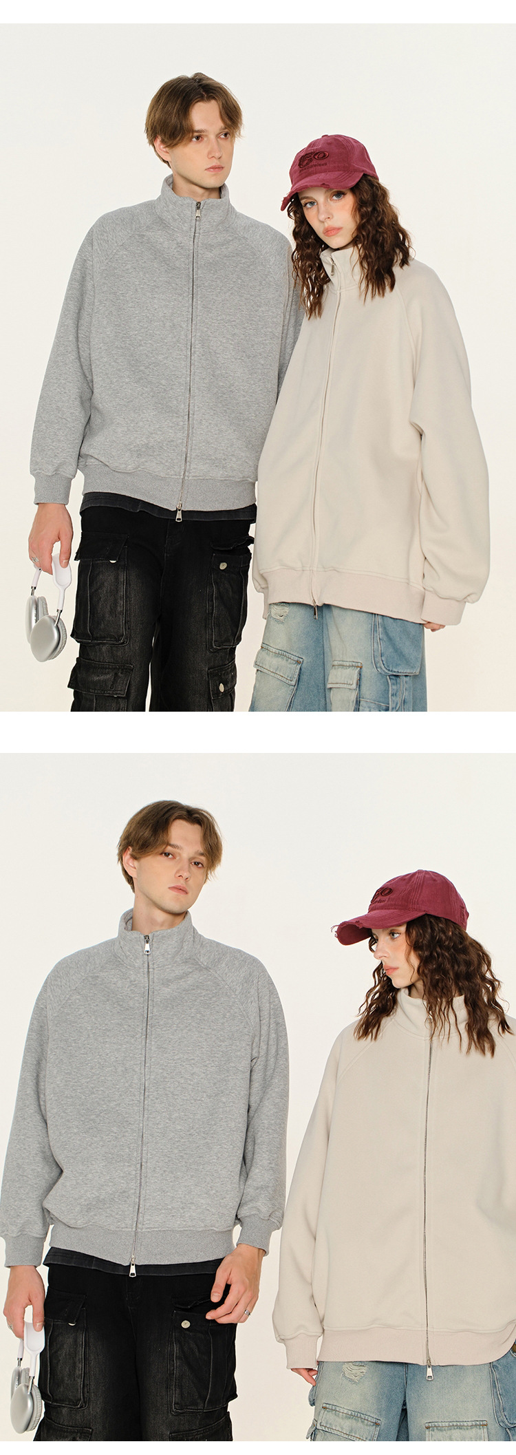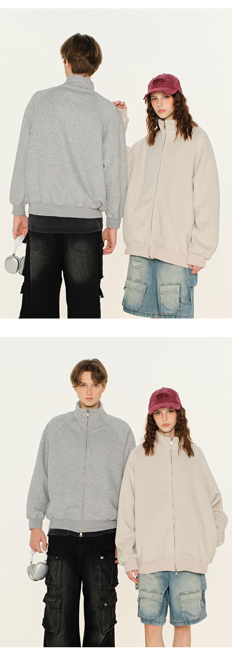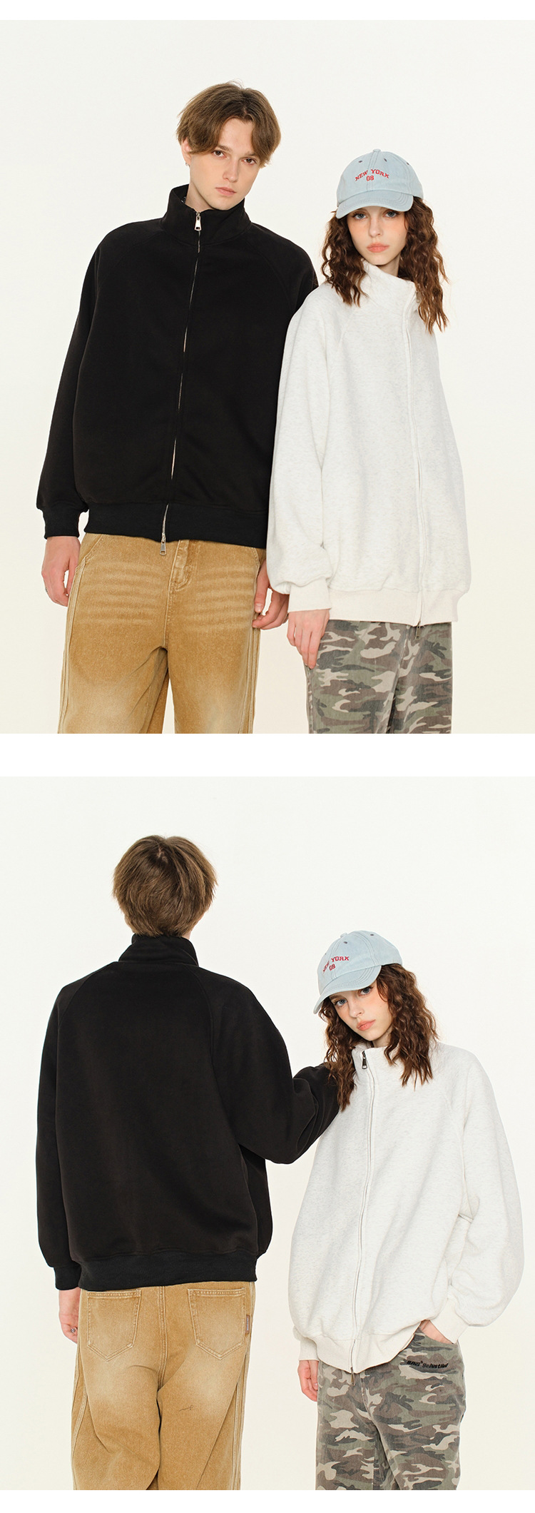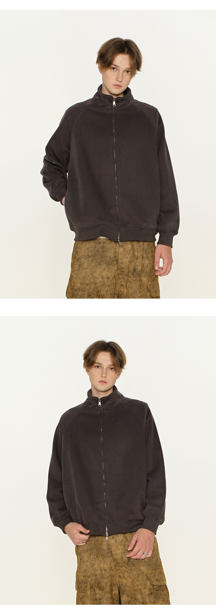 丁摩 春秋季美式复古立领开衫卫衣男女同款百搭上衣休闲拉链潮流外套5ZF-005