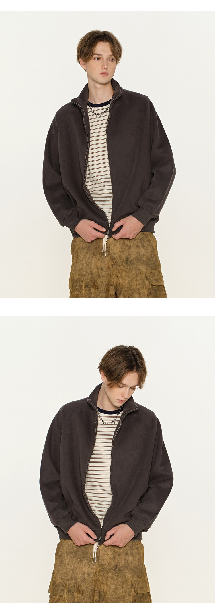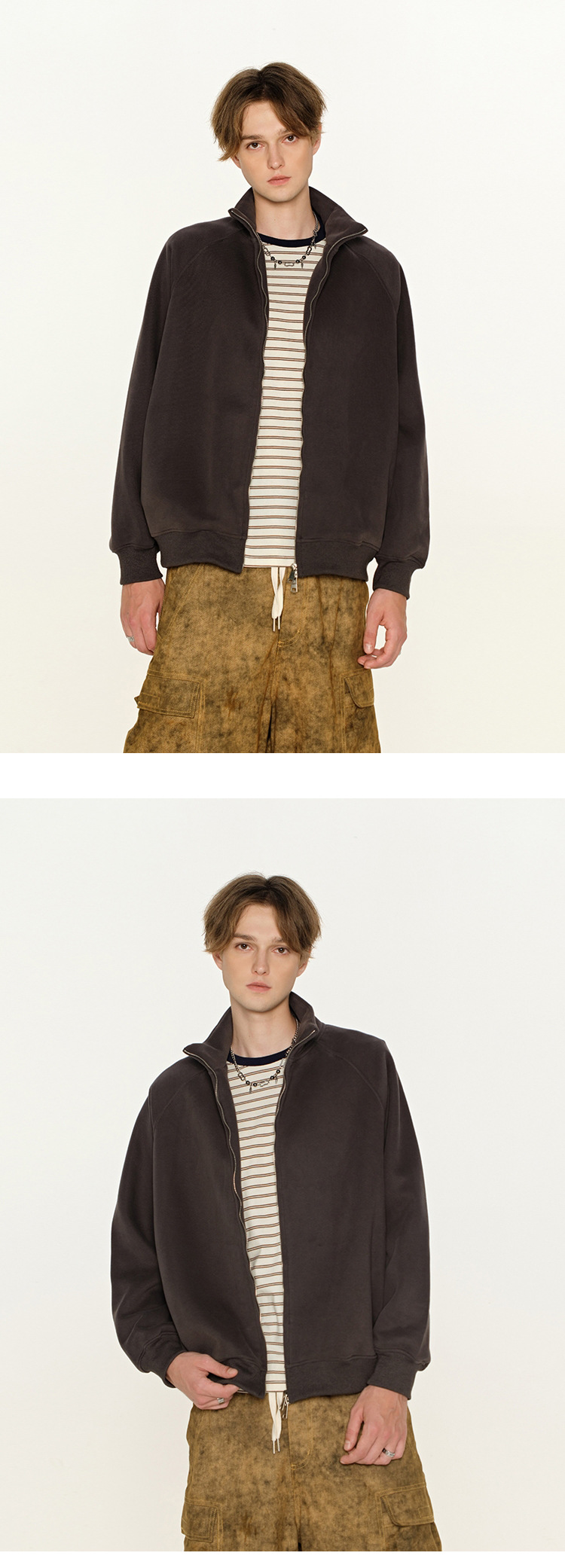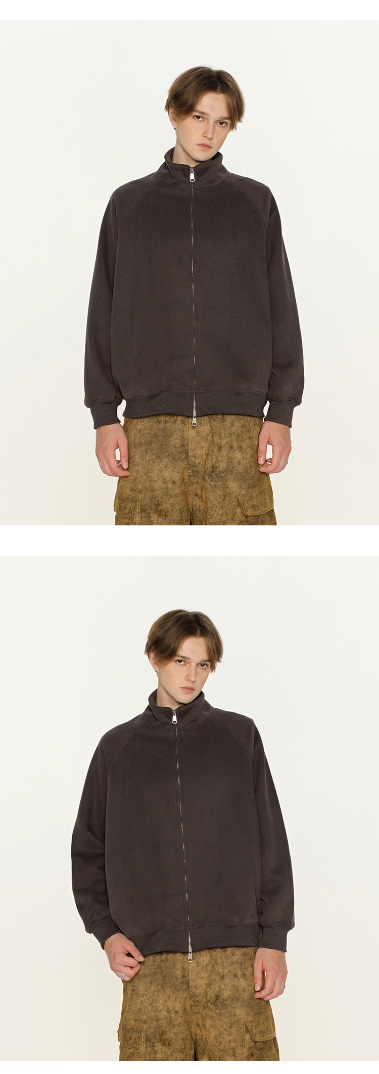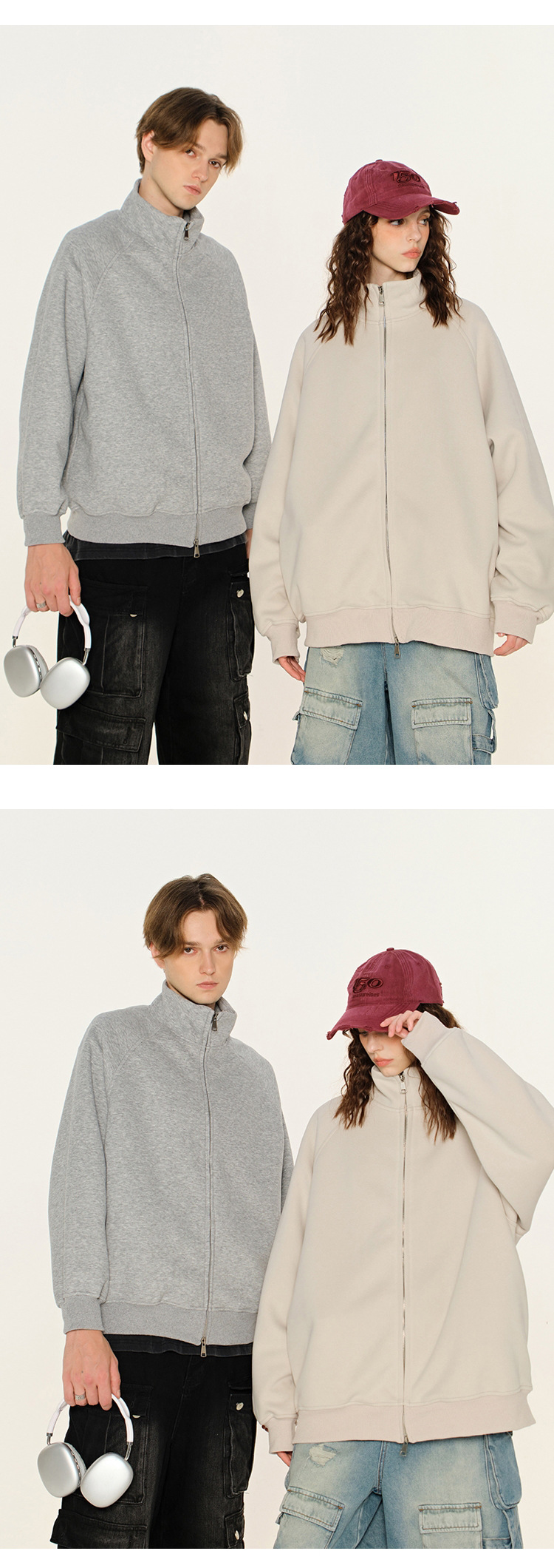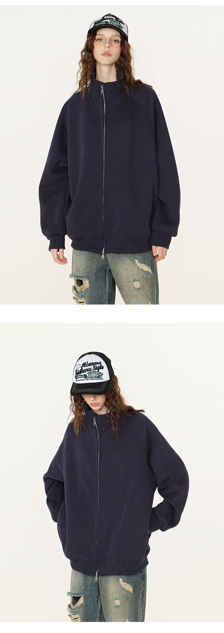 丁摩 春秋季美式复古立领开衫卫衣男女同款百搭上衣休闲拉链潮流外套5ZF-005