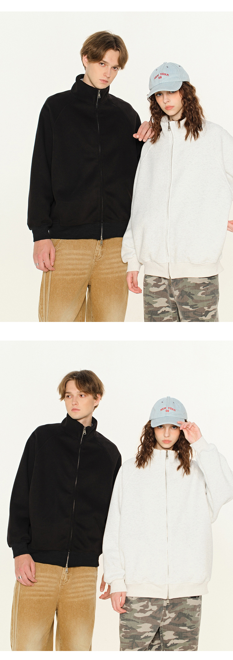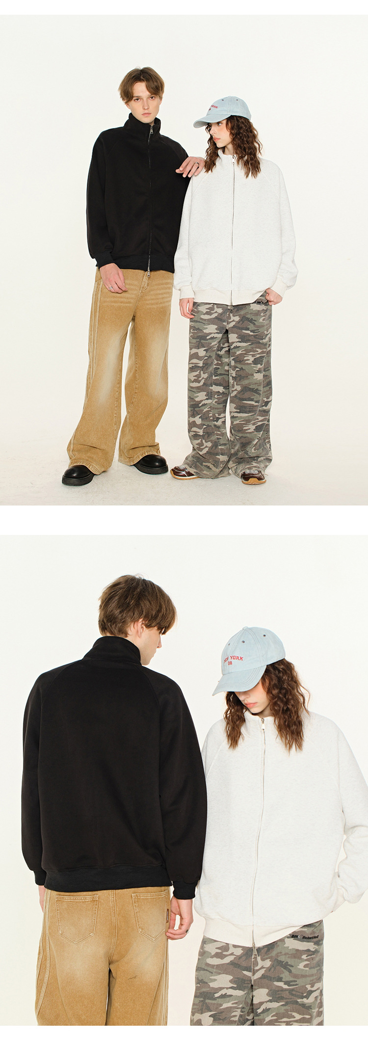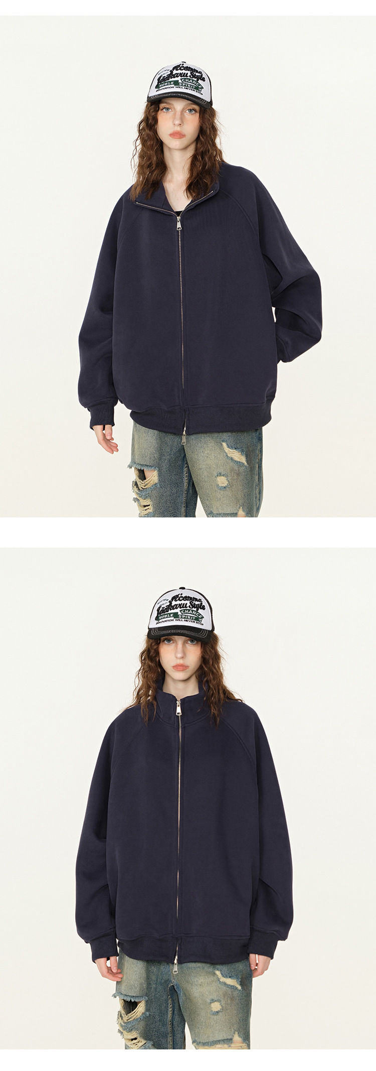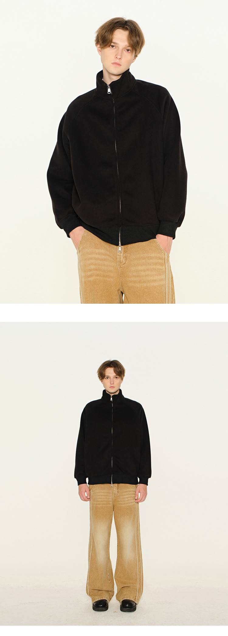 丁摩 春秋季美式复古立领开衫卫衣男女同款百搭上衣休闲拉链潮流外套5ZF-005
