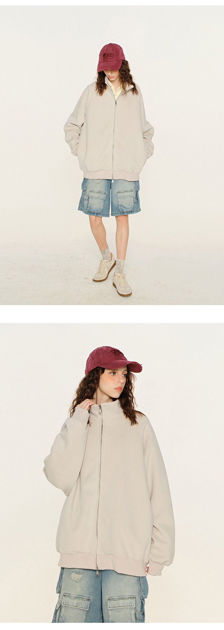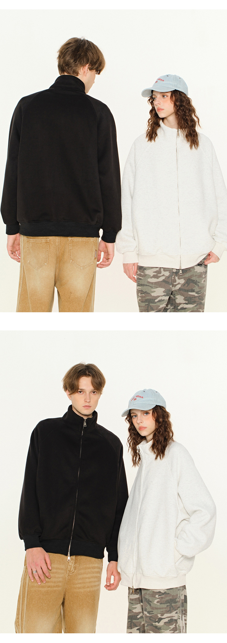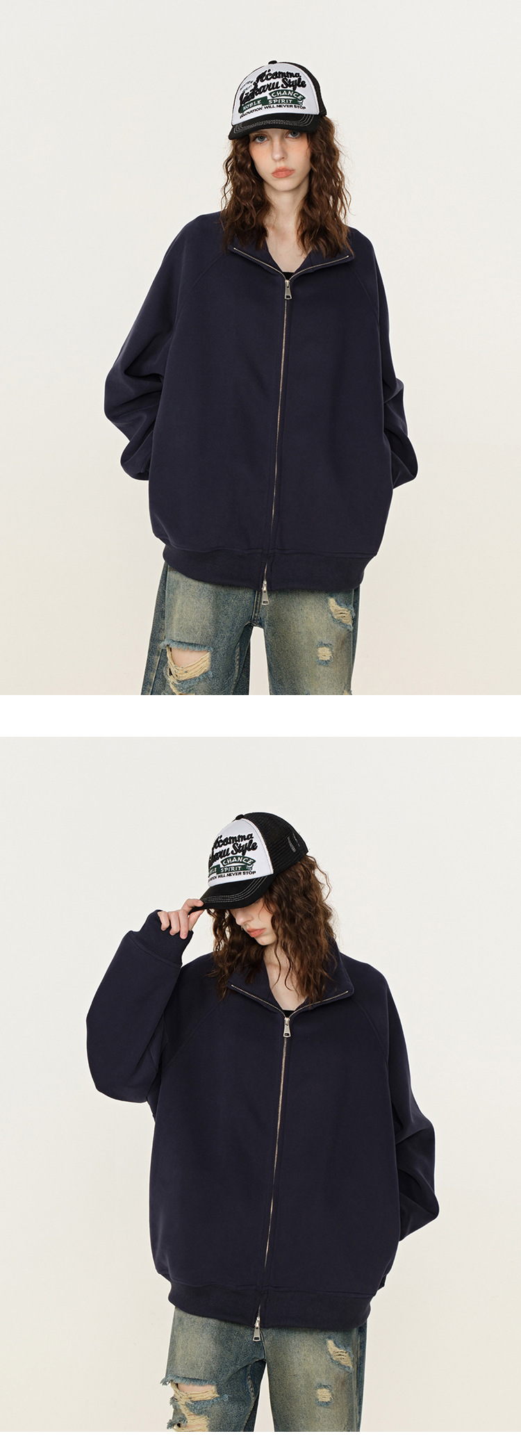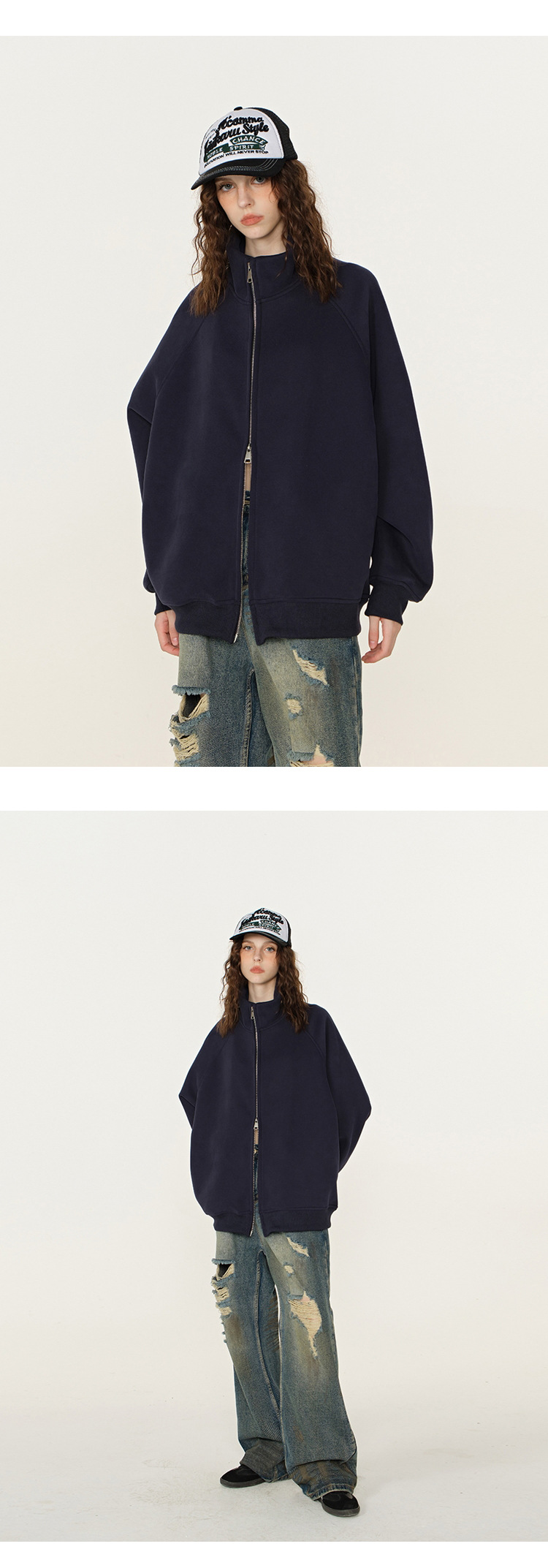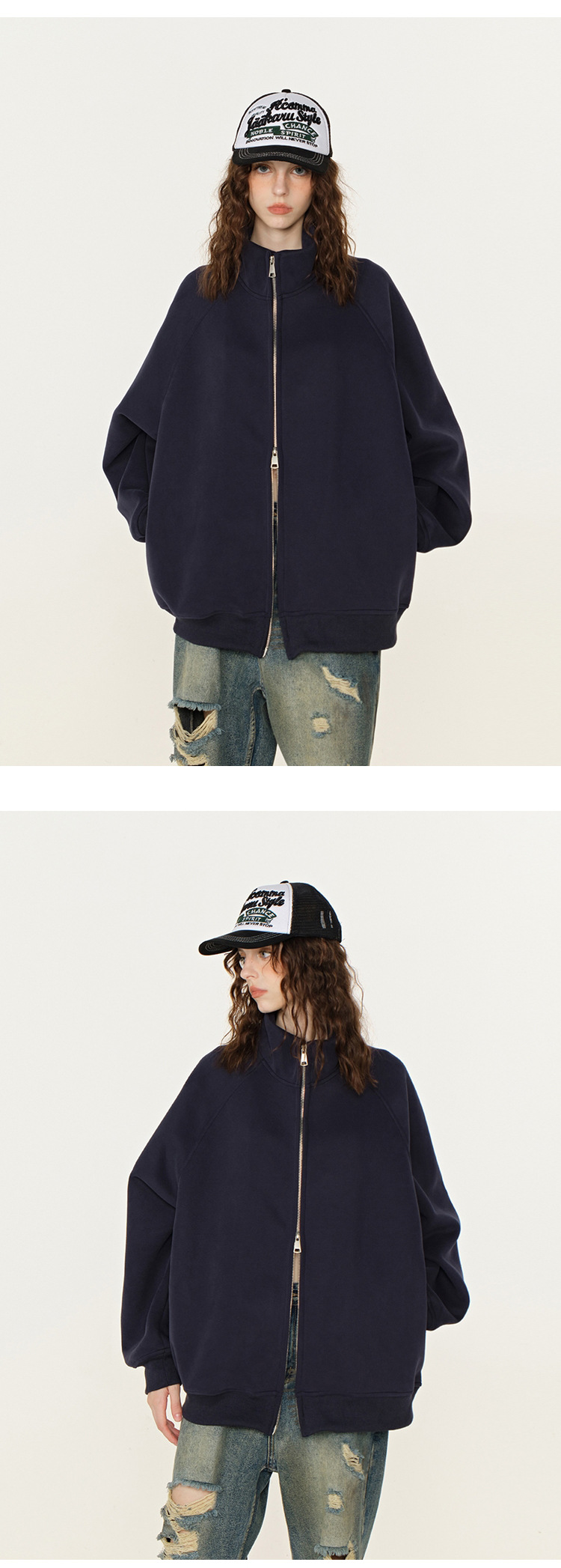 丁摩 春秋季美式复古立领开衫卫衣男女同款百搭上衣休闲拉链潮流外套5ZF-005