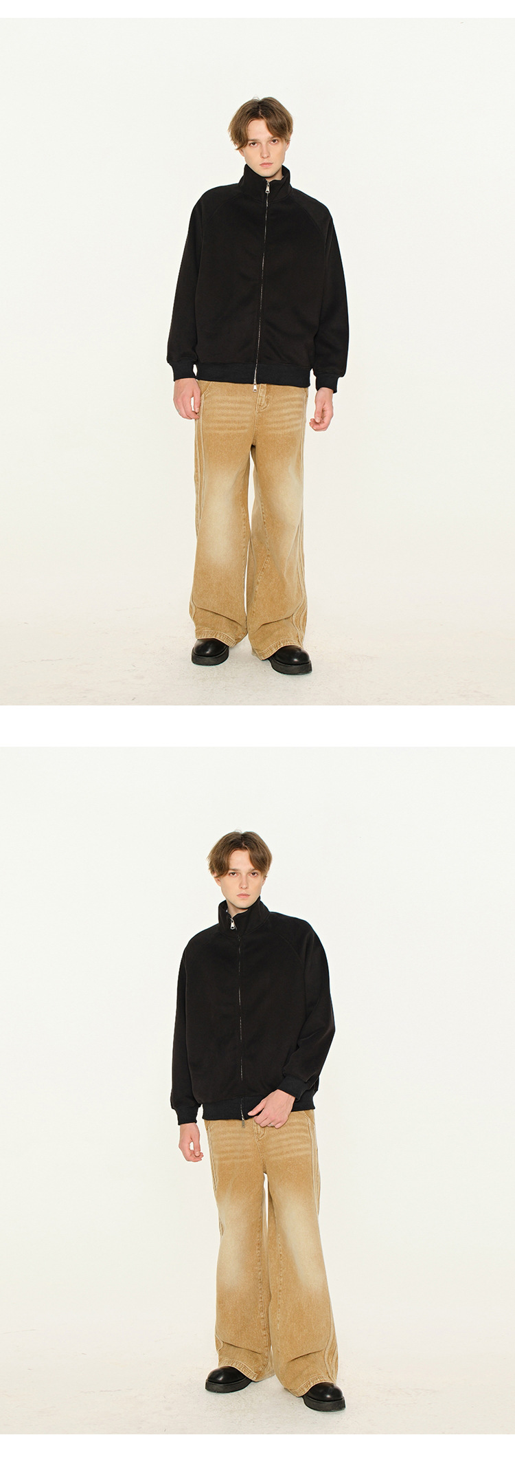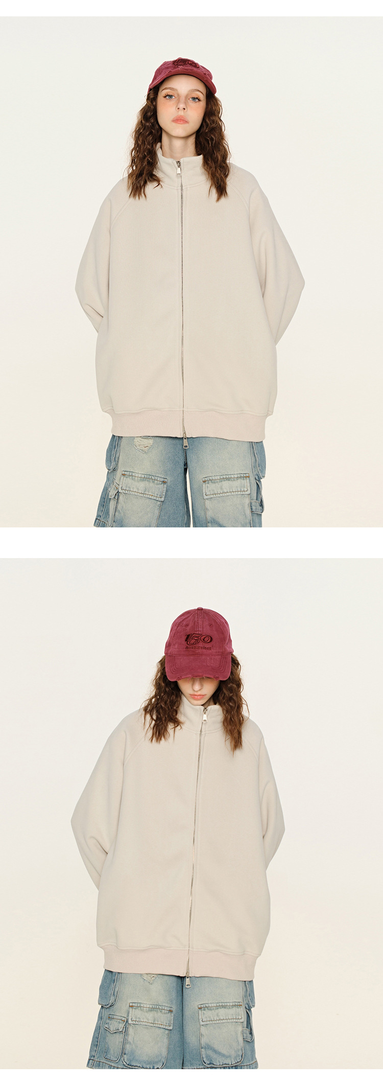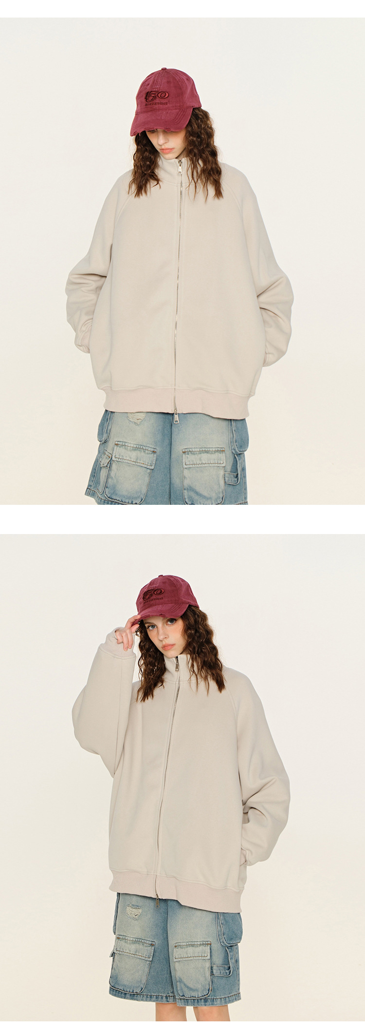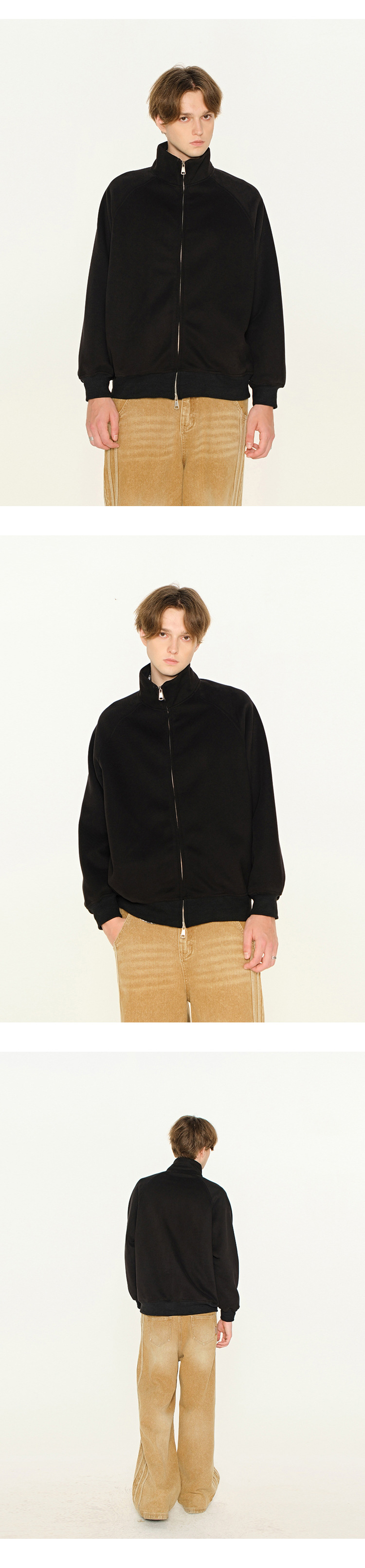 丁摩 春秋季美式复古立领开衫卫衣男女同款百搭上衣休闲拉链潮流外套5ZF-005