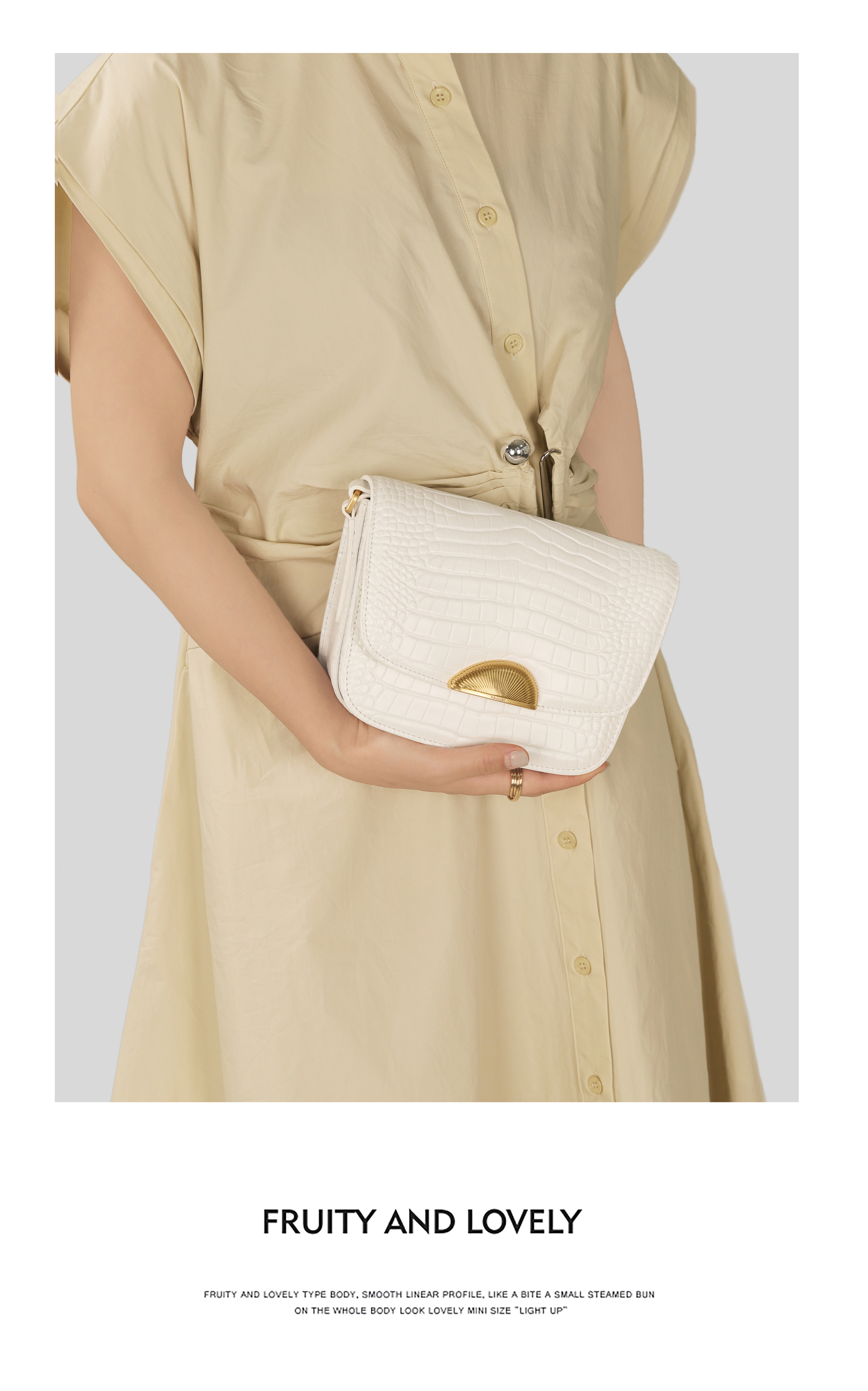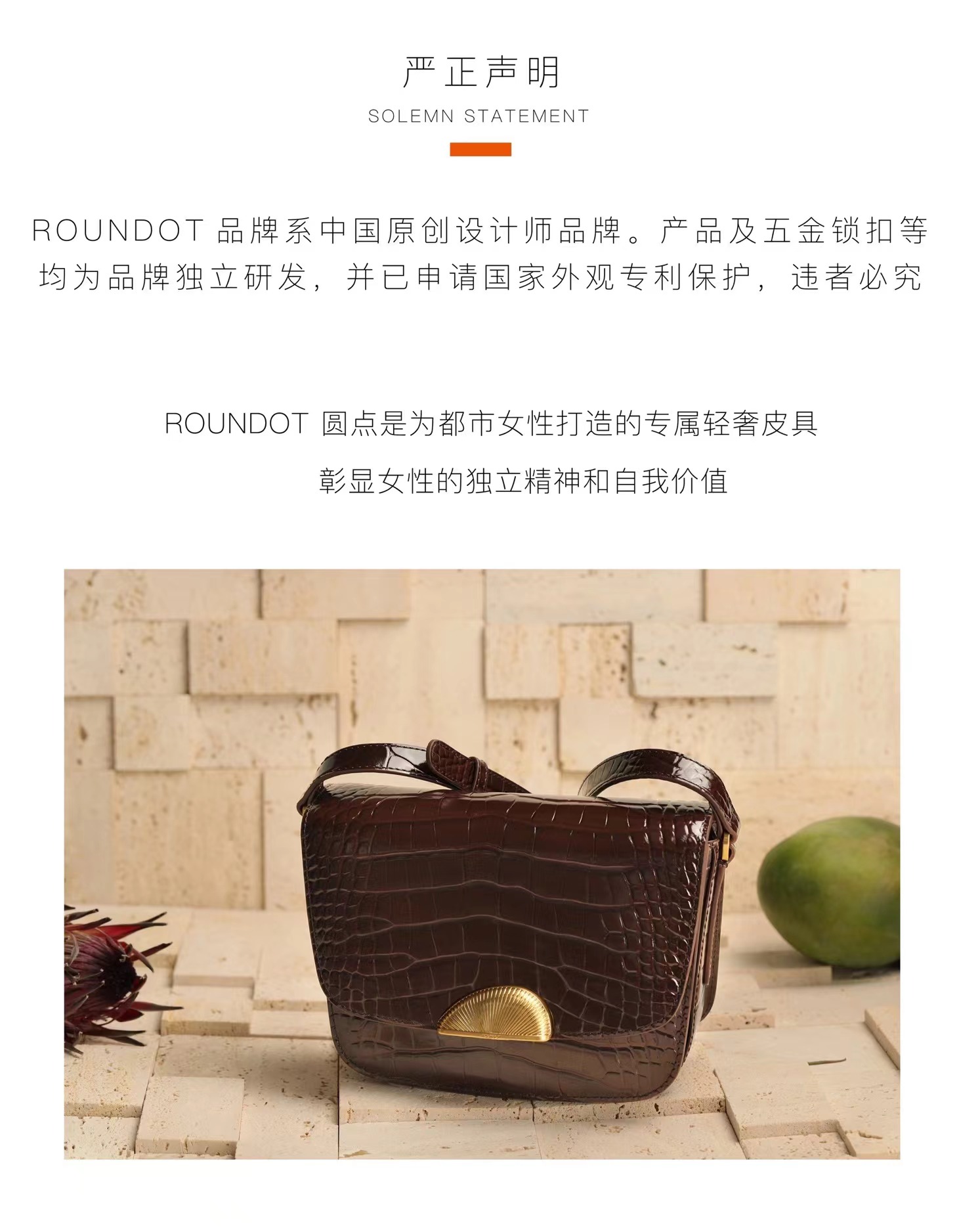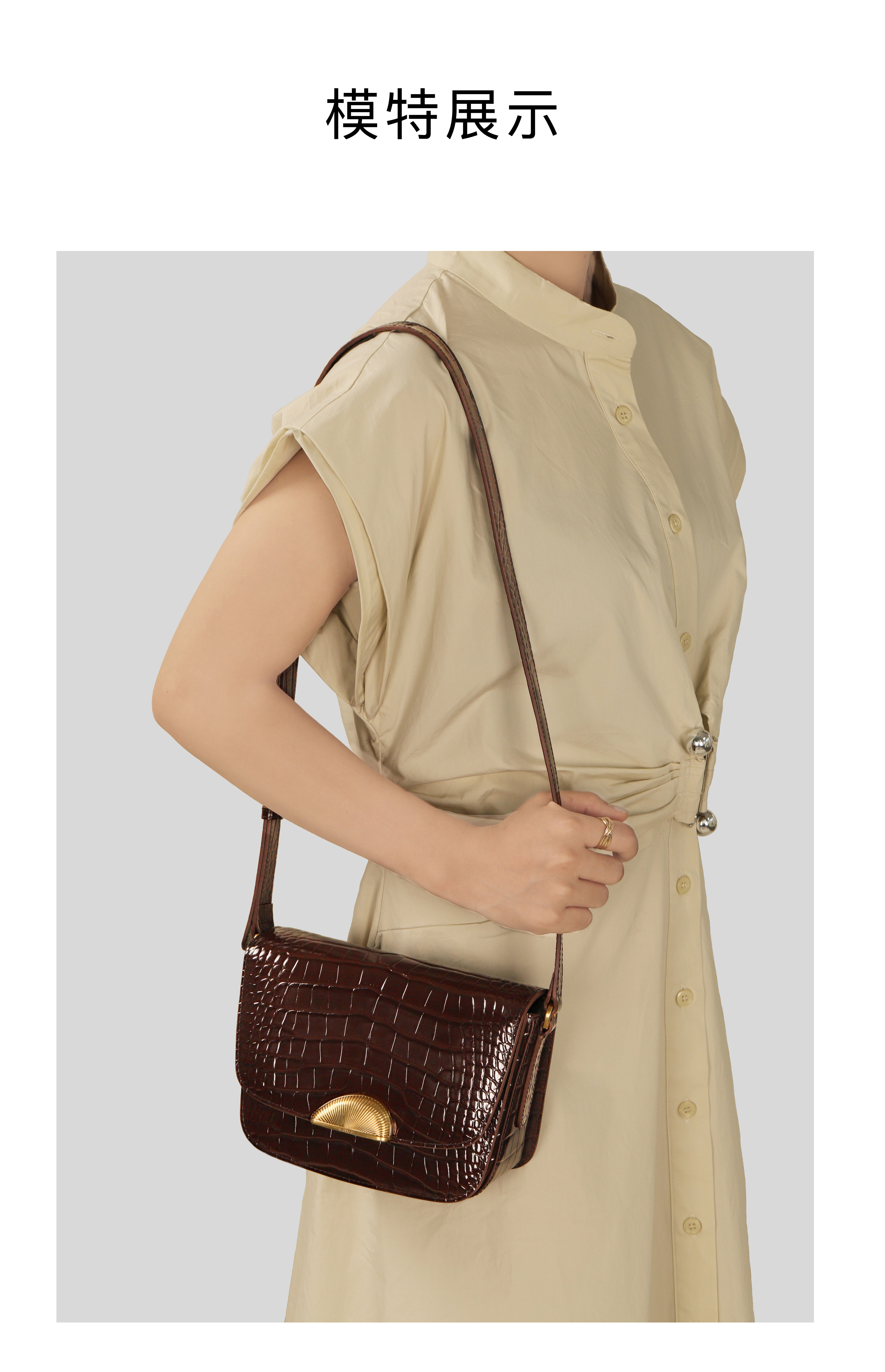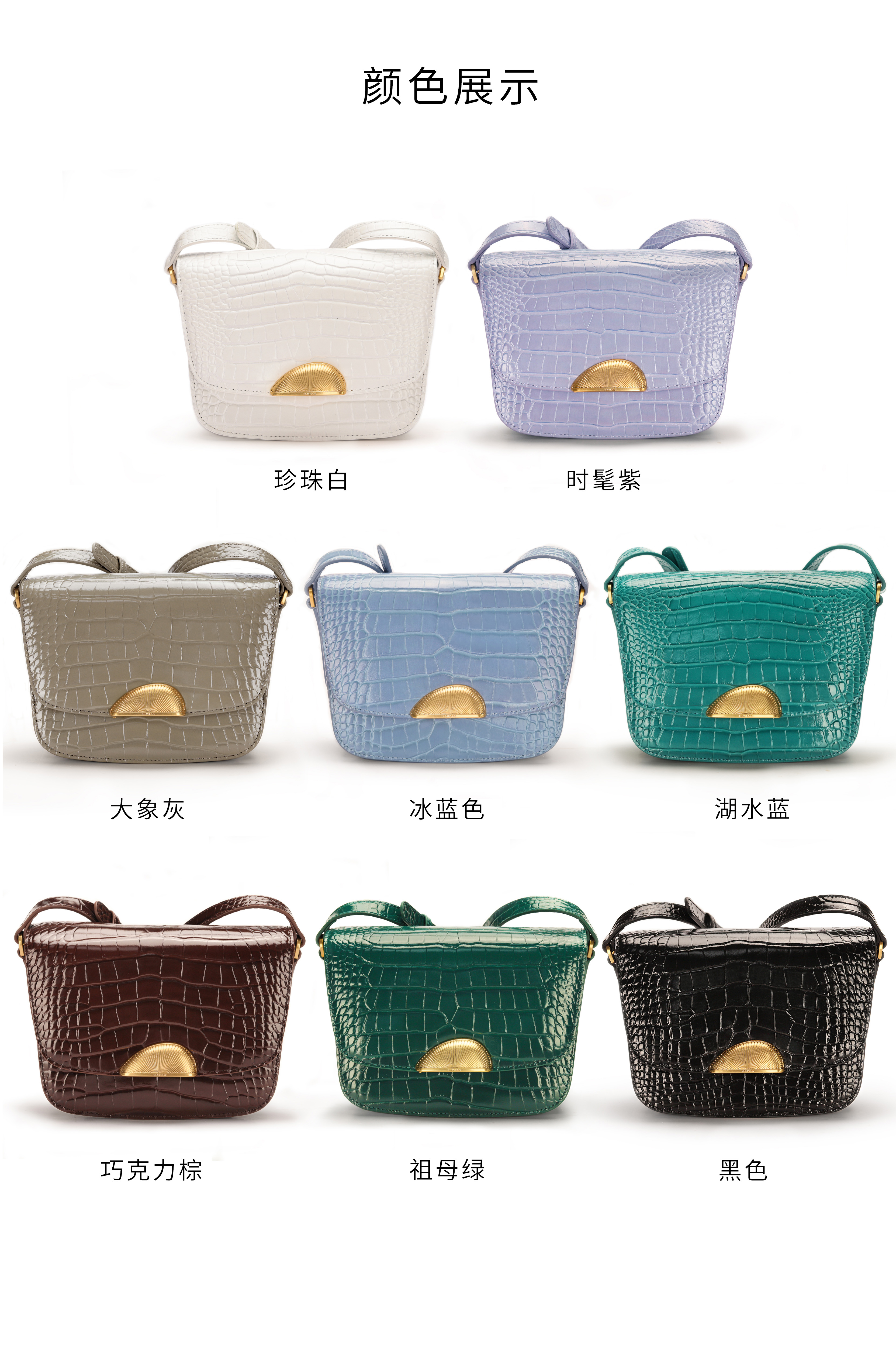 ROUNDOT/圆点时光扣系列鳄鱼纹单肩斜挎包2024新款轻奢牛皮豆腐包