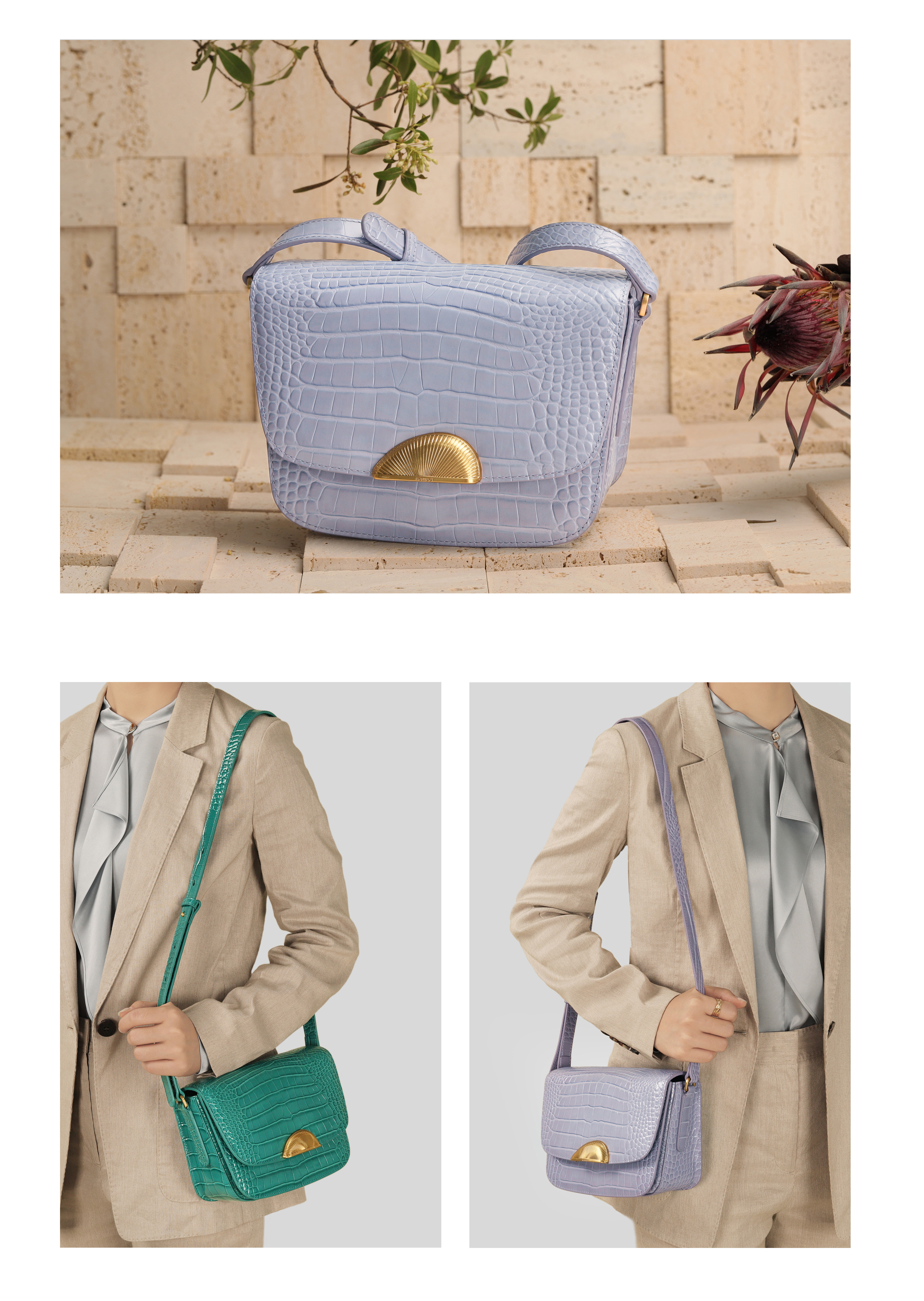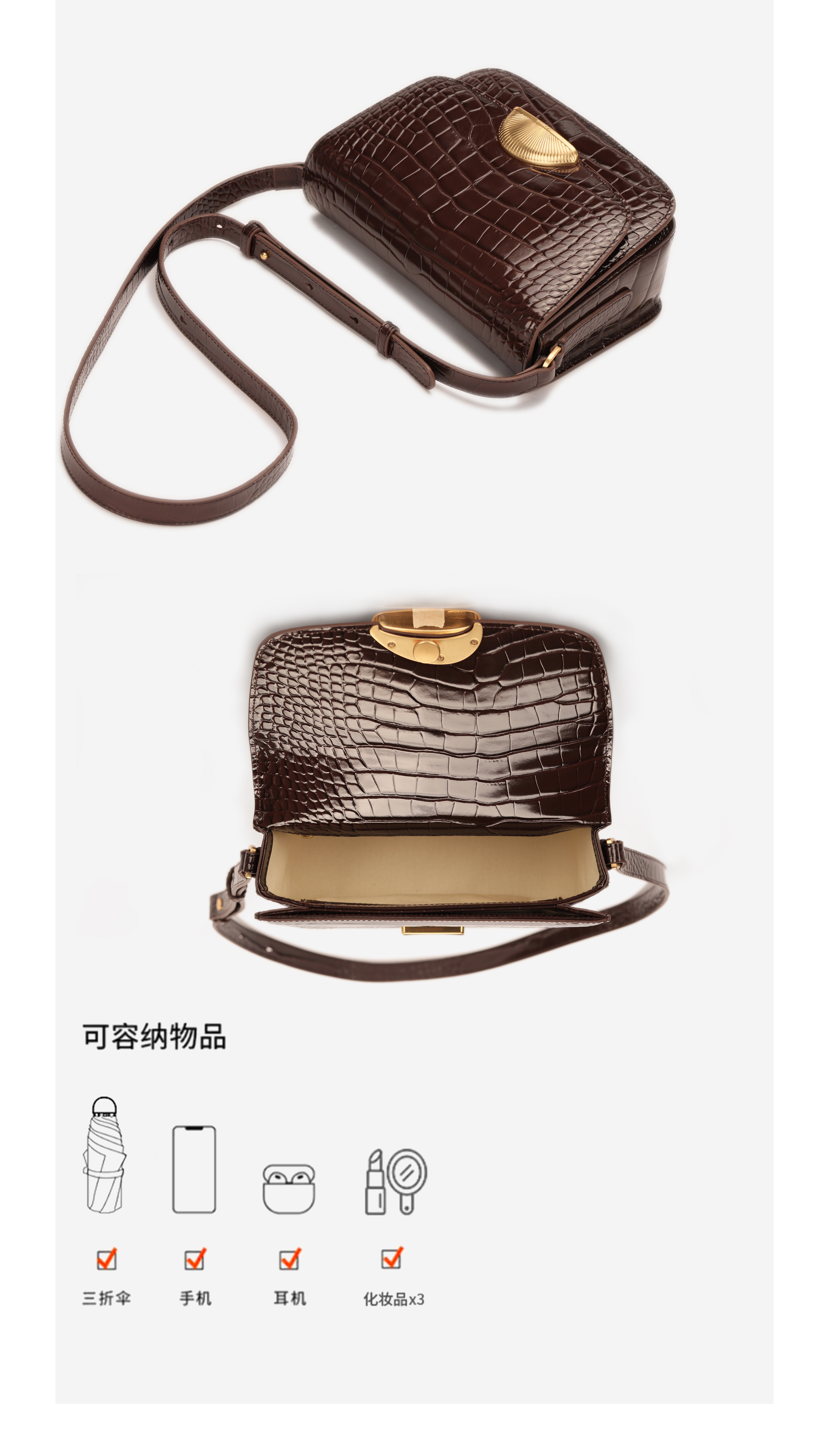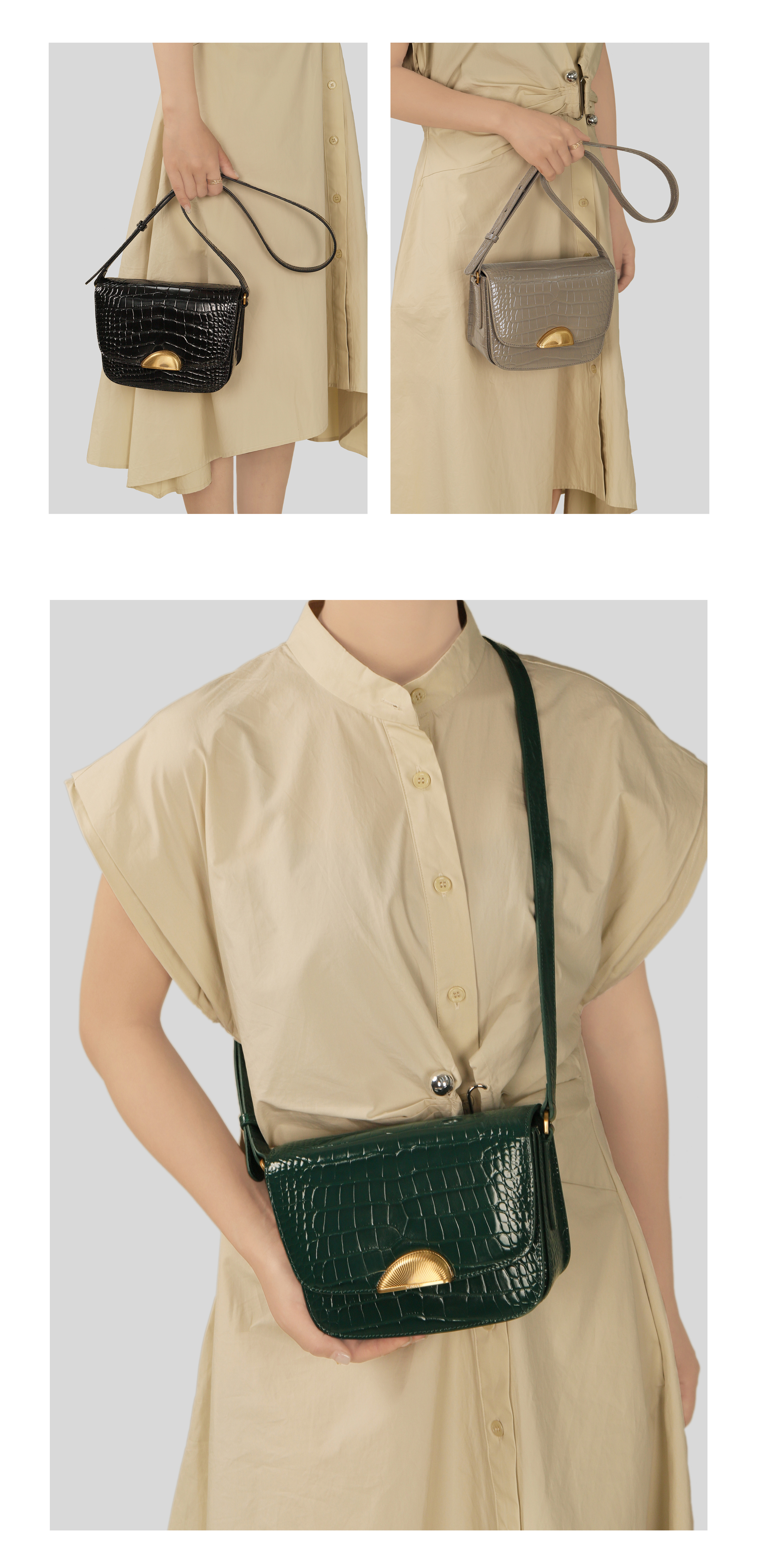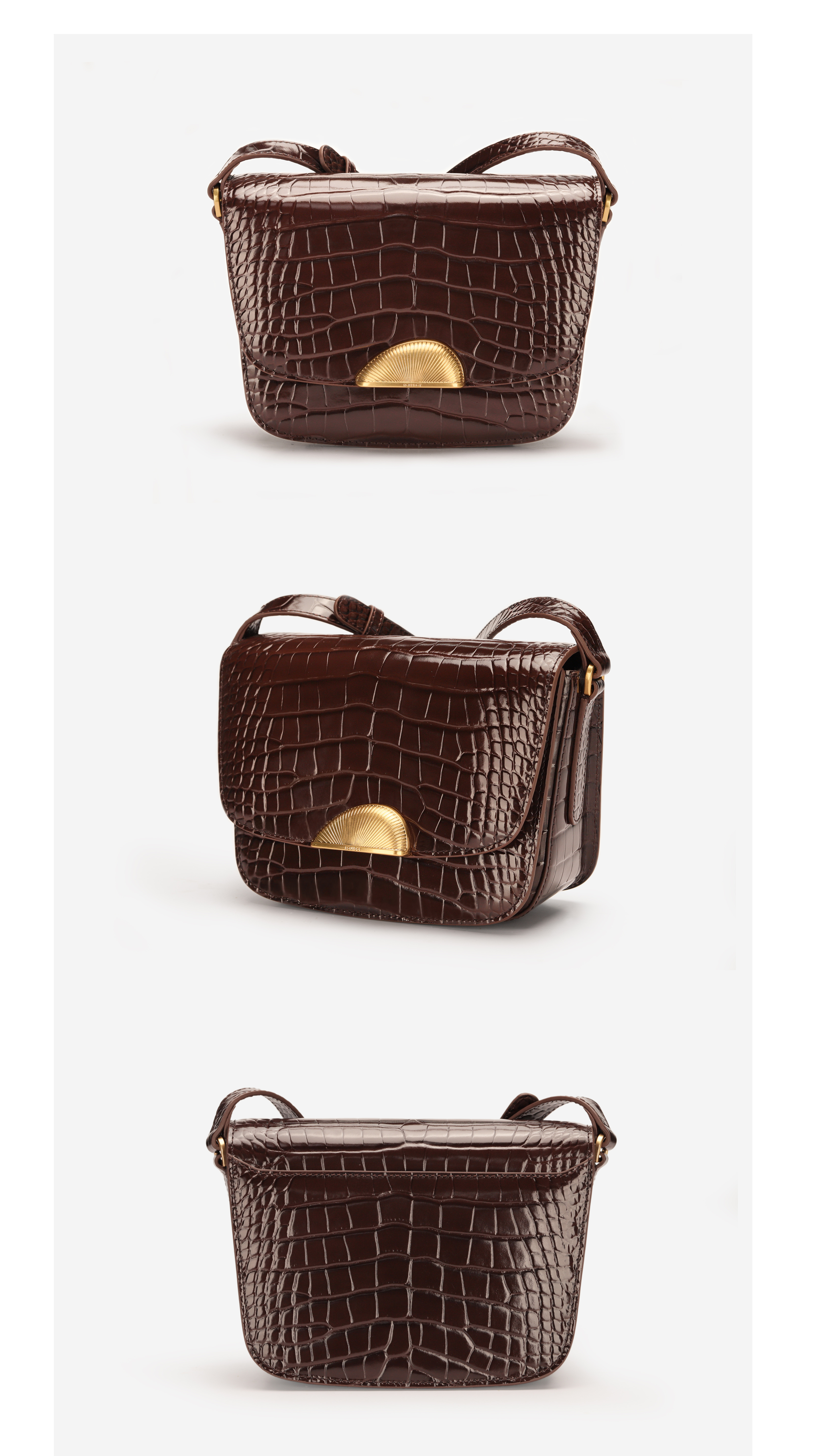 ROUNDOT/圆点时光扣系列鳄鱼纹单肩斜挎包2024新款轻奢牛皮豆腐包