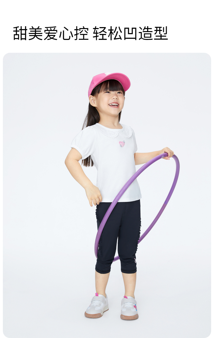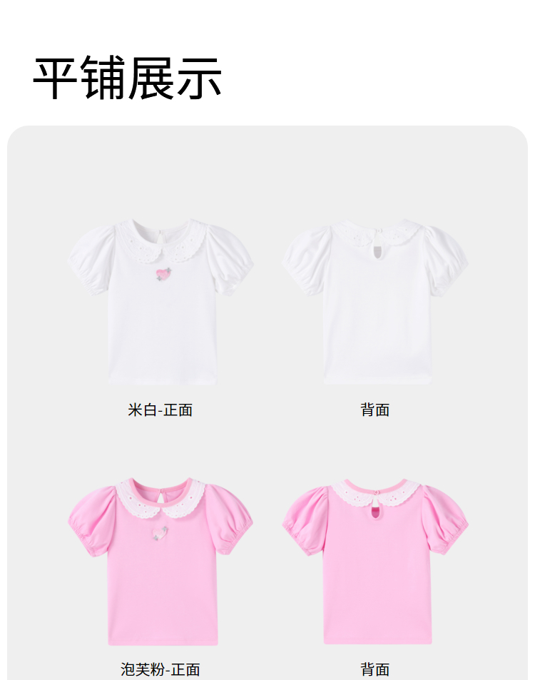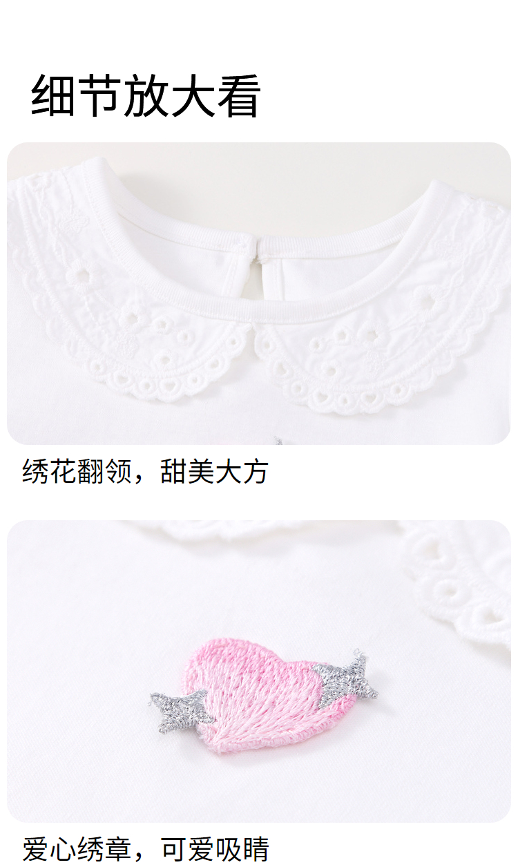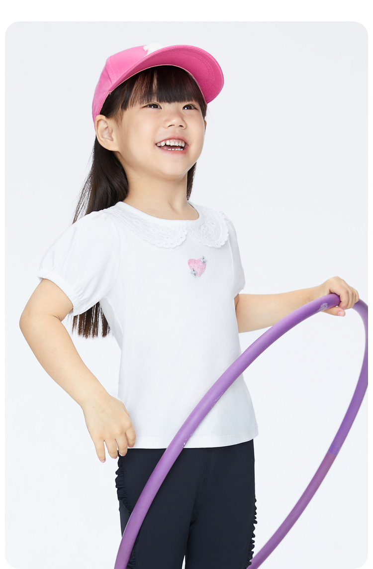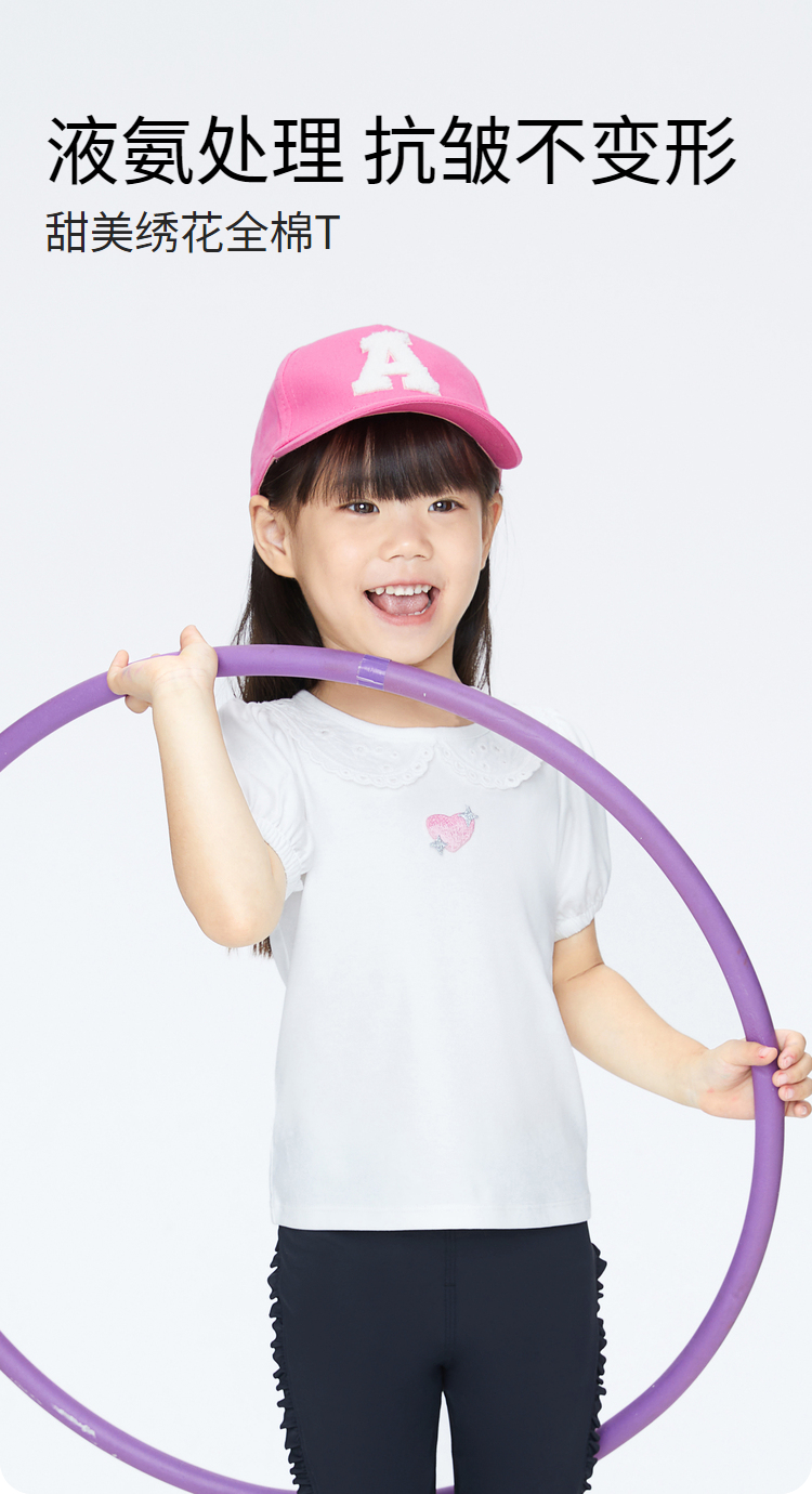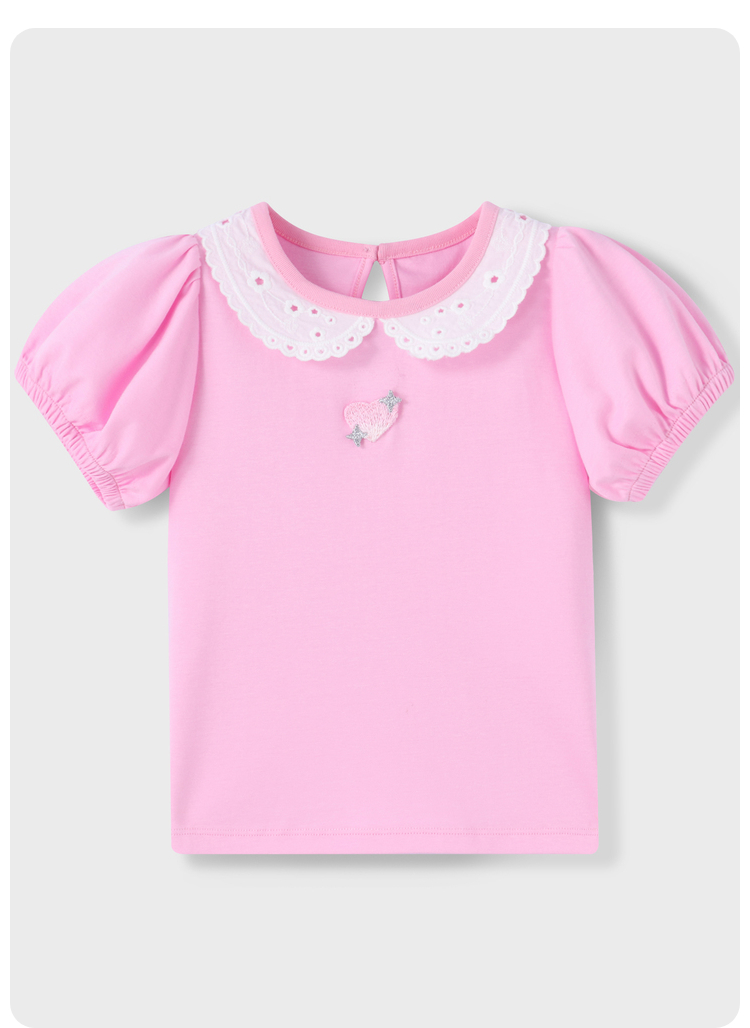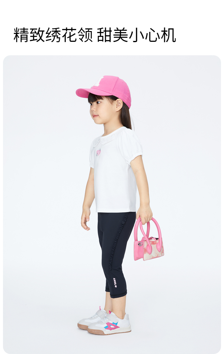 女童甜美绣花全棉翻领短款T恤夏季新款安奈儿童装实体店同款XG421702
