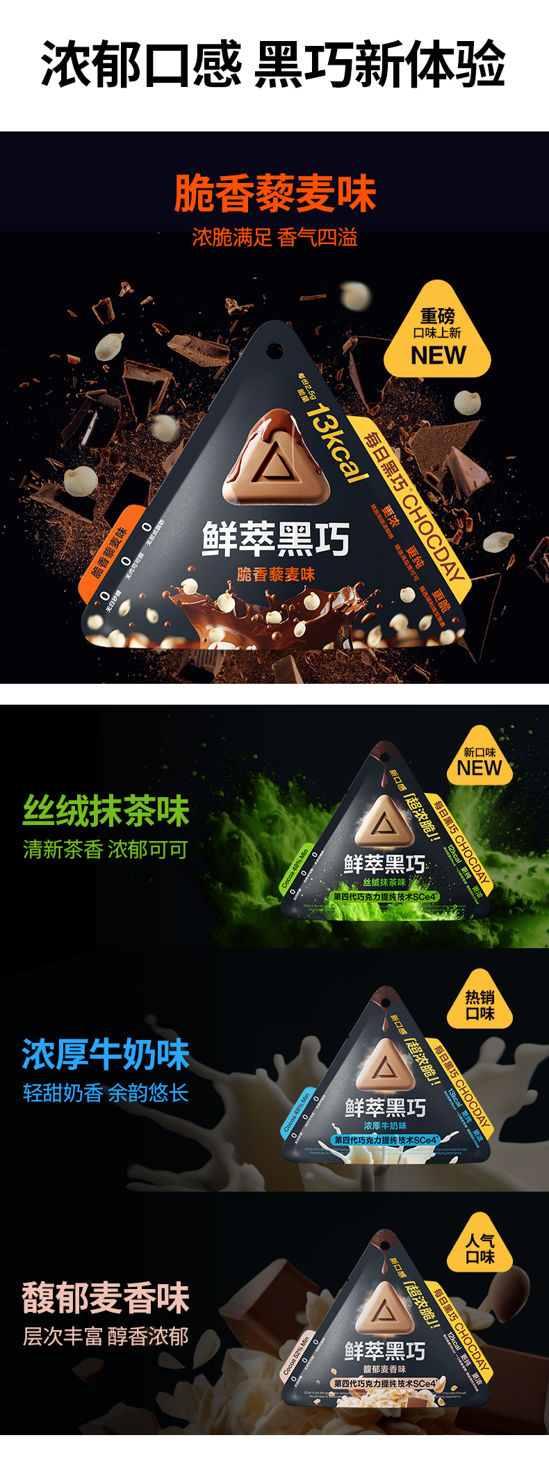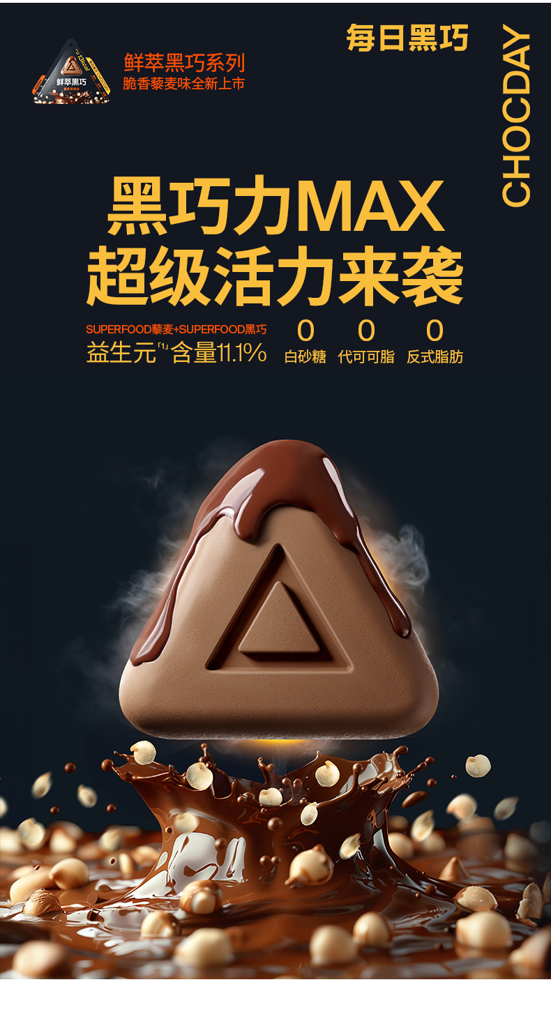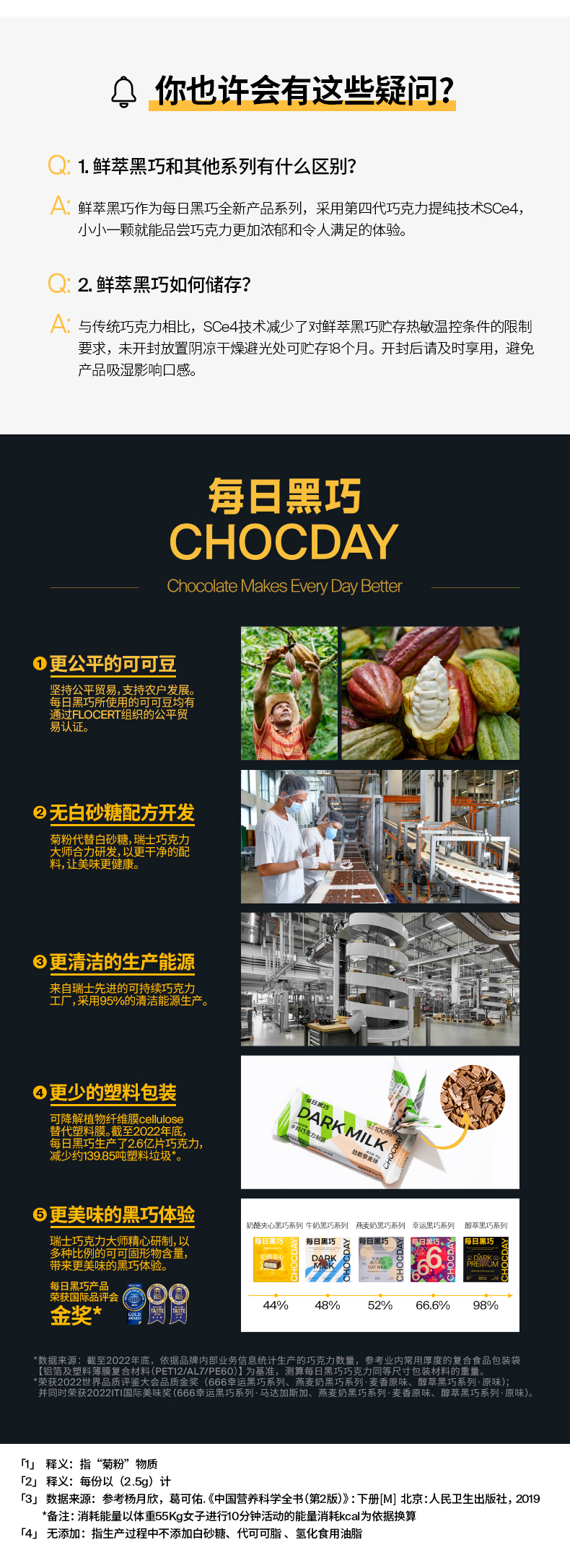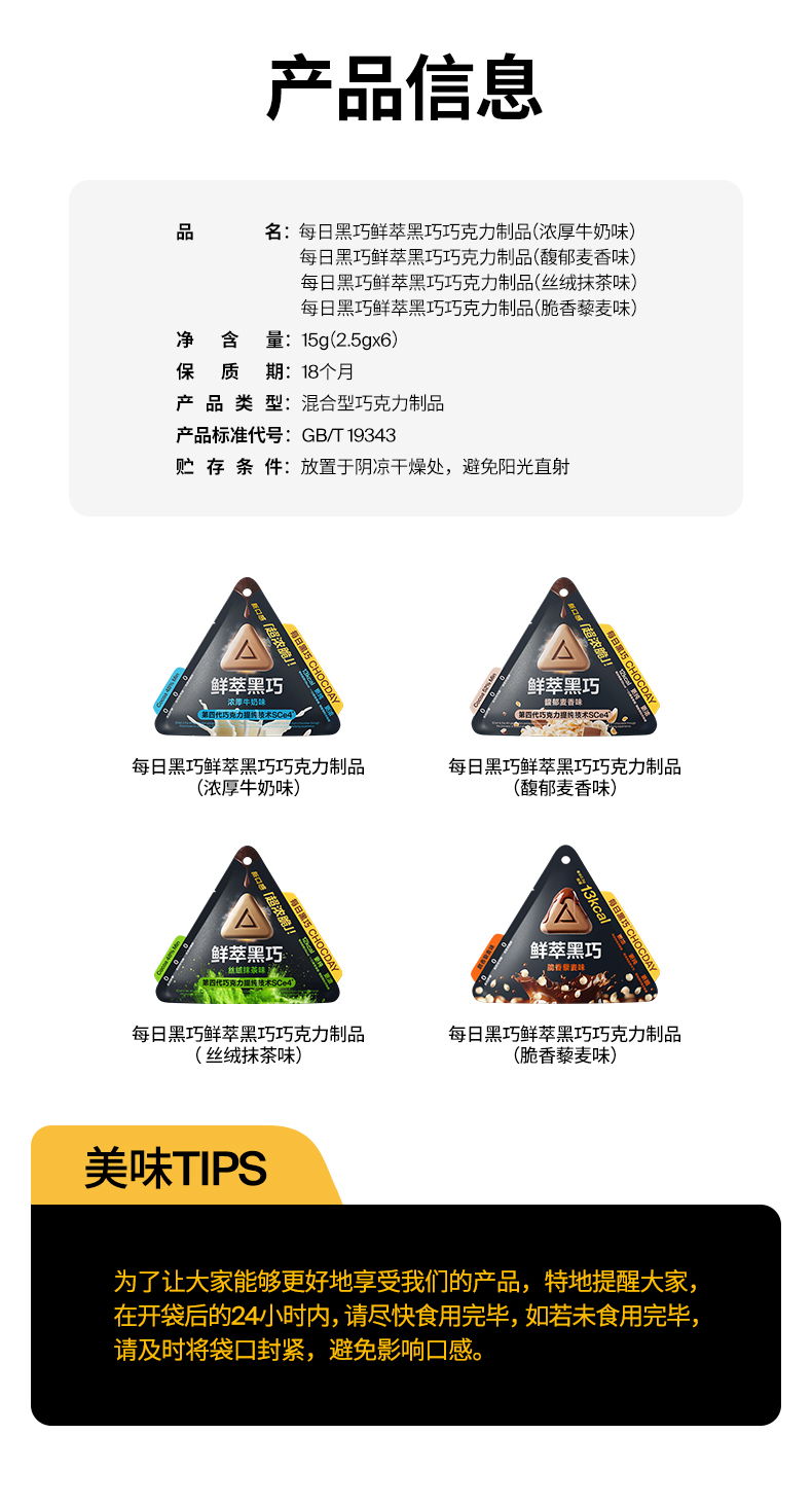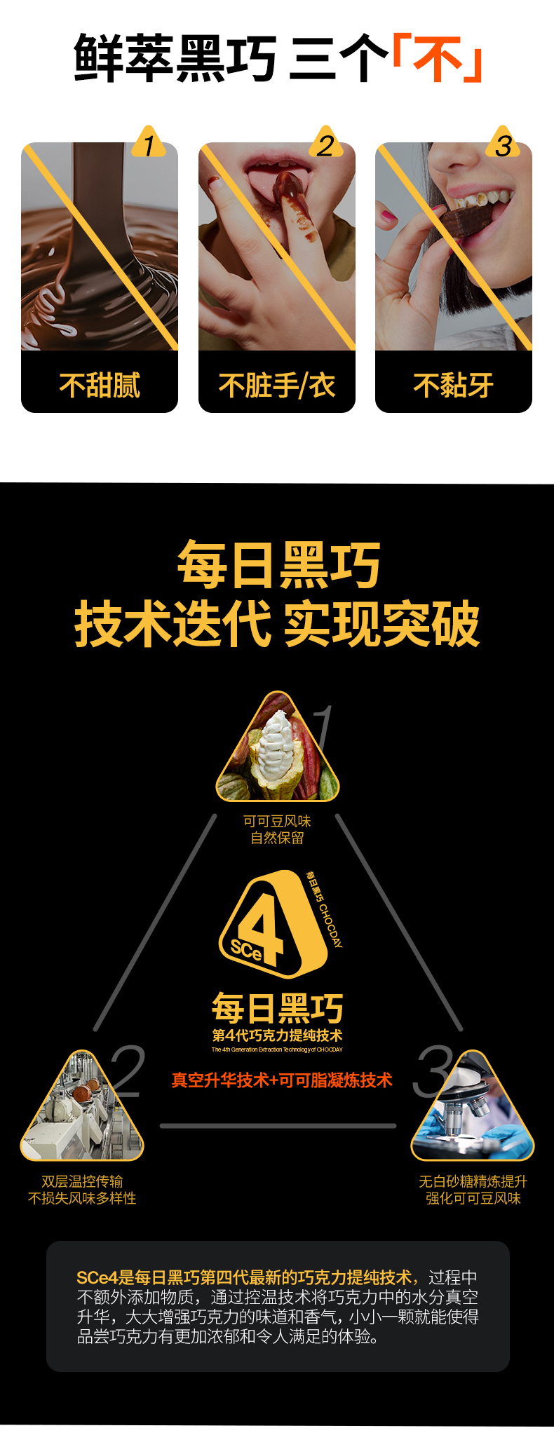 【新品上市】每日黑巧鲜萃黑巧6袋无白砂糖浓脆黑巧克力零食小吃