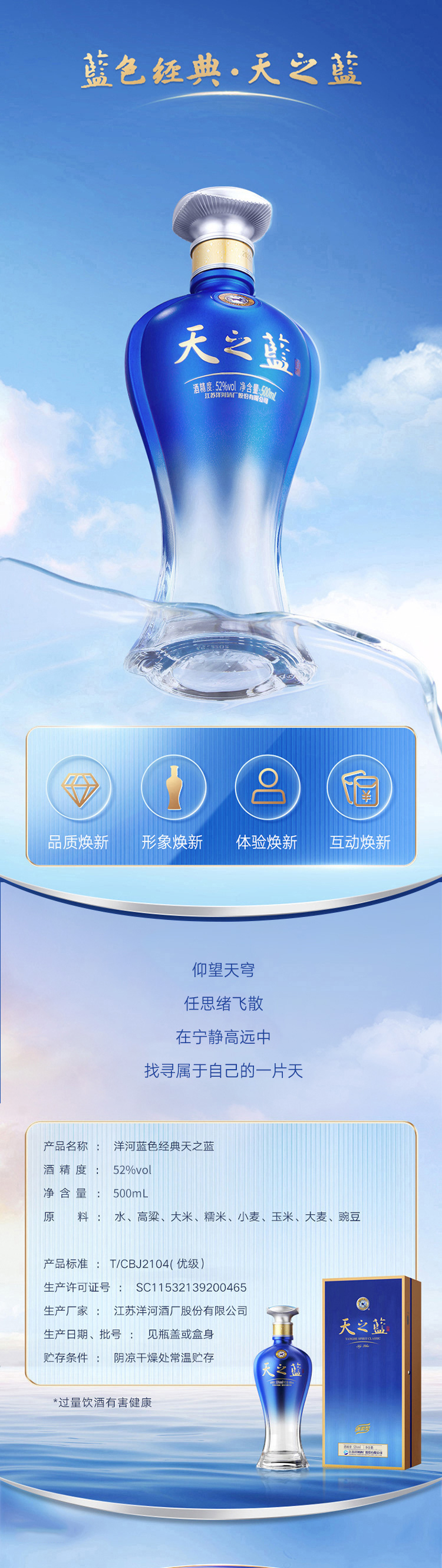洋河 天之蓝 21版本 52度 500mL 浓香型白酒