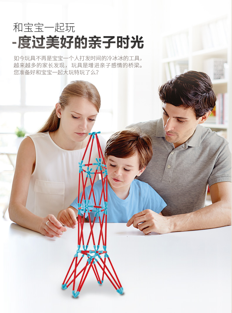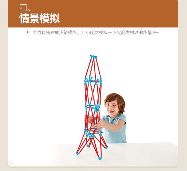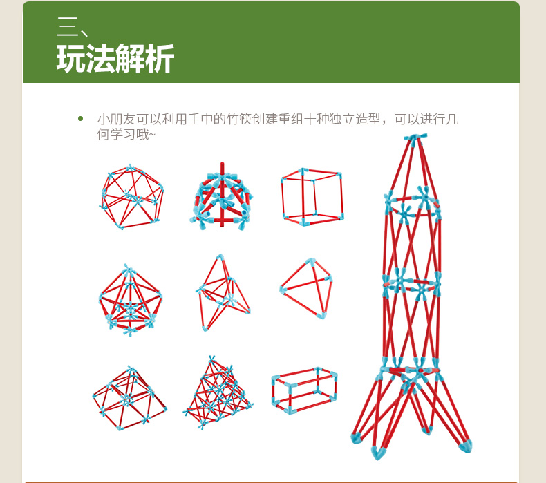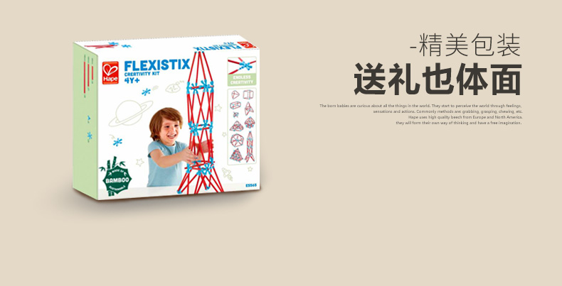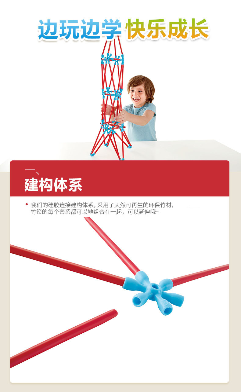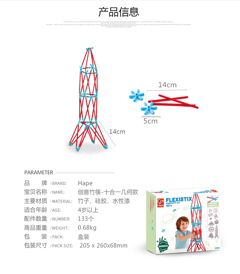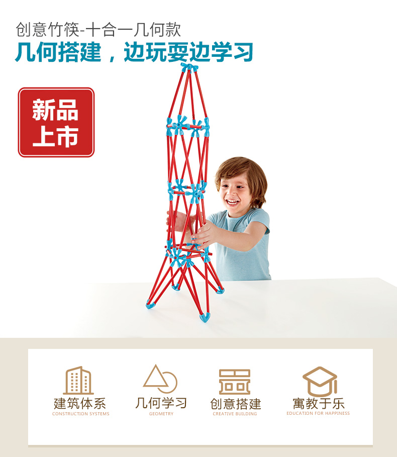 Hape竹筷积木 拼插玩具竹质创意拼搭拼插游戏DIY套装3-10岁男女小孩 E5565创意竹筷-十合一几何套