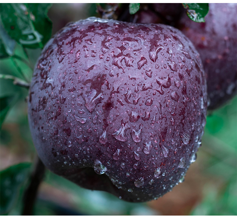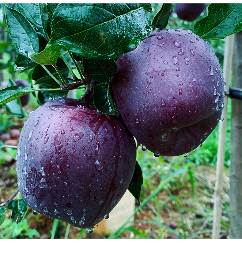 黑苹果产自海拔2,500米以上的环境下,果园基地所在地的气候温差大,气温较低,苹果的生长速度较慢。但也正是因为这样的气候,使得苹果的虫害少,糖分高,品质口感好;同时也孕育了苹果外表独特的颜色