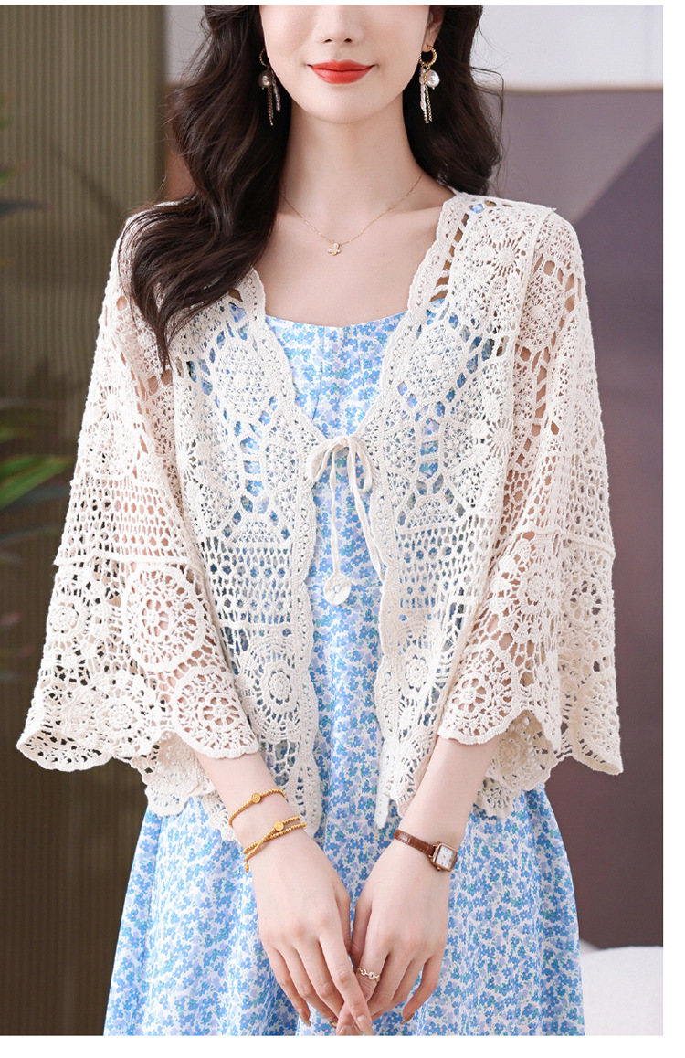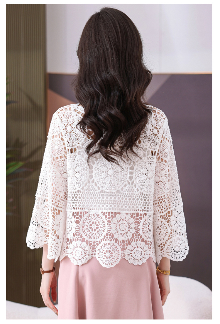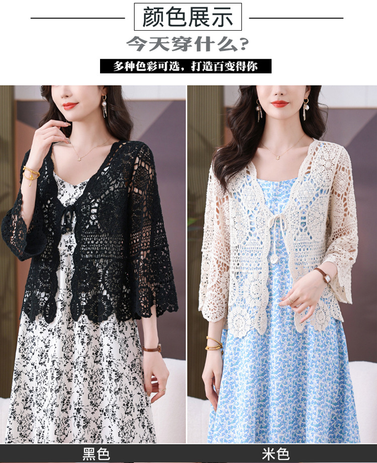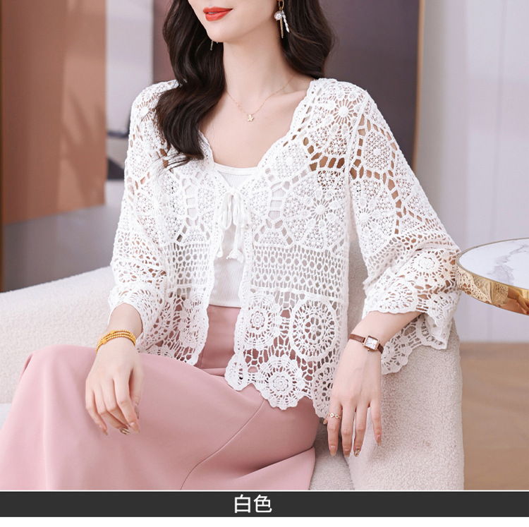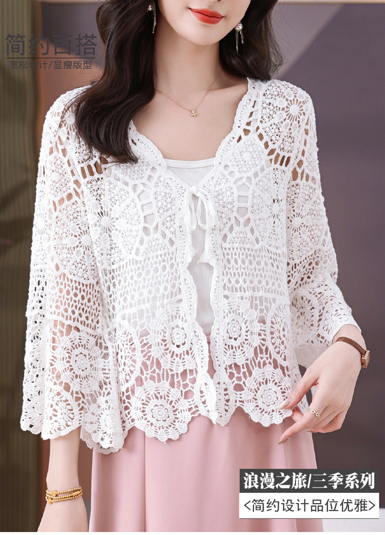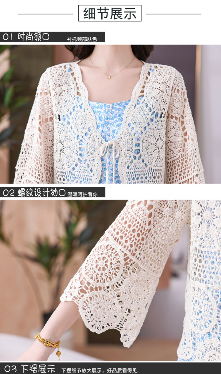 雀说镂空外搭开衫女薄款蕾丝小披肩防晒坎肩搭配吊带裙的宽松小衫AL1729