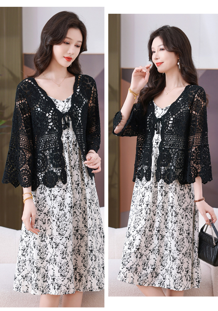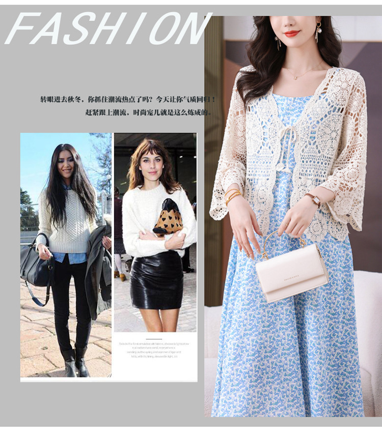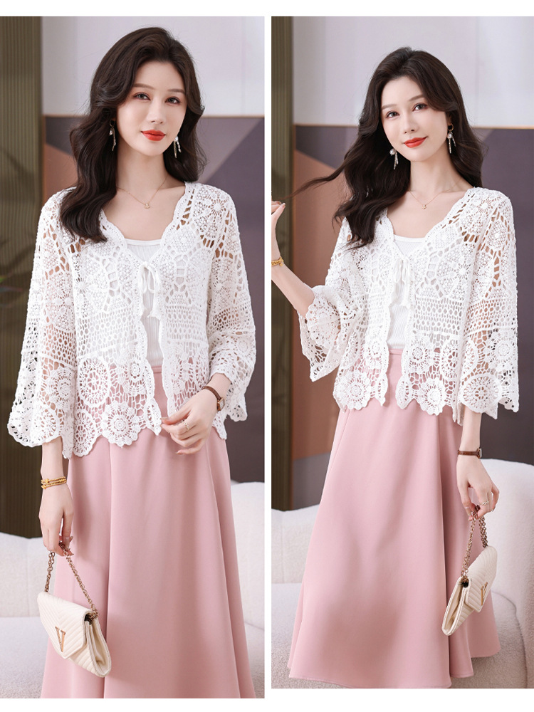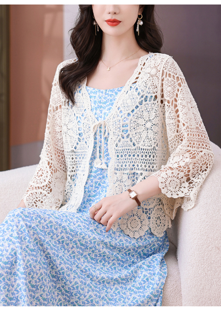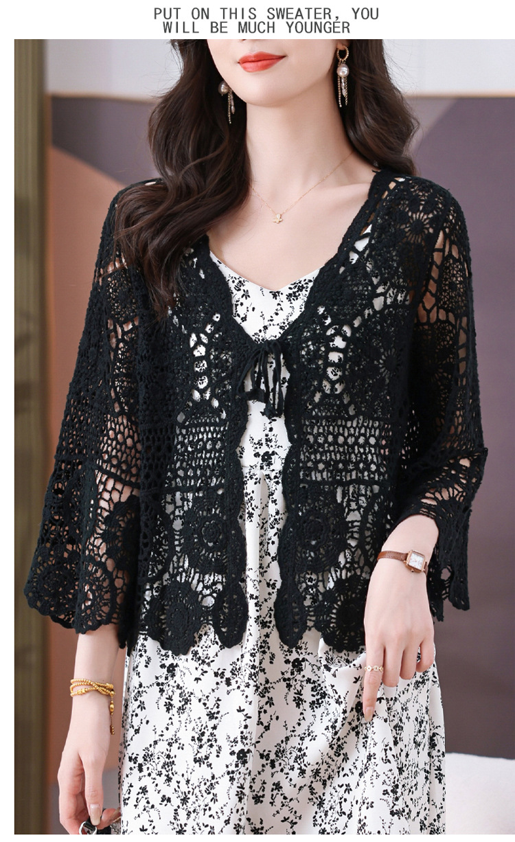 雀说镂空外搭开衫女薄款蕾丝小披肩防晒坎肩搭配吊带裙的宽松小衫AL1729