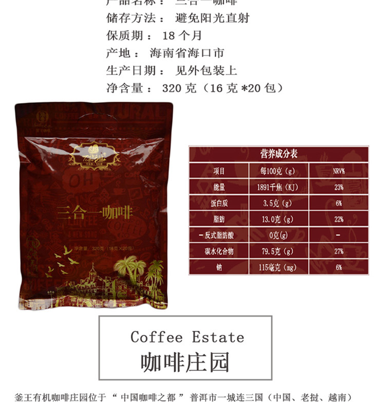 海南特产咖啡 三合一速溶咖啡 香醇下午茶 16g*20包